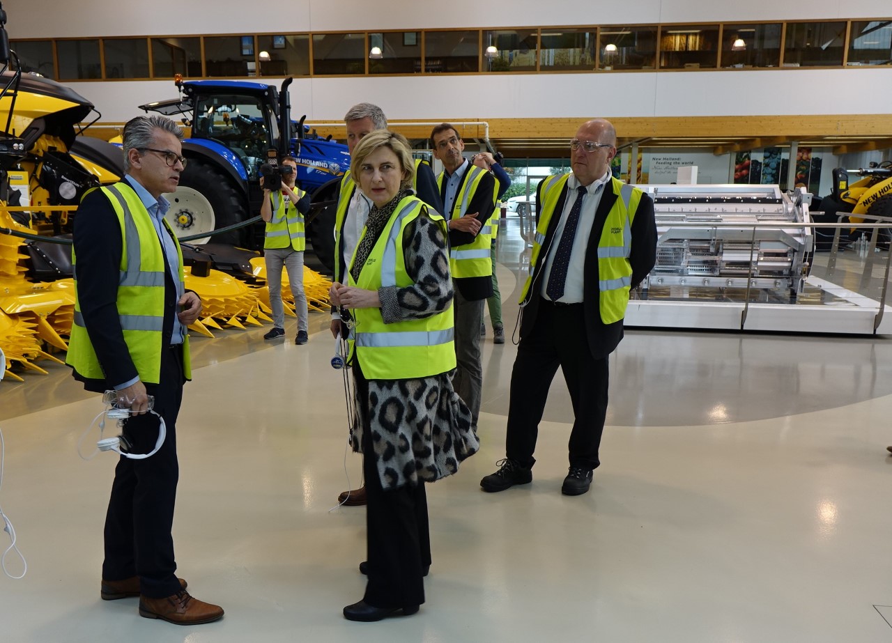 Vlaams minister van landbouw en werk Hilde Crevits bezoekt New Holland Agriculture plant in Zedelgem