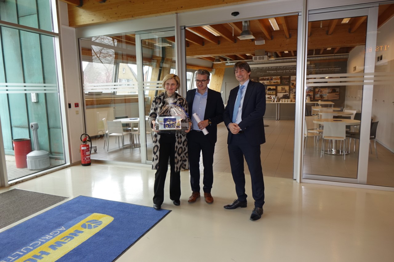 Op vrijdag 21 februari 2020 bracht minister van landbouw en werk Hilde Crevits een bezoek aan de New Holland Agriculture plant in Zedelgem. New Holland maakt deel uit van de CNH Industrial groep die een wereldspeler is op het vlak van landbouwmachines en wereldwijd meer dan 64.000 medewerkers te werk stelt. CNH Industrial Belgium telt drie vestigingen in Antwerpen, Zedelgem en Groot-Bijgaarden, goed voor ruim 3200 werknemers. In de vestiging in Zedelgem werken ongeveer 2300 mensen die maaidorsers, balenpersen en hakselaars ontwikkelen en bouwen voor de hele wereld.
