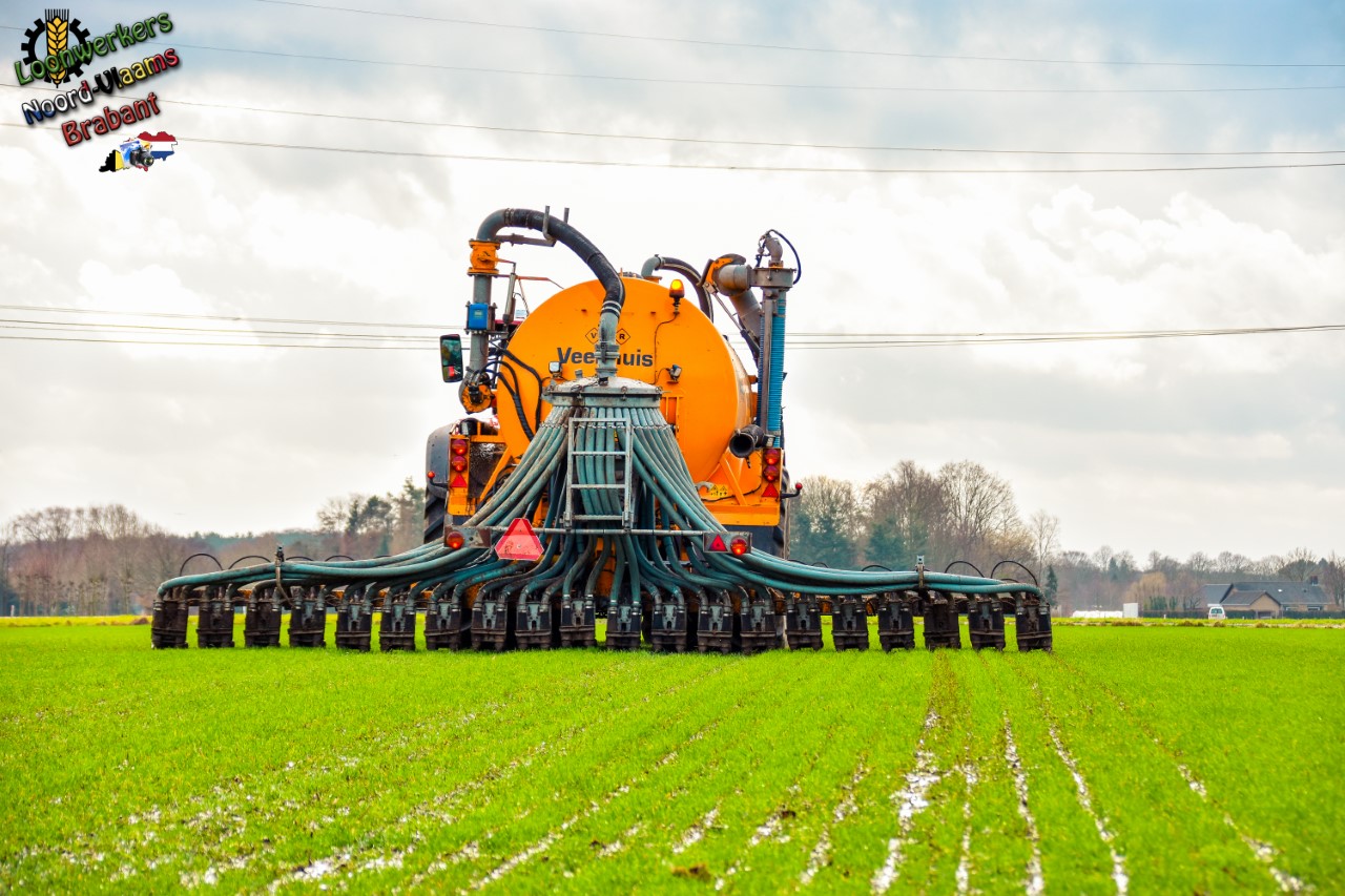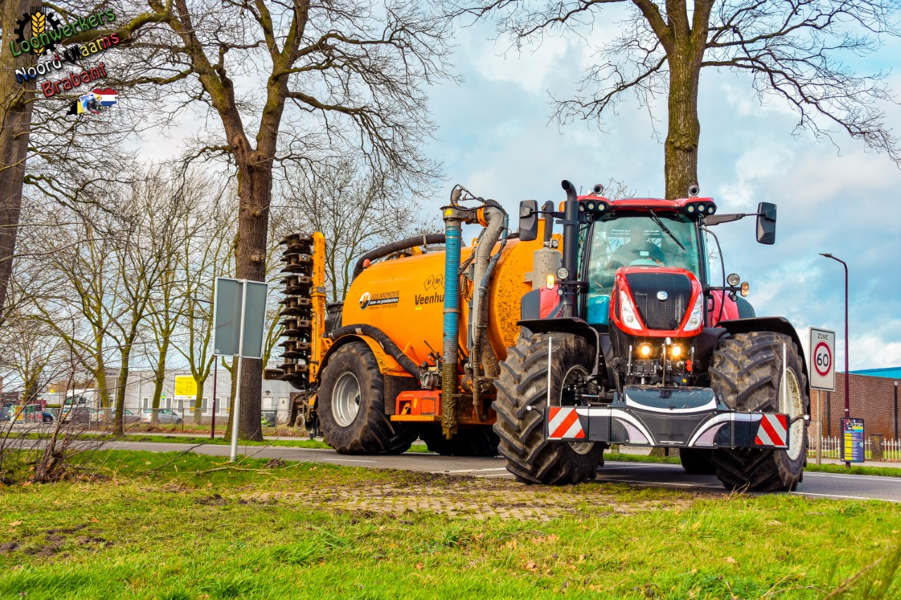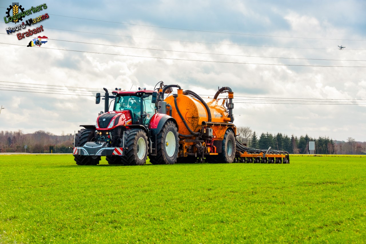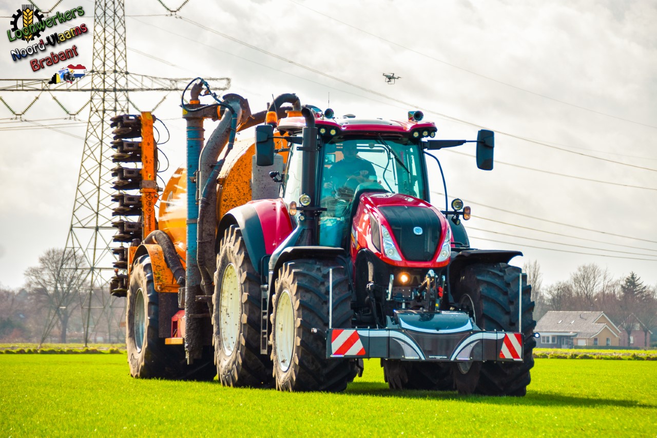 De winter wil maar niet in komen in Europa. Op plaatsen in de Alpen is er sneeuwtekort en de herfst is in de BeNeLux enigszins blijven hangen. Door de stormen en de vele regen wil het mestseizoen 2020 maar moeizaam op gang komen. Gelukkig zijn er ook drogere percelen, daar vond ik Loonbedrijf Monden bezig met de gloednieuwe (1 week oud) New Holland T7.290 Heavy Duty en zijn Veenhuis enkelasser mesttank met graslandinjecteur. Ook de drone (ook te spotten op de foto) van Flying Pixels Photography is te zien op de fotos en zie ook de video.