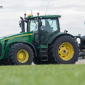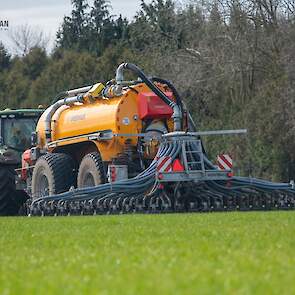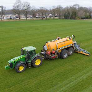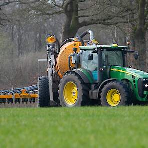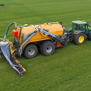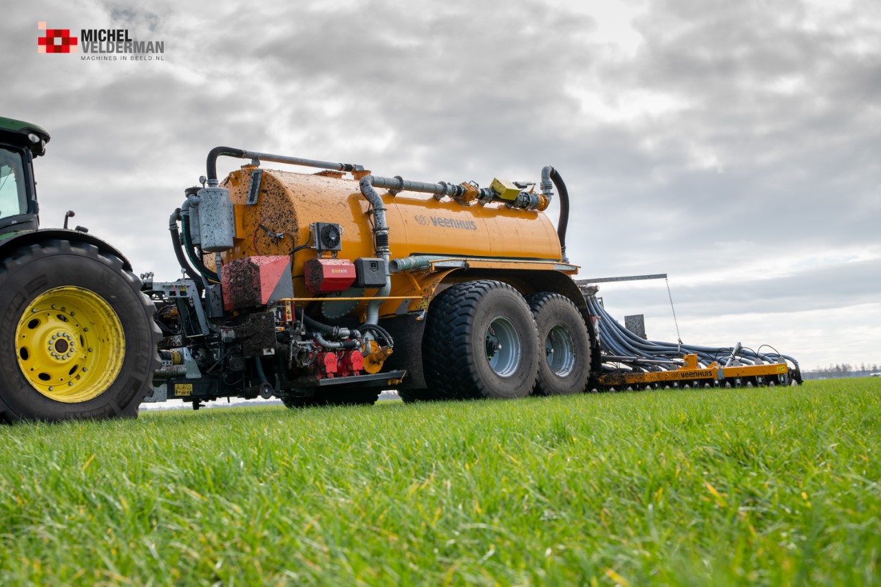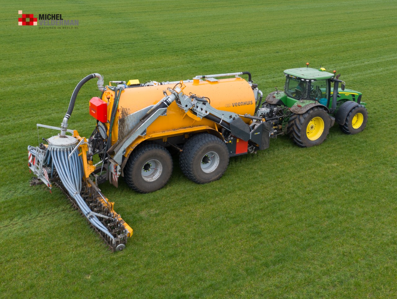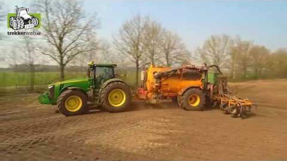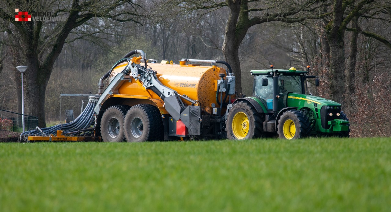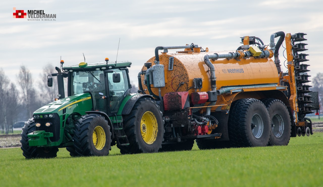 John Deere 8345R met Veenhuis-tandemassertank en Veenhuis-graslandbemester.