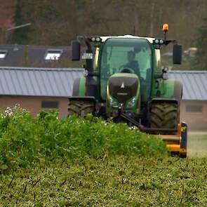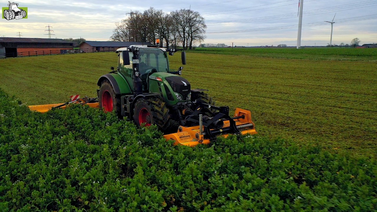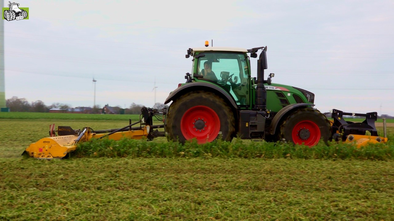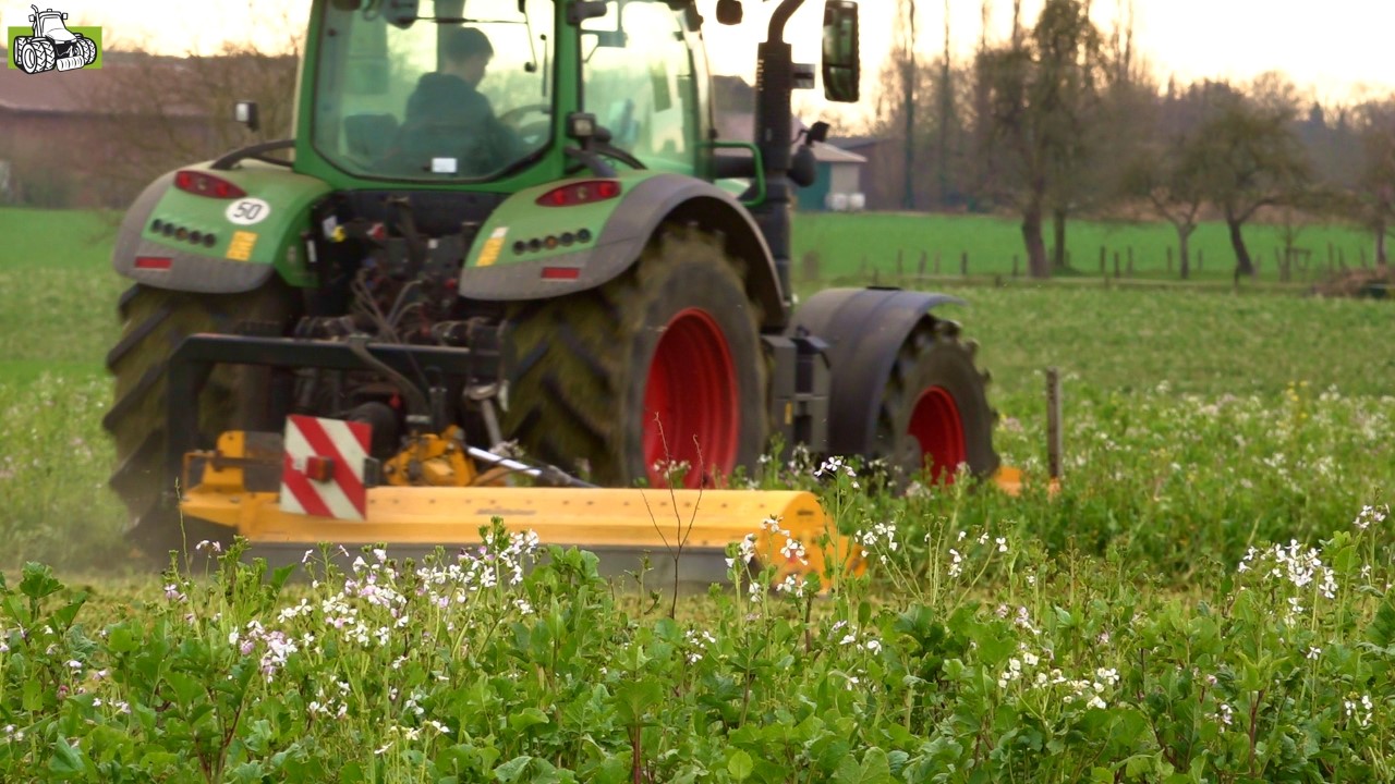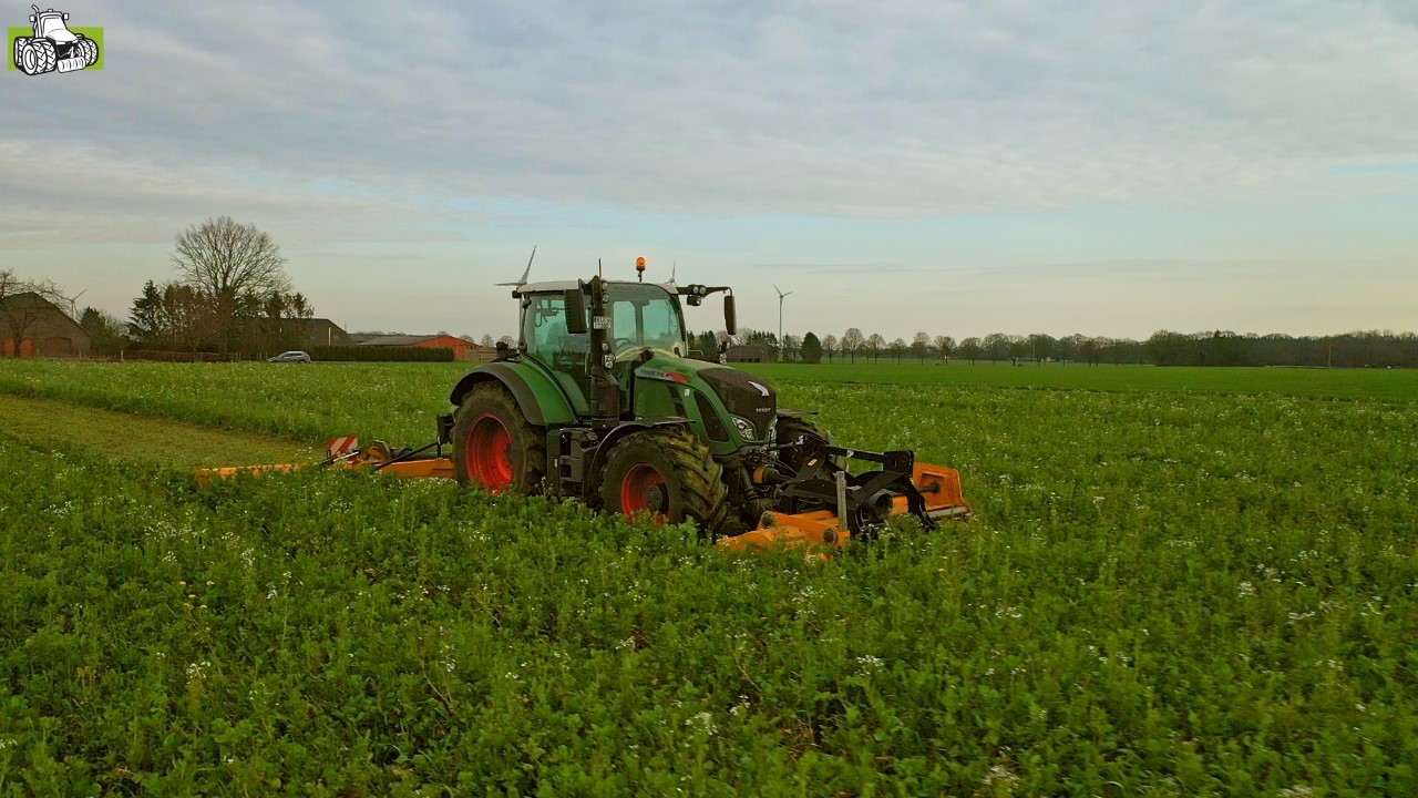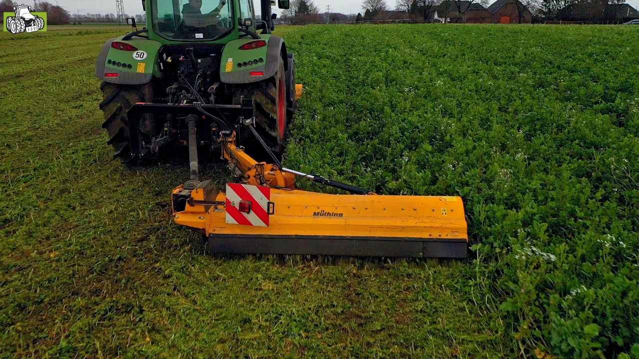 Groenbemester klepelen met Fendt 718 Vario en Müthing voor- en achtermaaier - Trekkerweb
