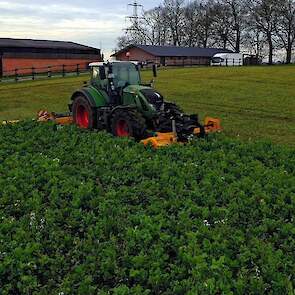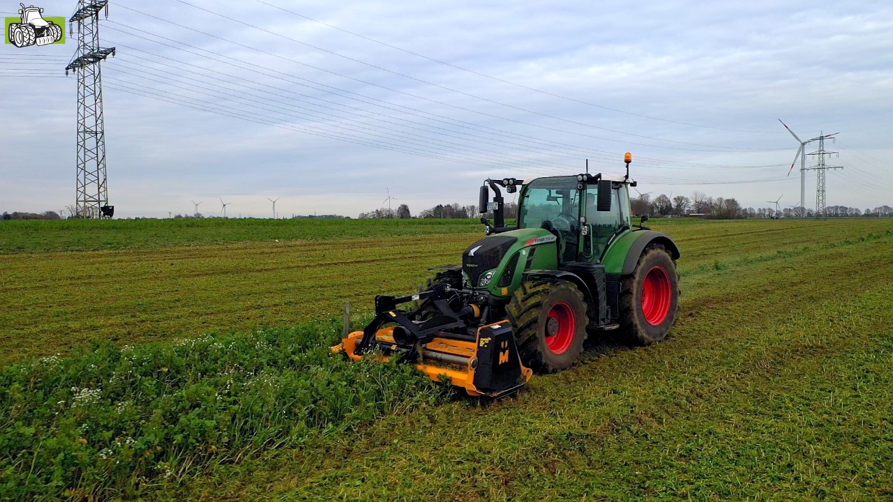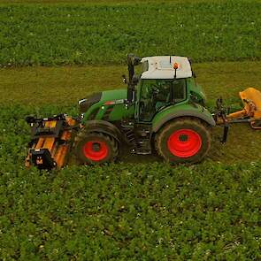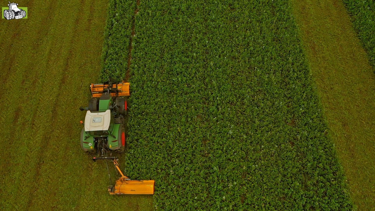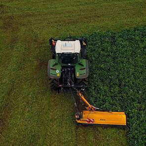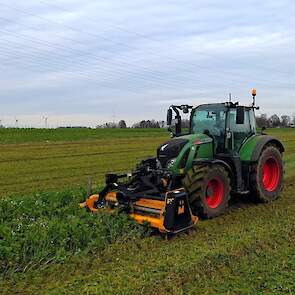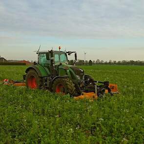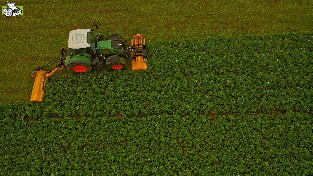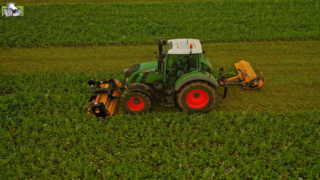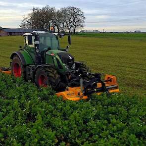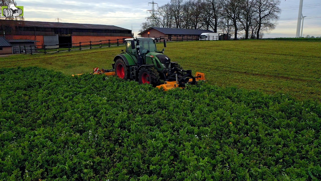 Groenbemester klepelen met Fendt 718 Vario en Müthing voor- en achtermaaier