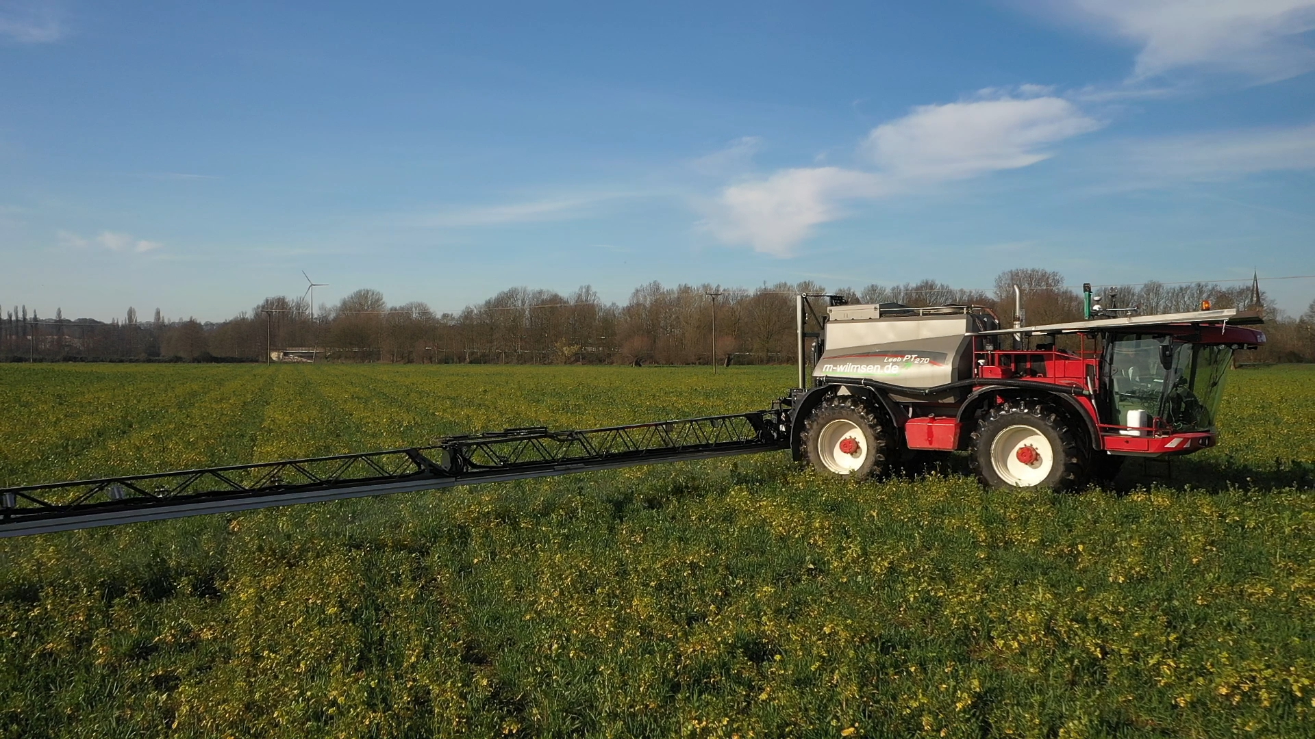 Loonbedrijf Wilmsen uit Duitsland aan de Nederrijn heeft drie Horsch-veldspuiten in gebruik. Twee getrokken spuiten en een zelfrijder, de Horsch Leeb PT 270.