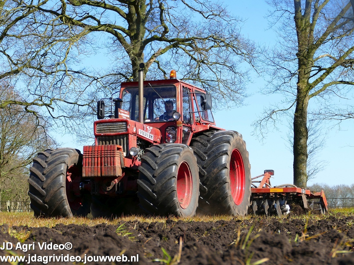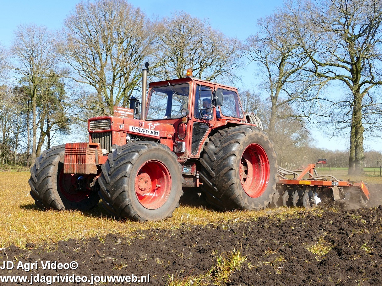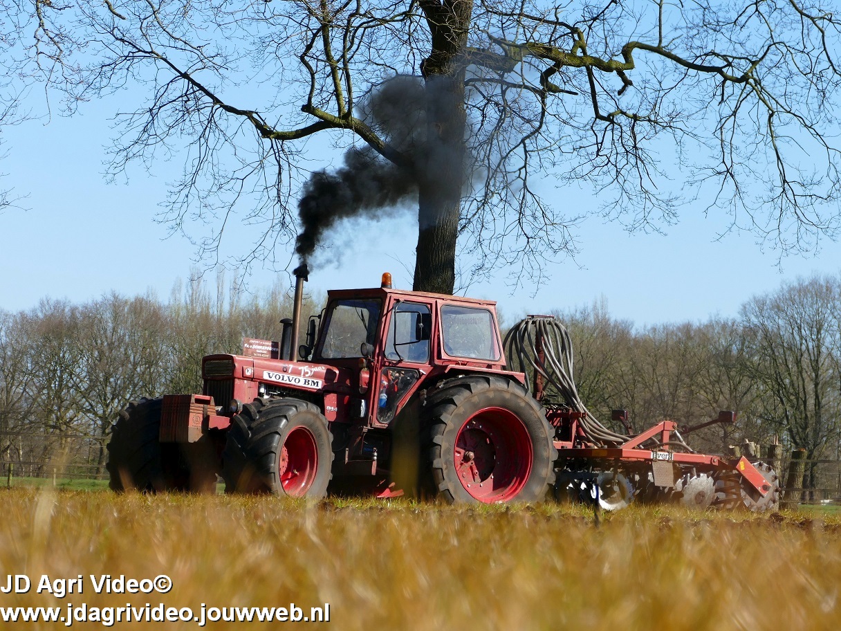 Loonbedrijf van Donkersgoed BV uit Voorthuizen aan het schijveneggen met een rokende Volvo BM 814 Turbo (1979) met Evers-schijveneg.