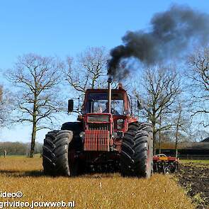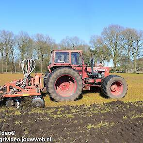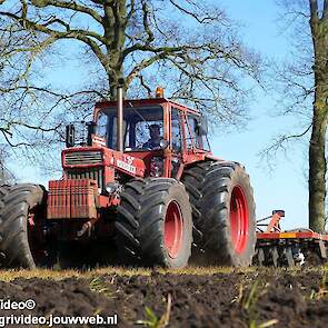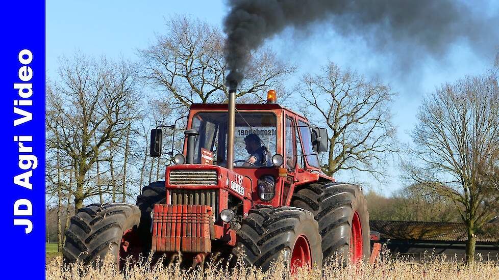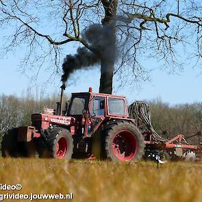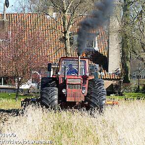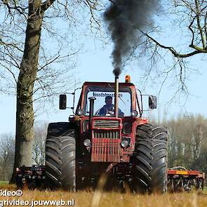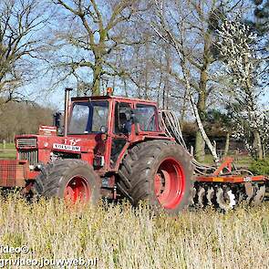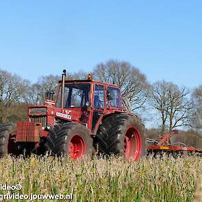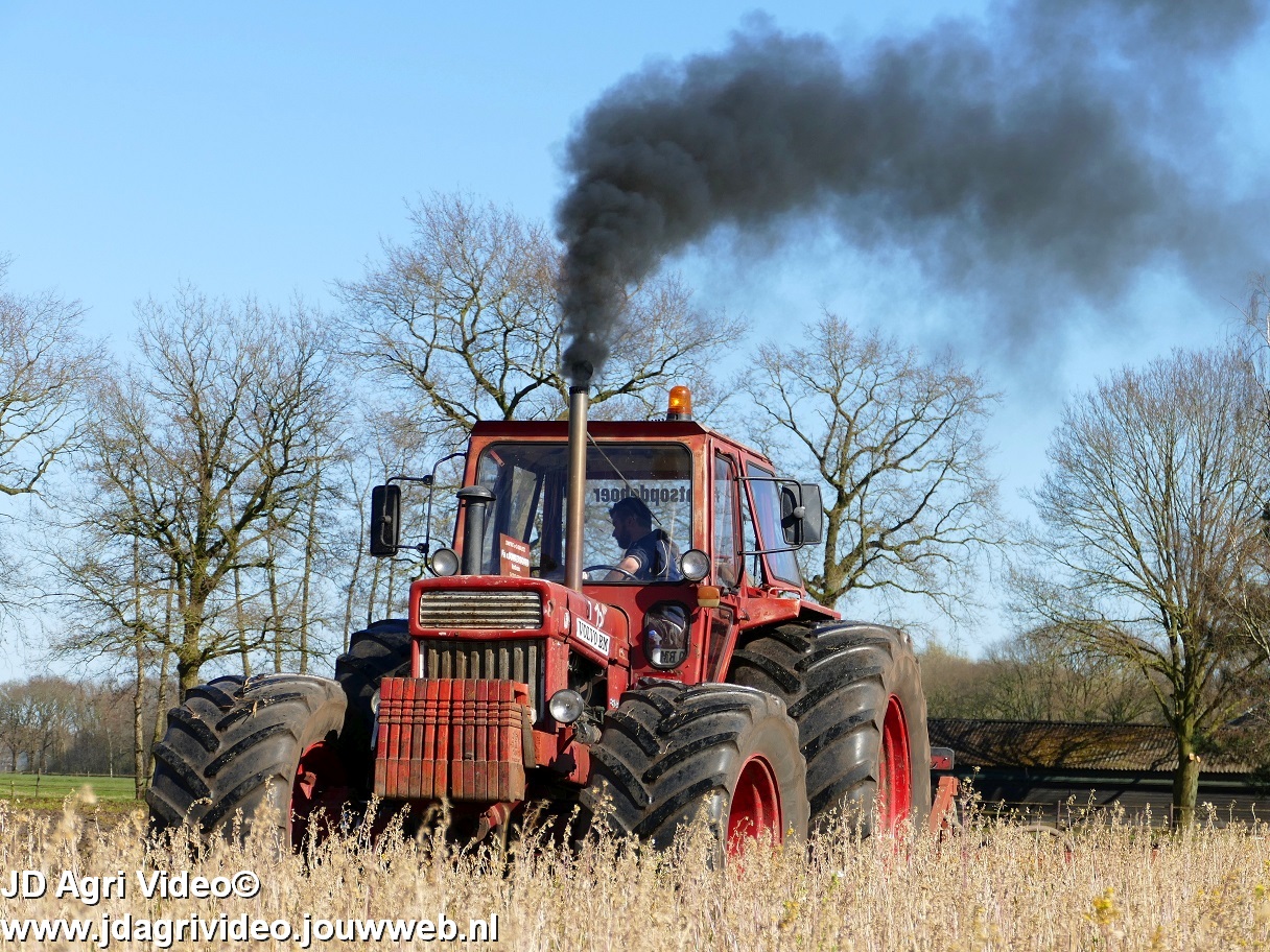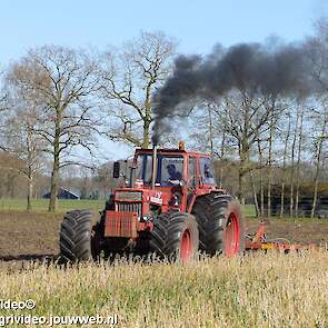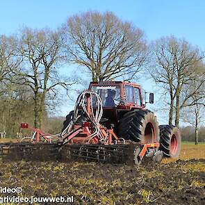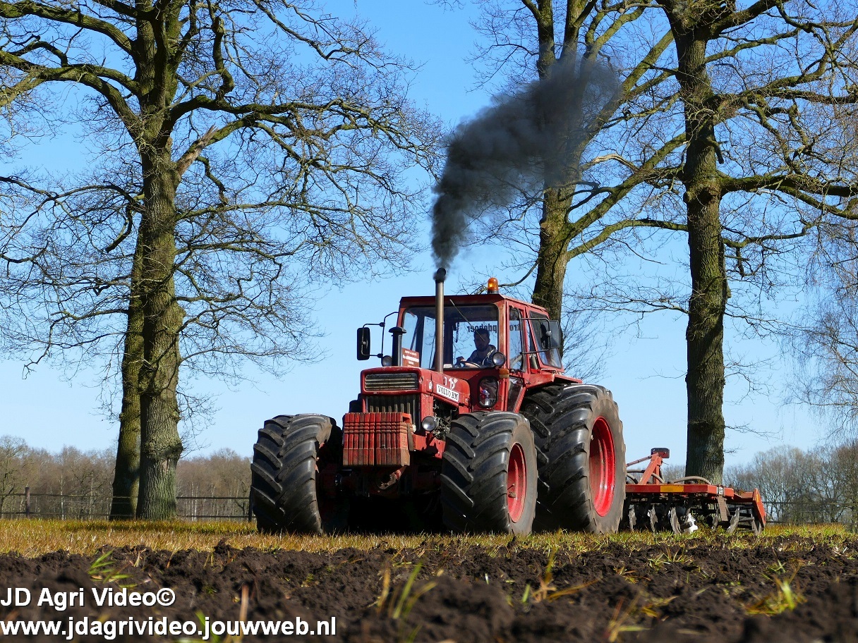 Loonbedrijf van Donkersgoed BV uit Voorthuizen aan het schijveneggen met een rokende Volvo BM 814 Turbo (1979) met Evers-schijveneg.