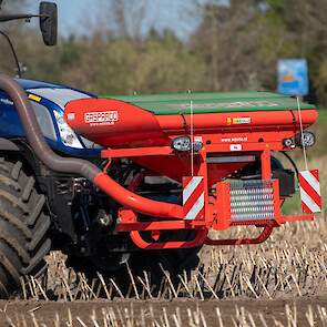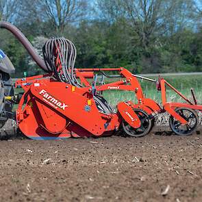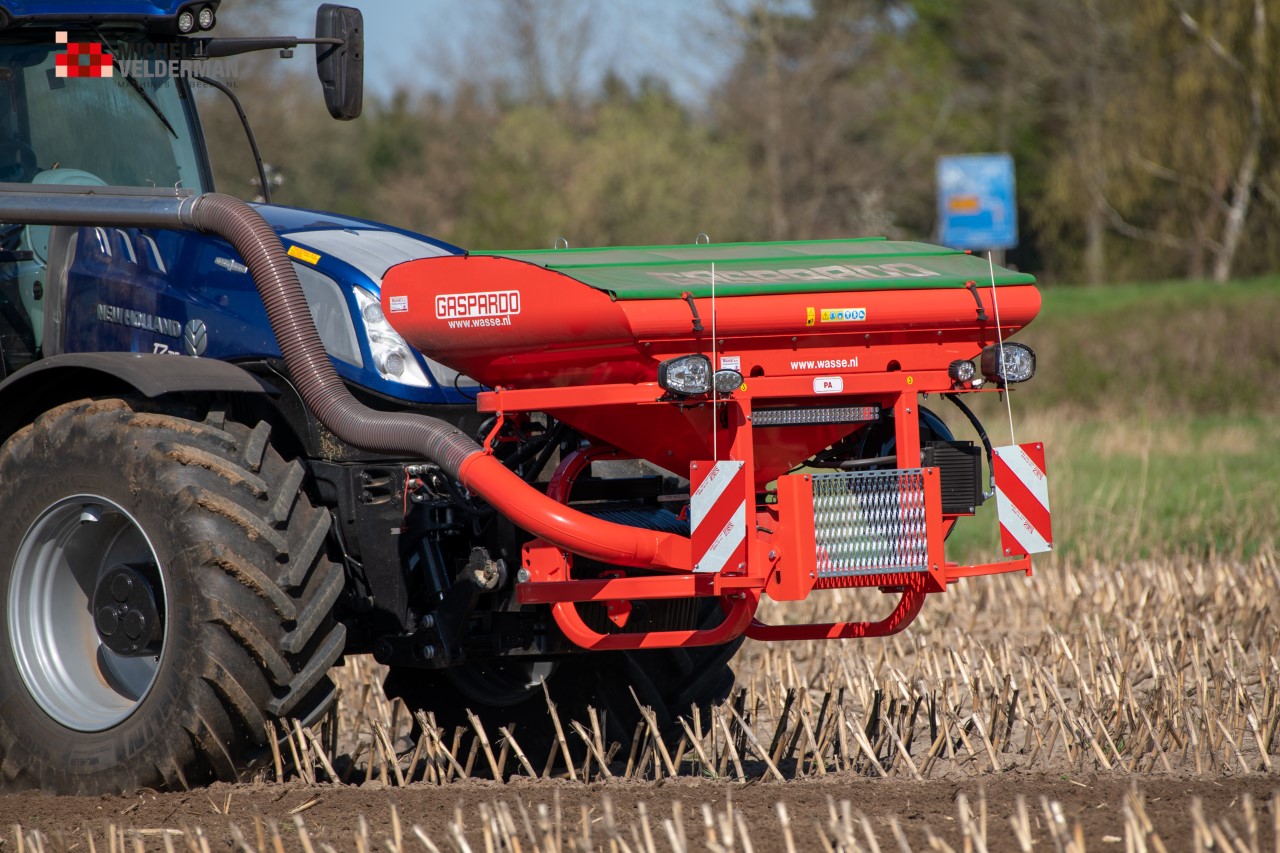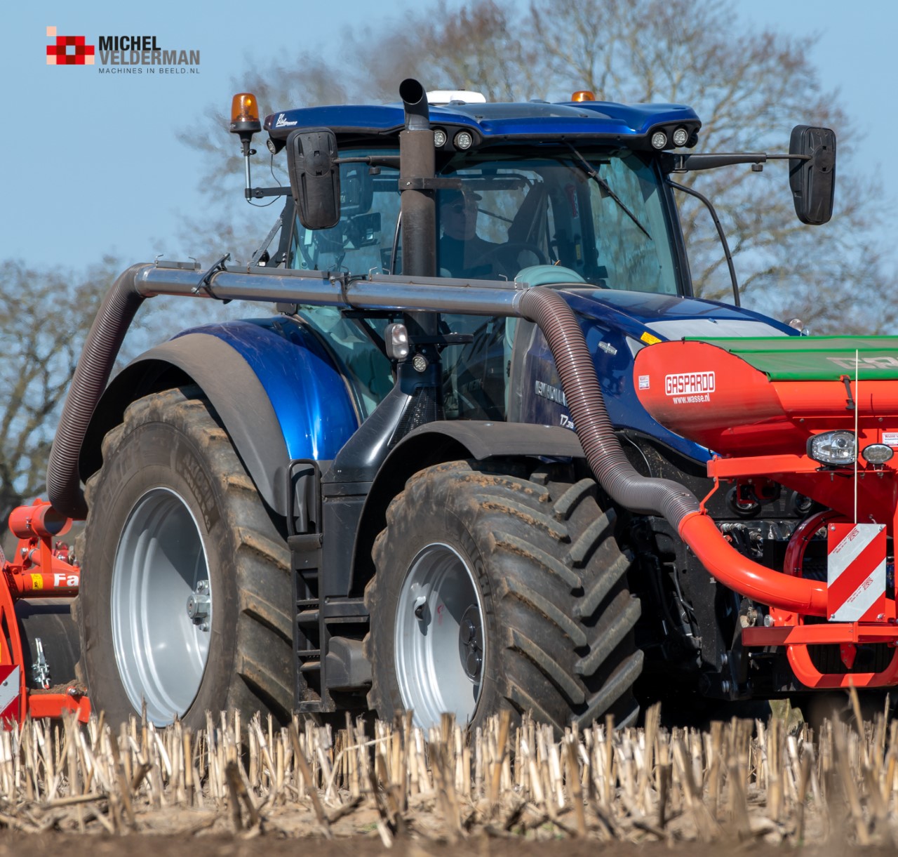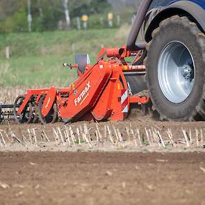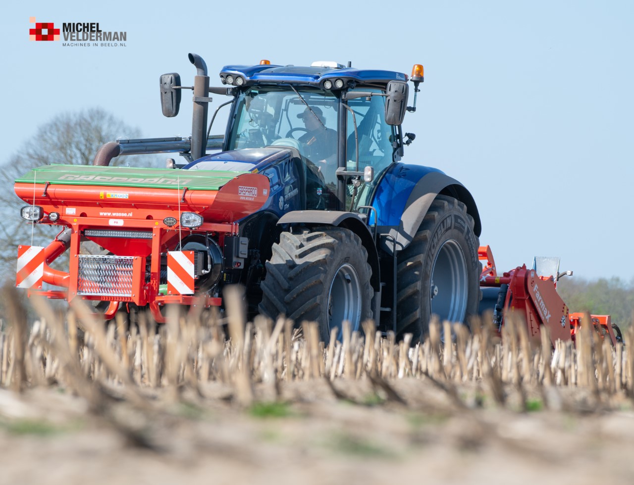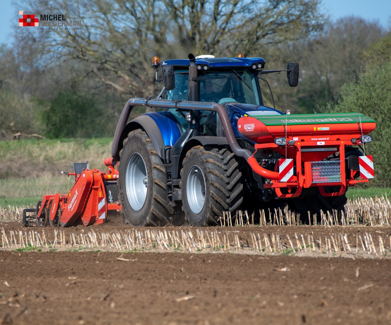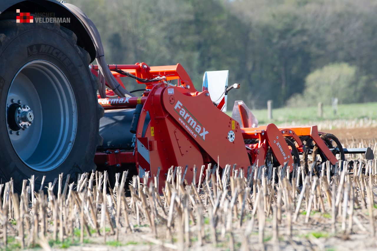 Farmax spit-zaaicombinatie van loonbedrijf Muller aan het werk. Voor de spitmachine een New Holland Blue Power 7.315 HD.