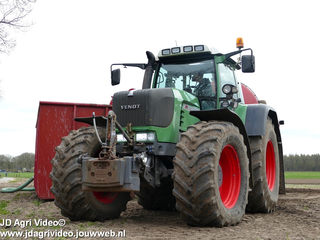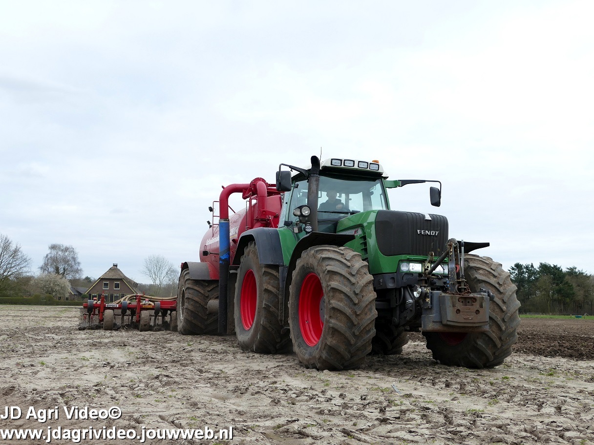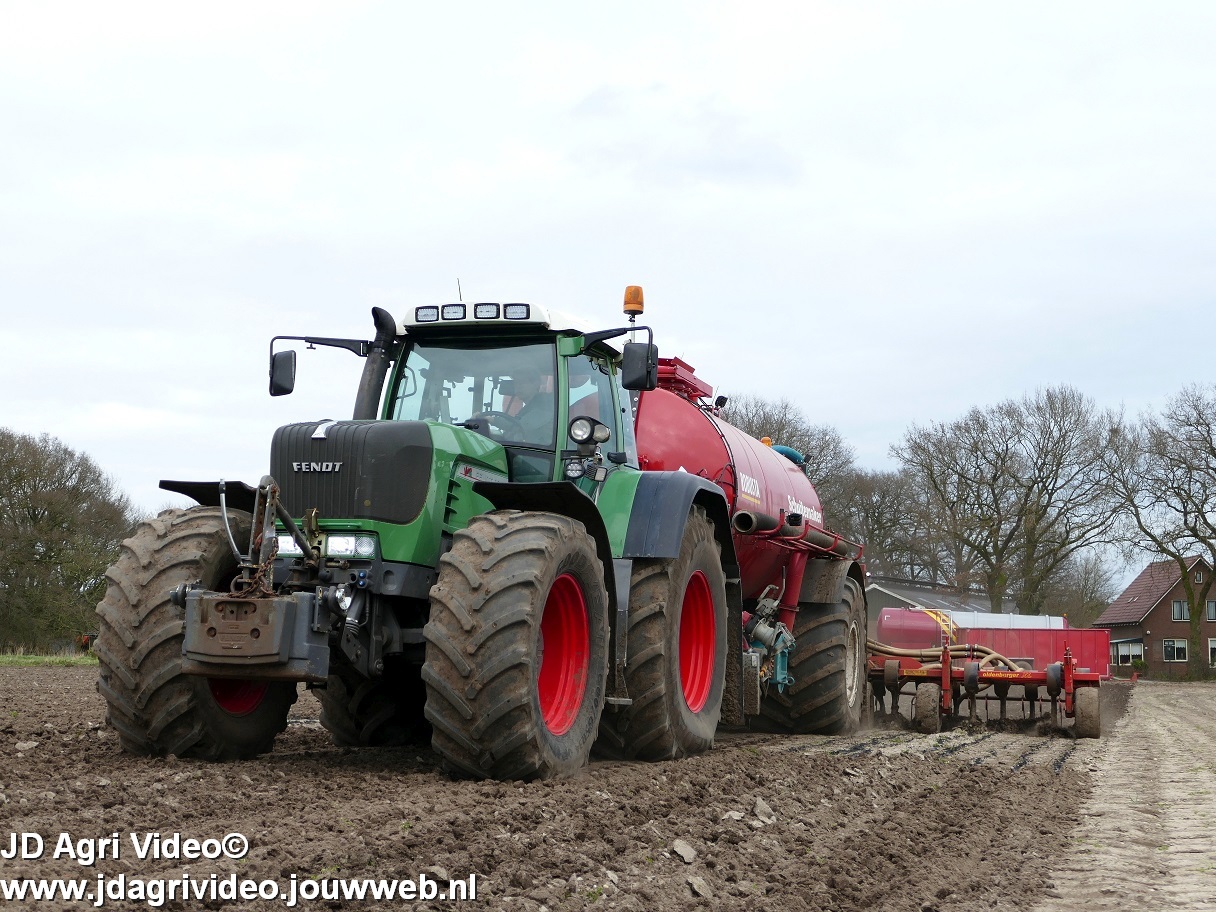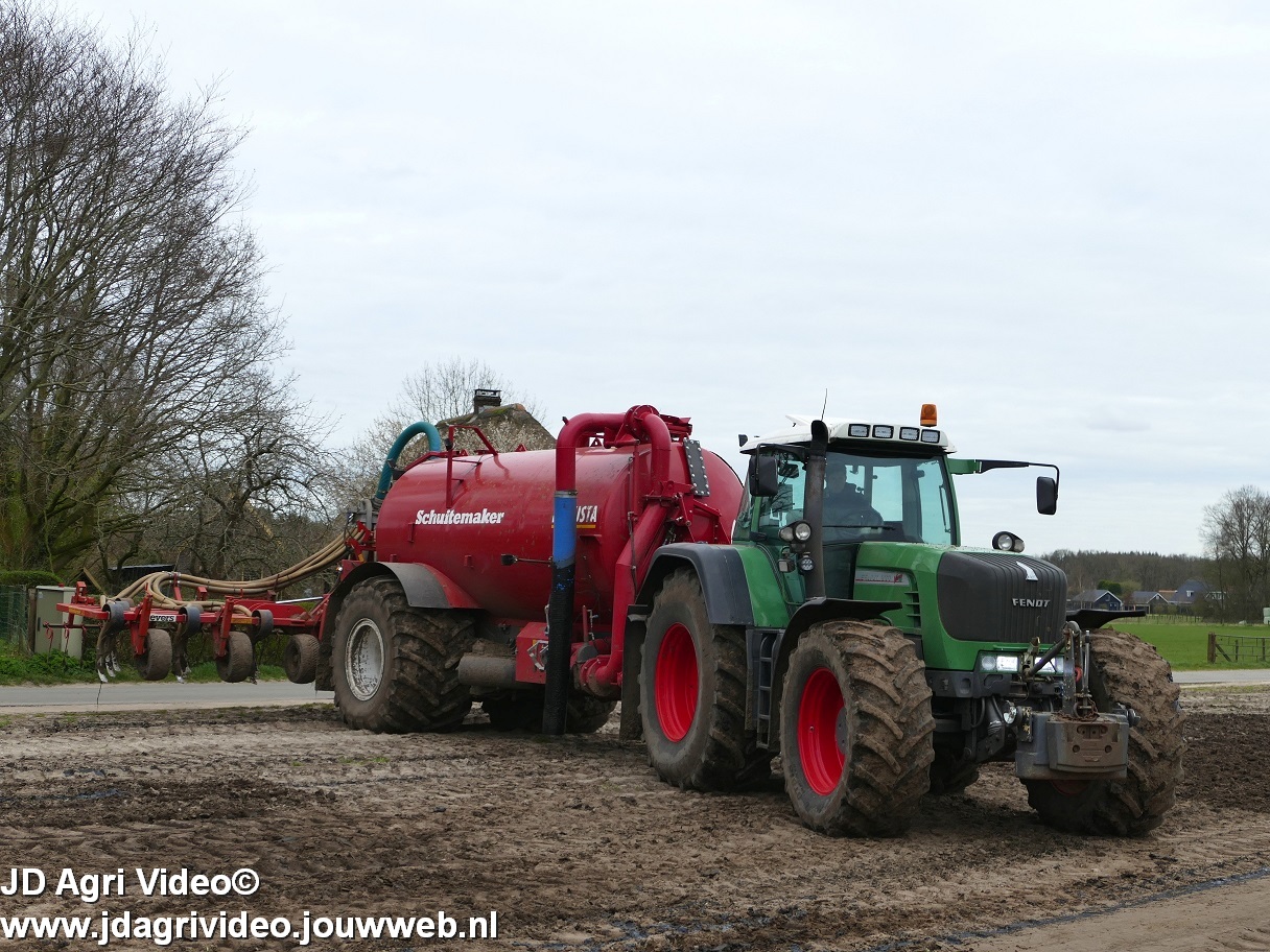 Loonbedrijf Hans Versteeg uit Uddel aan het bouwland bemesten met digestaat, gebruikmakend van een Fendt 930 Vario TMS met Schuitemaker Robusta-mesttank en Evers-bouwlandbemester. Voor het transport een DAF XF 460 van K. Mulder uit Putten.