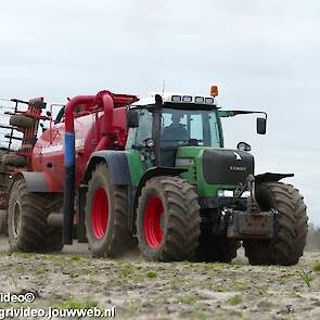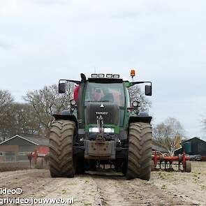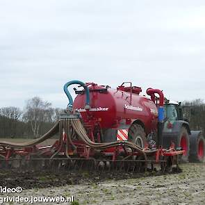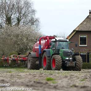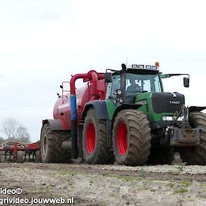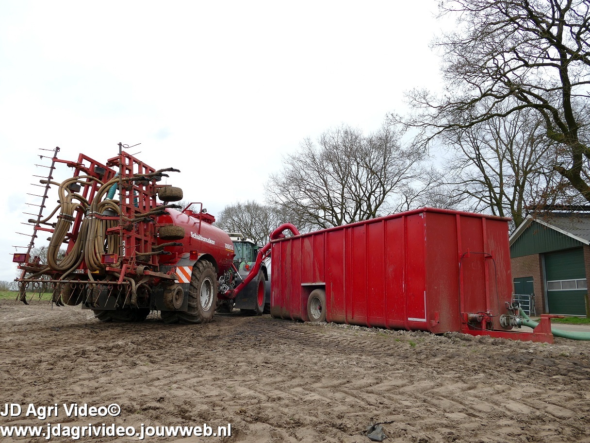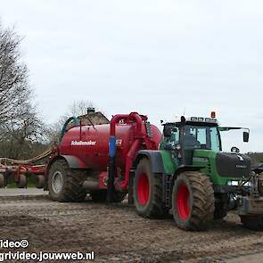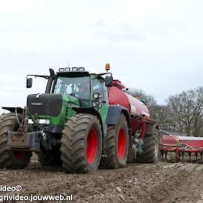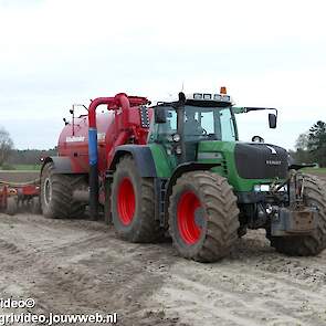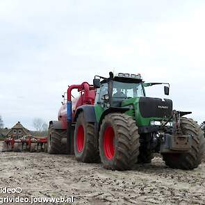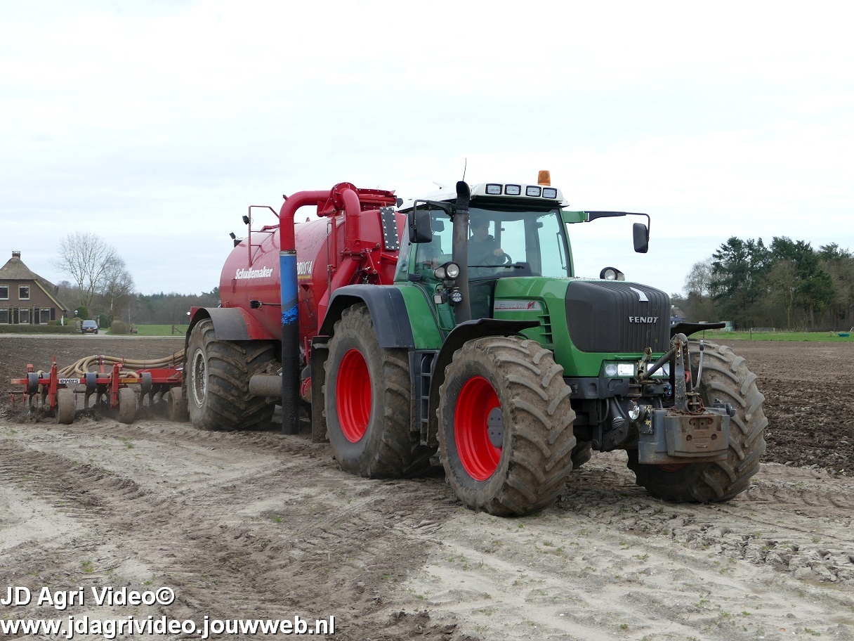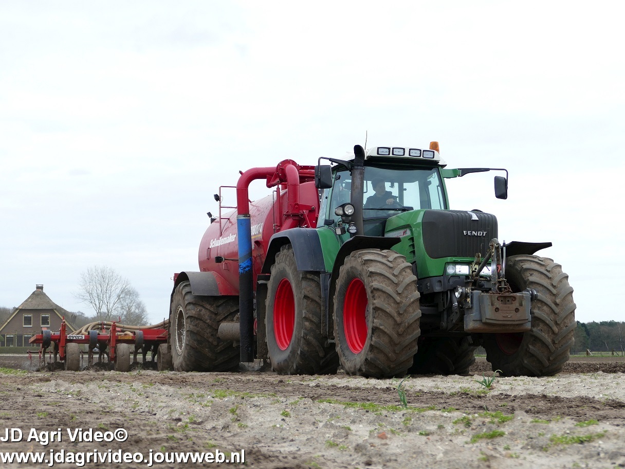Loonbedrijf Hans Versteeg uit Uddel aan het bouwland bemesten met digestaat, gebruikmakend van een Fendt 930 Vario TMS met Schuitemaker Robusta-mesttank en Evers-bouwlandbemester. Voor het transport een DAF XF 460 van K. Mulder uit Putten.