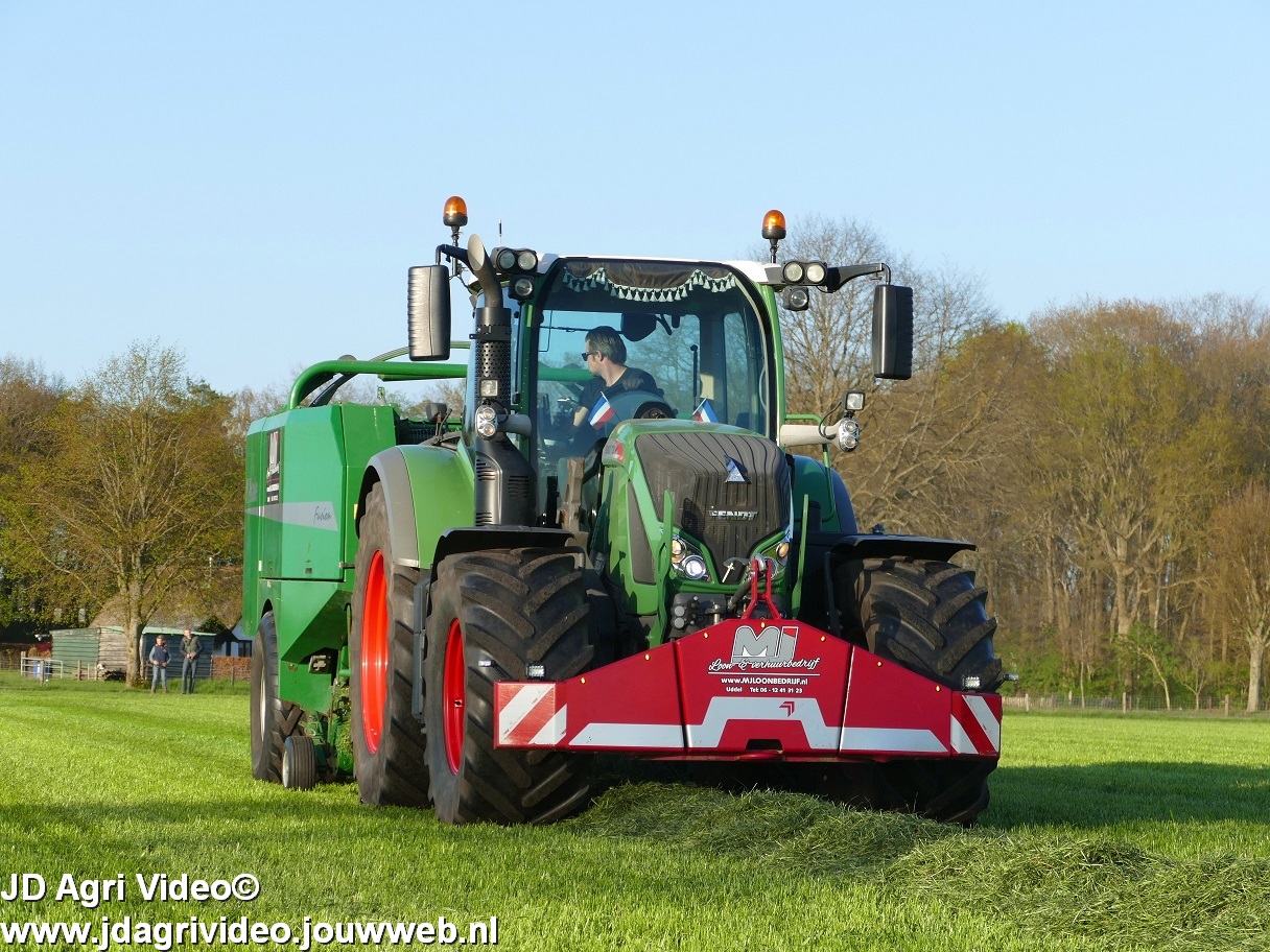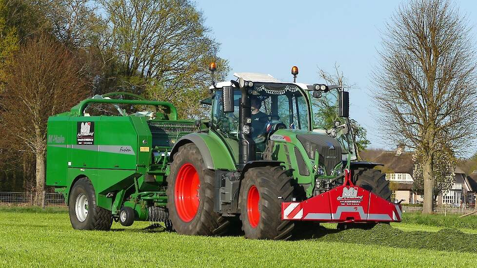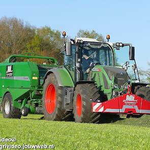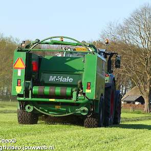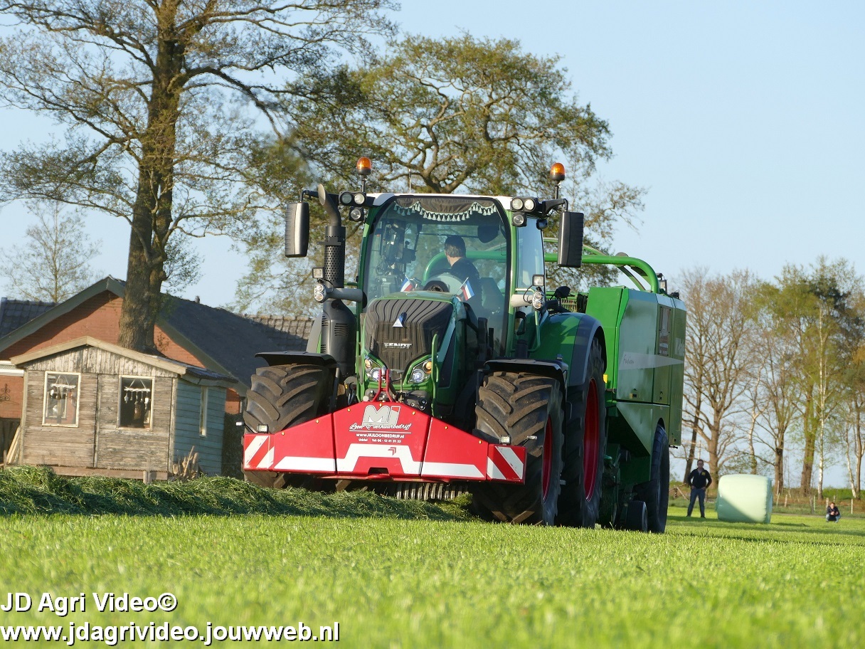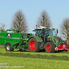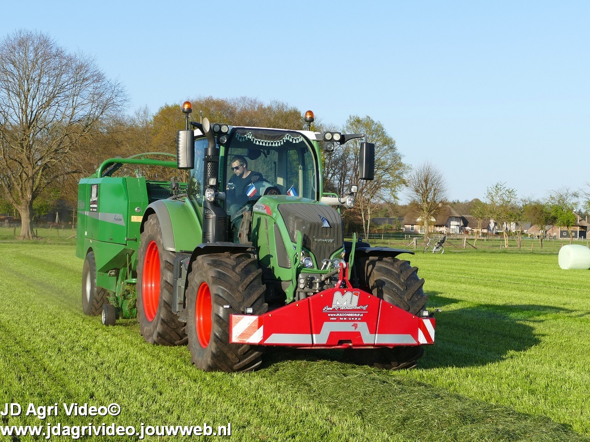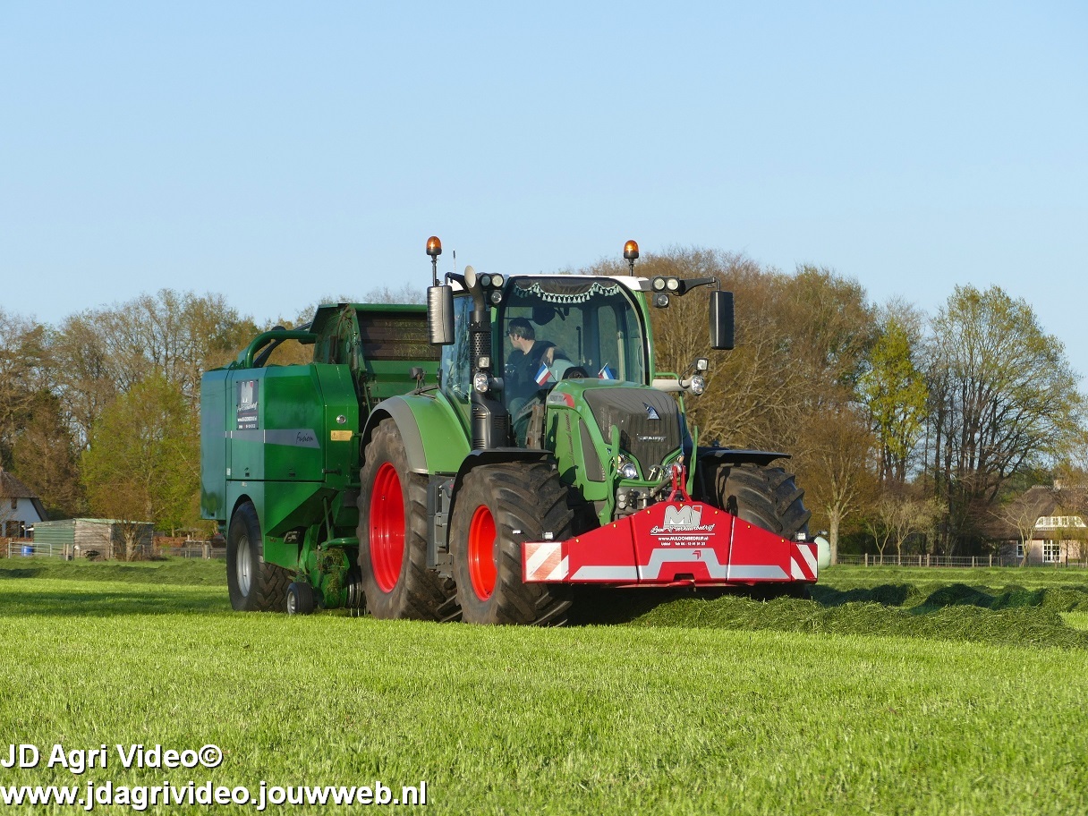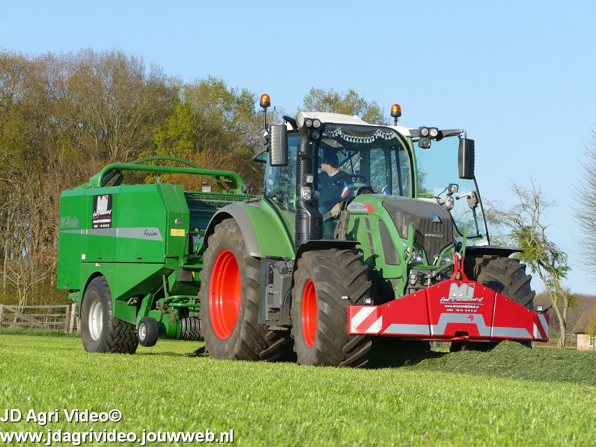 Loon-/ verhuurbedrijf MJ uit Uddel (GD) is hier de eerste balen aan het persen en wikkelen met een Fendt 720 Vario met een McHale Fushion-pers/ wikkelcombinatie.