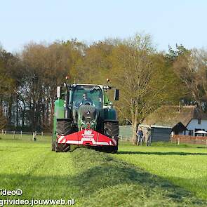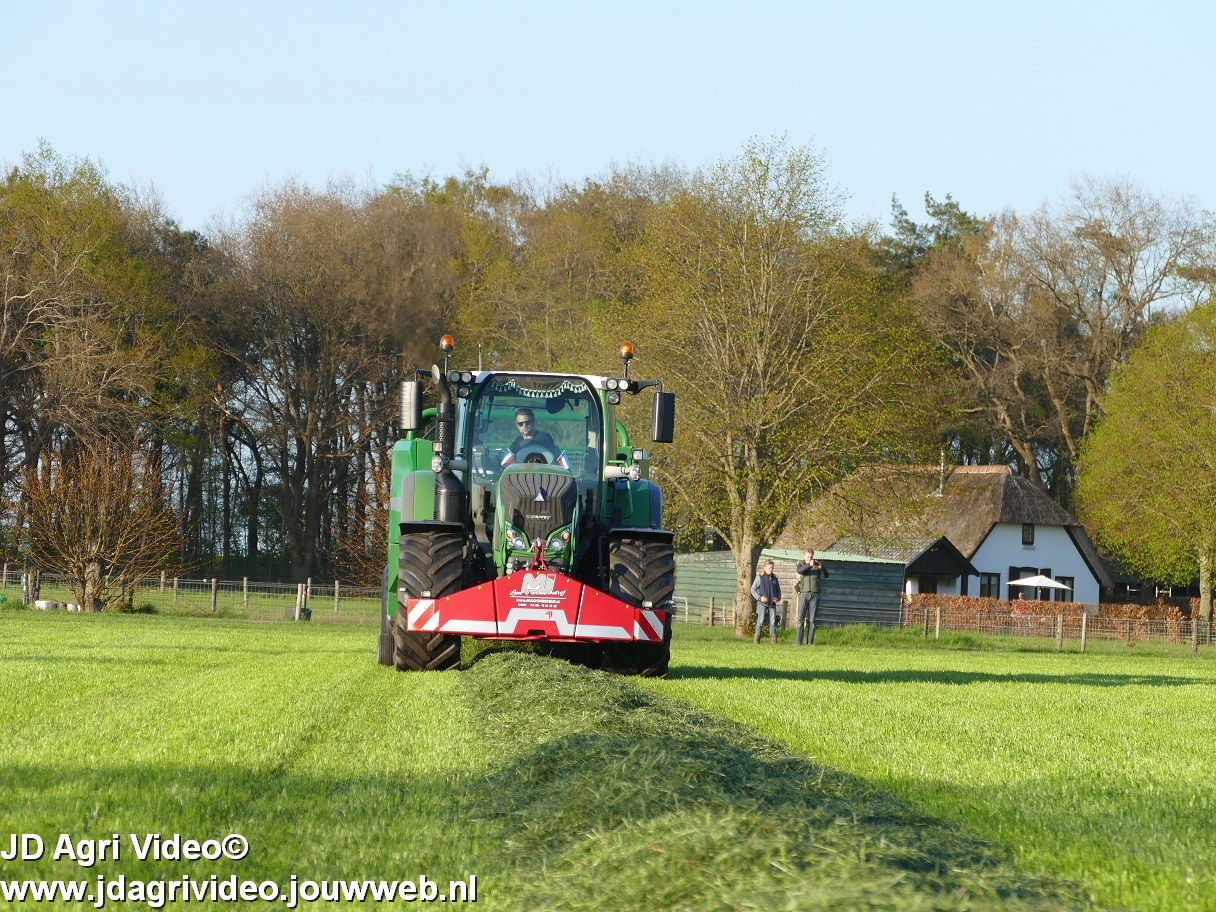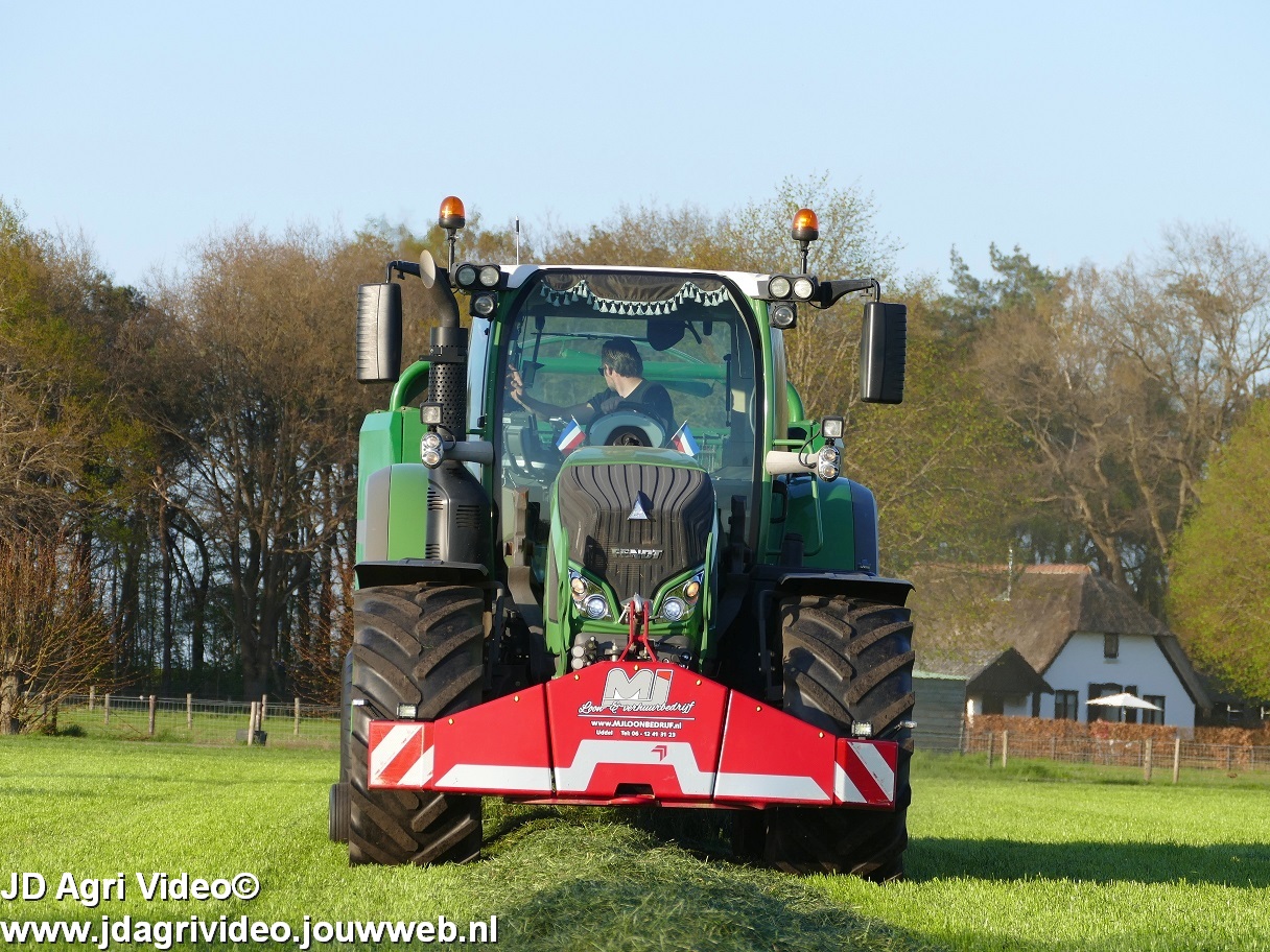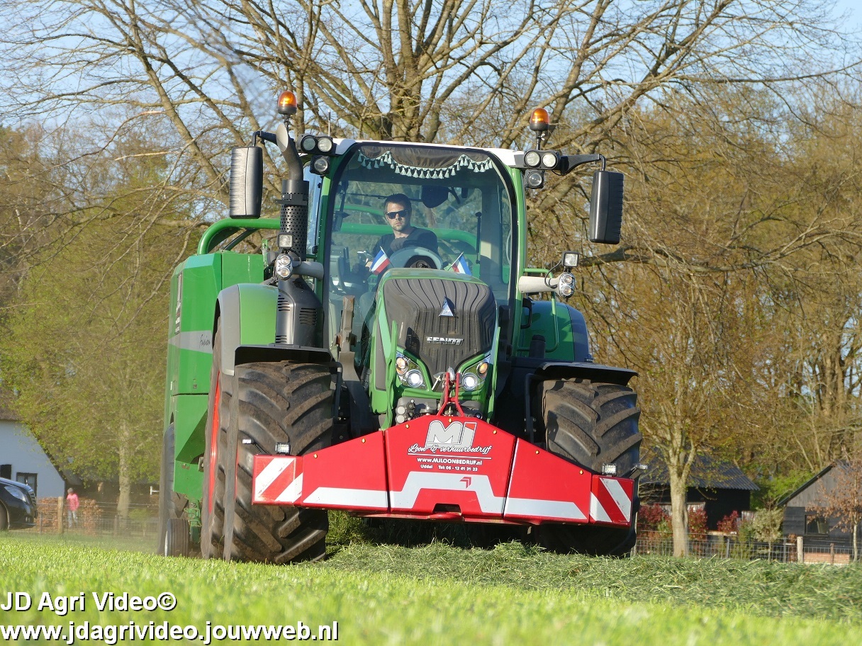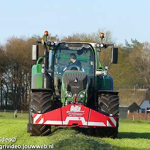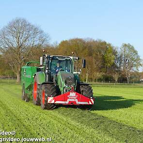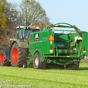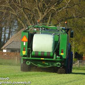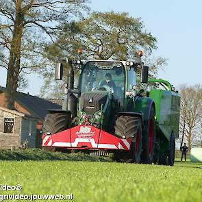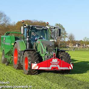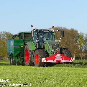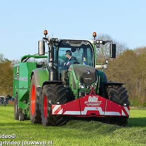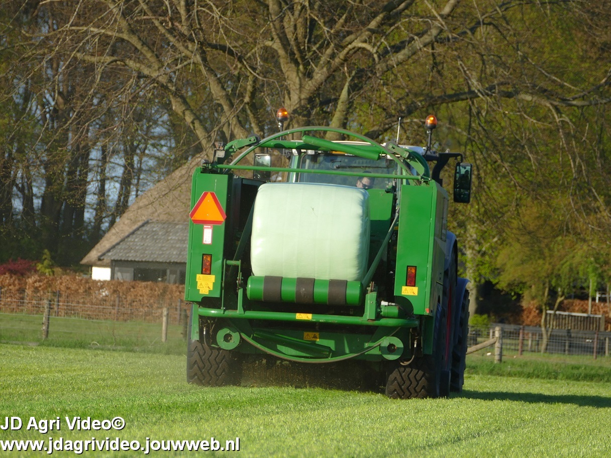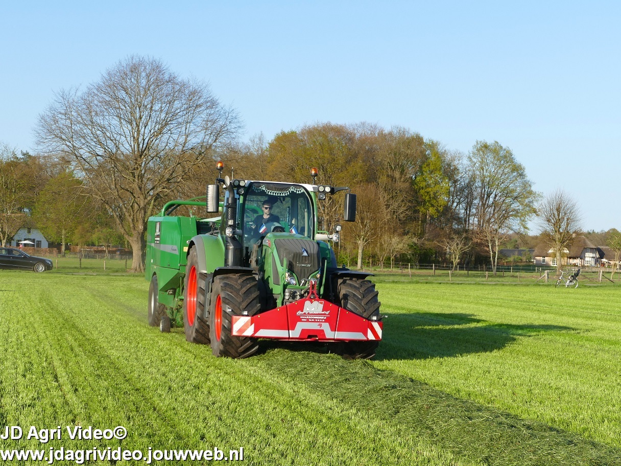 Loon-/ verhuurbedrijf MJ uit Uddel (GD) is hier de eerste balen aan het persen en wikkelen met een Fendt 720 Vario met een McHale Fushion-pers/ wikkelcombinatie.