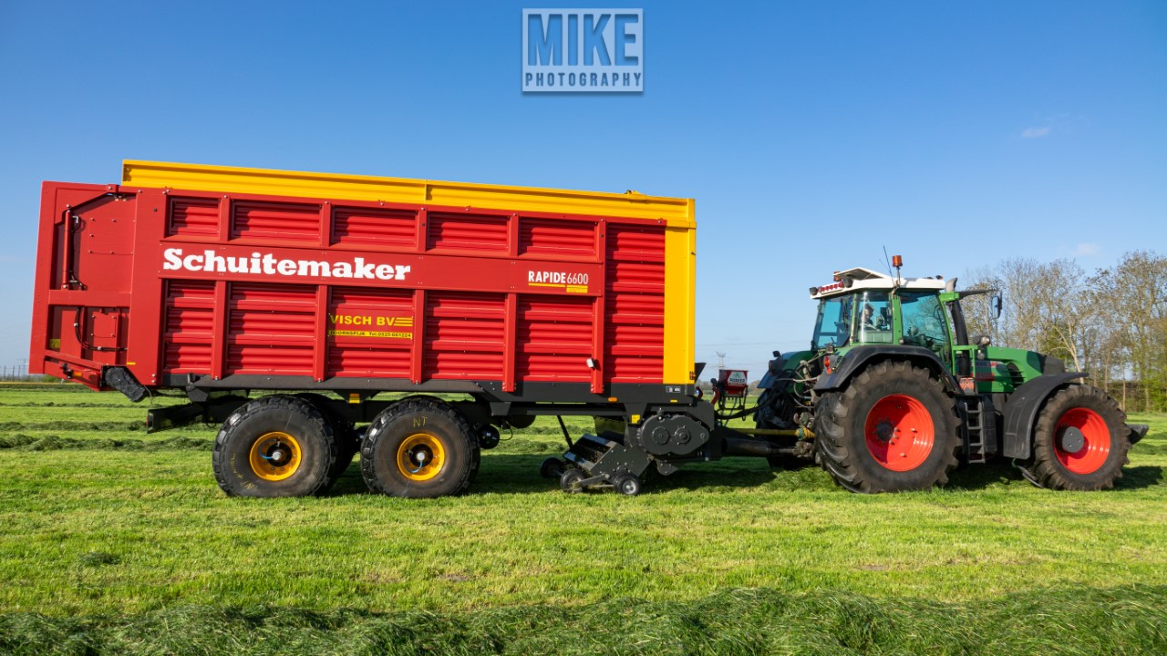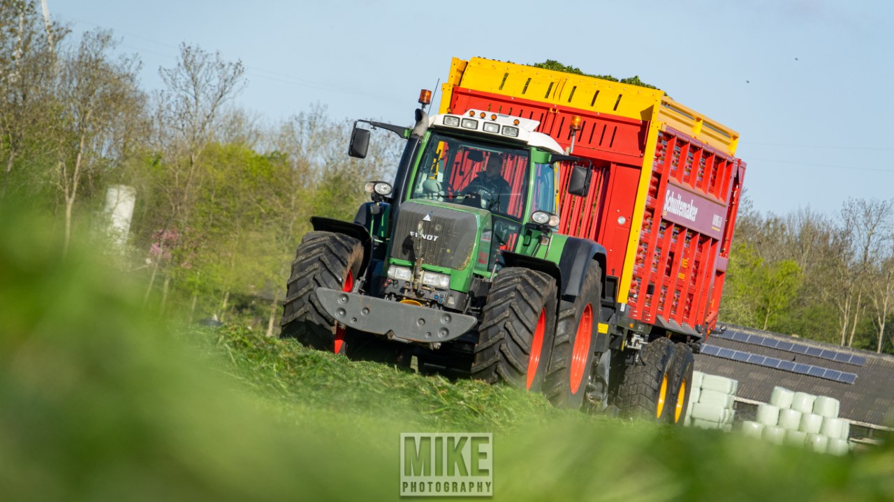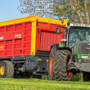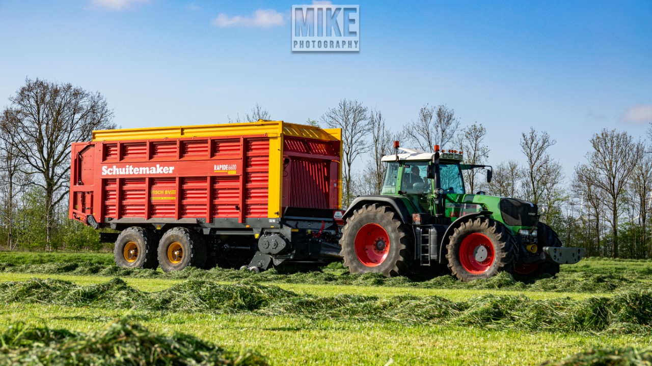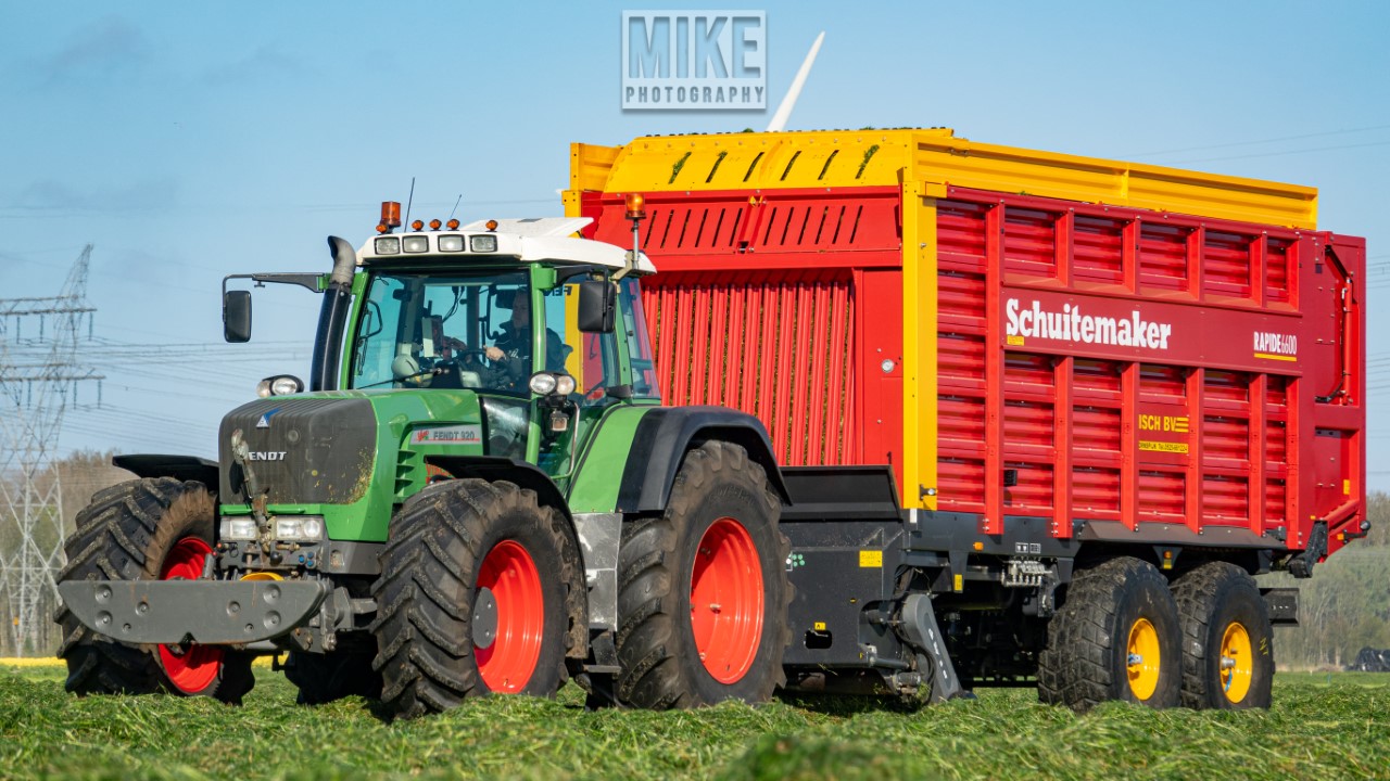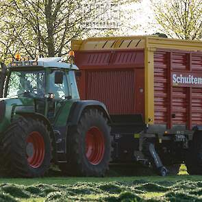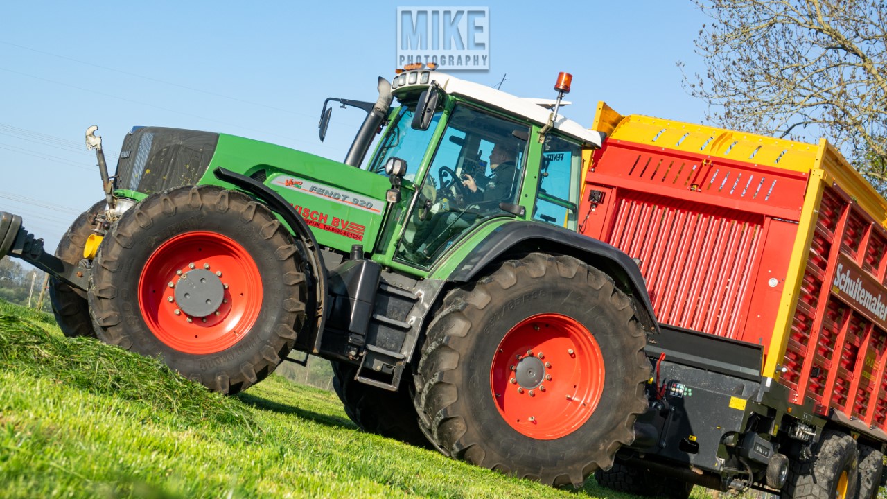 Fendt 920 Vario met Schuitemaker-opraapwagen al weer volop in het voorjaarsgras.