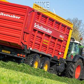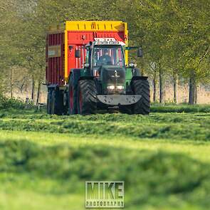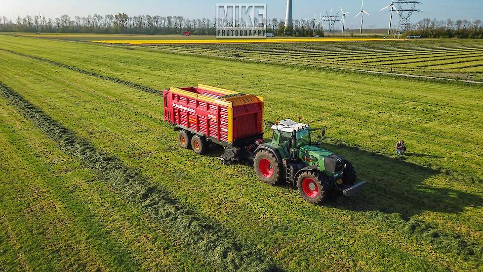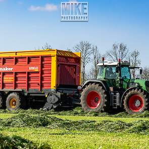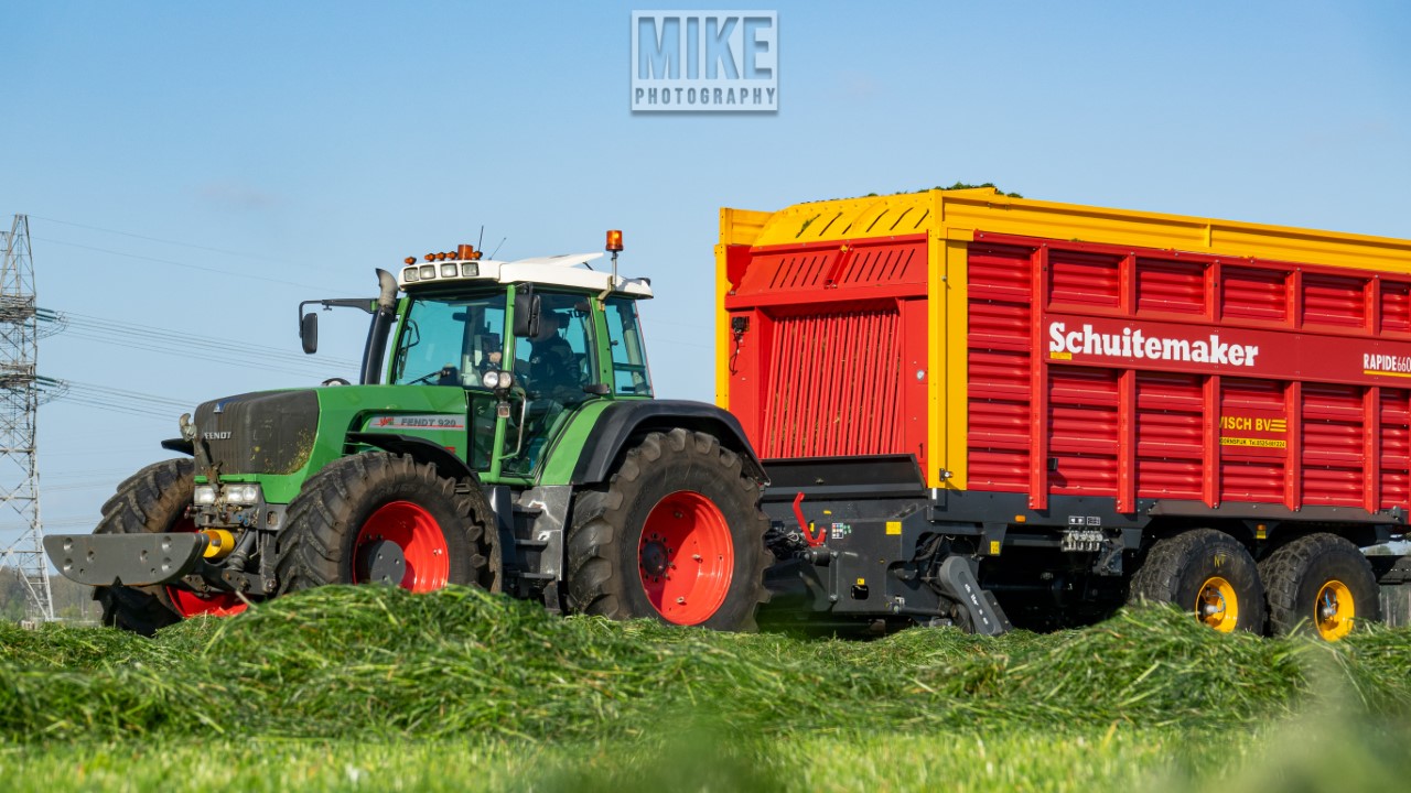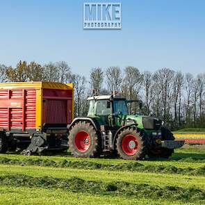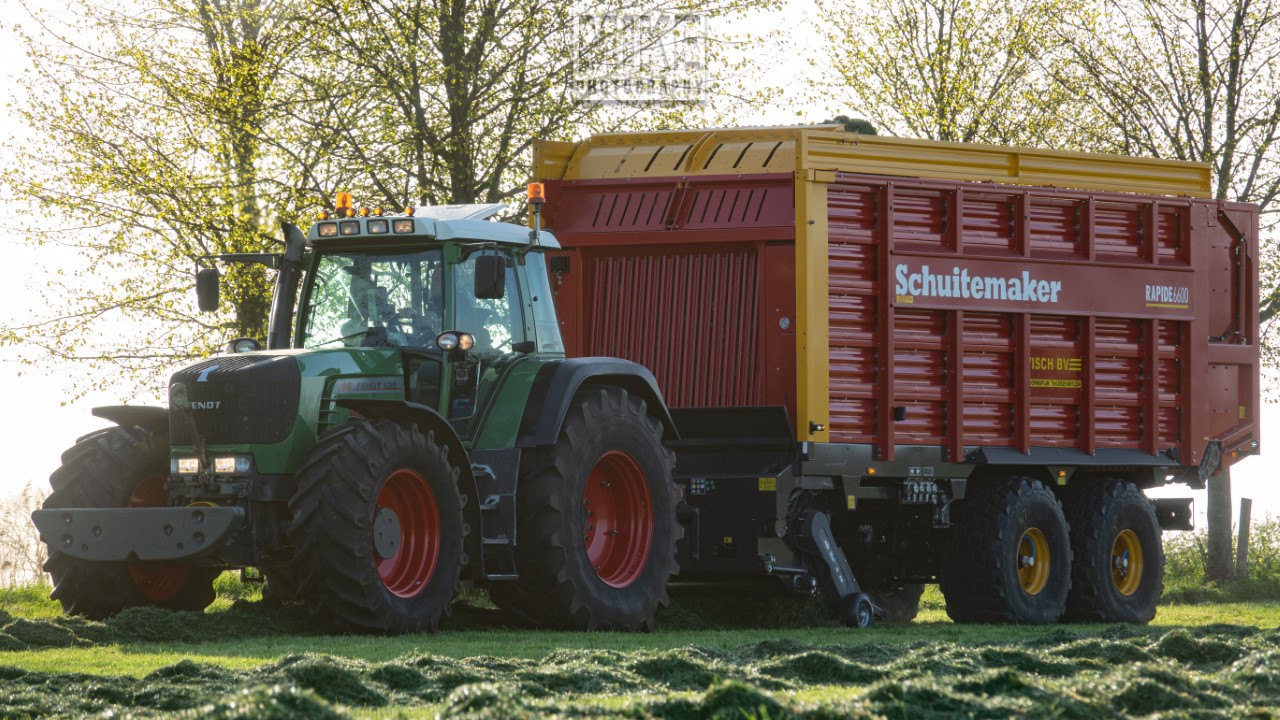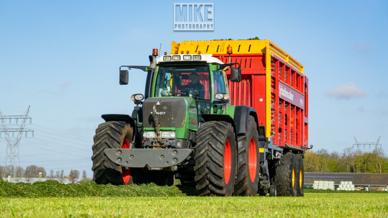 Fendt 920 Vario met Schuitemaker-opraapwagen al weer volop in het voorjaarsgras.