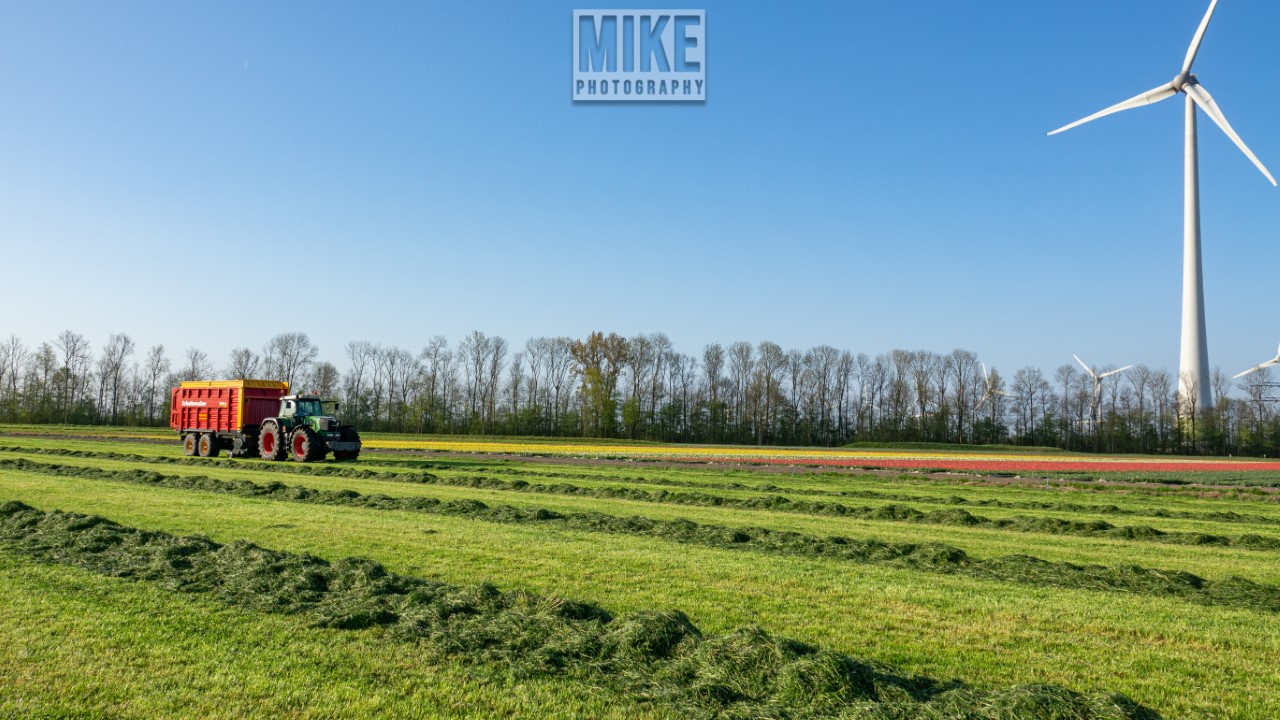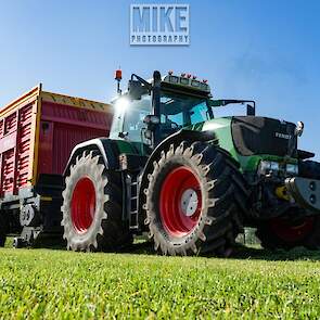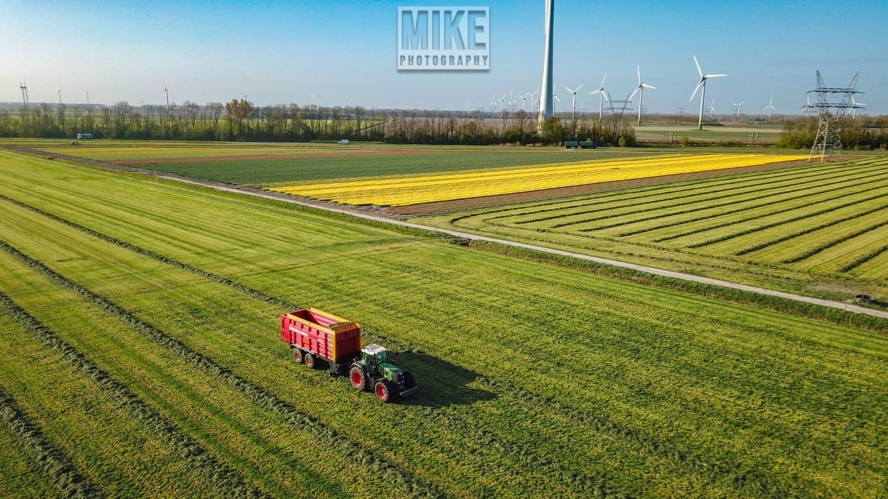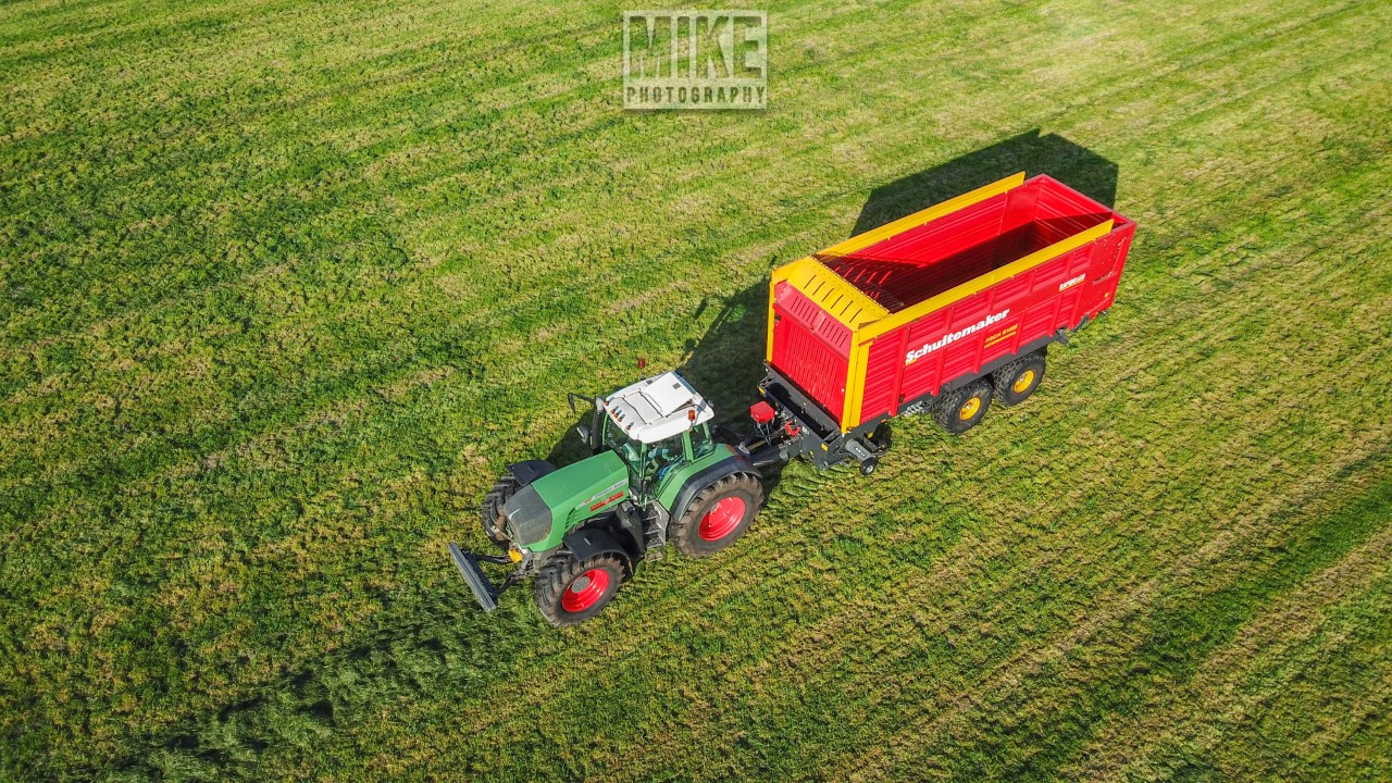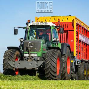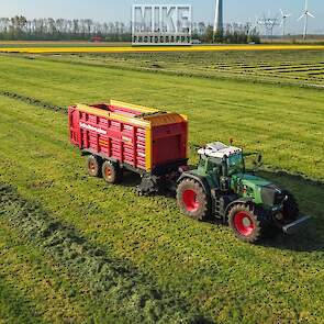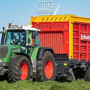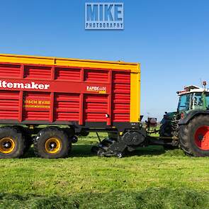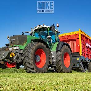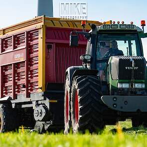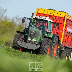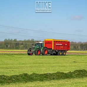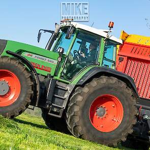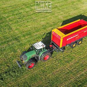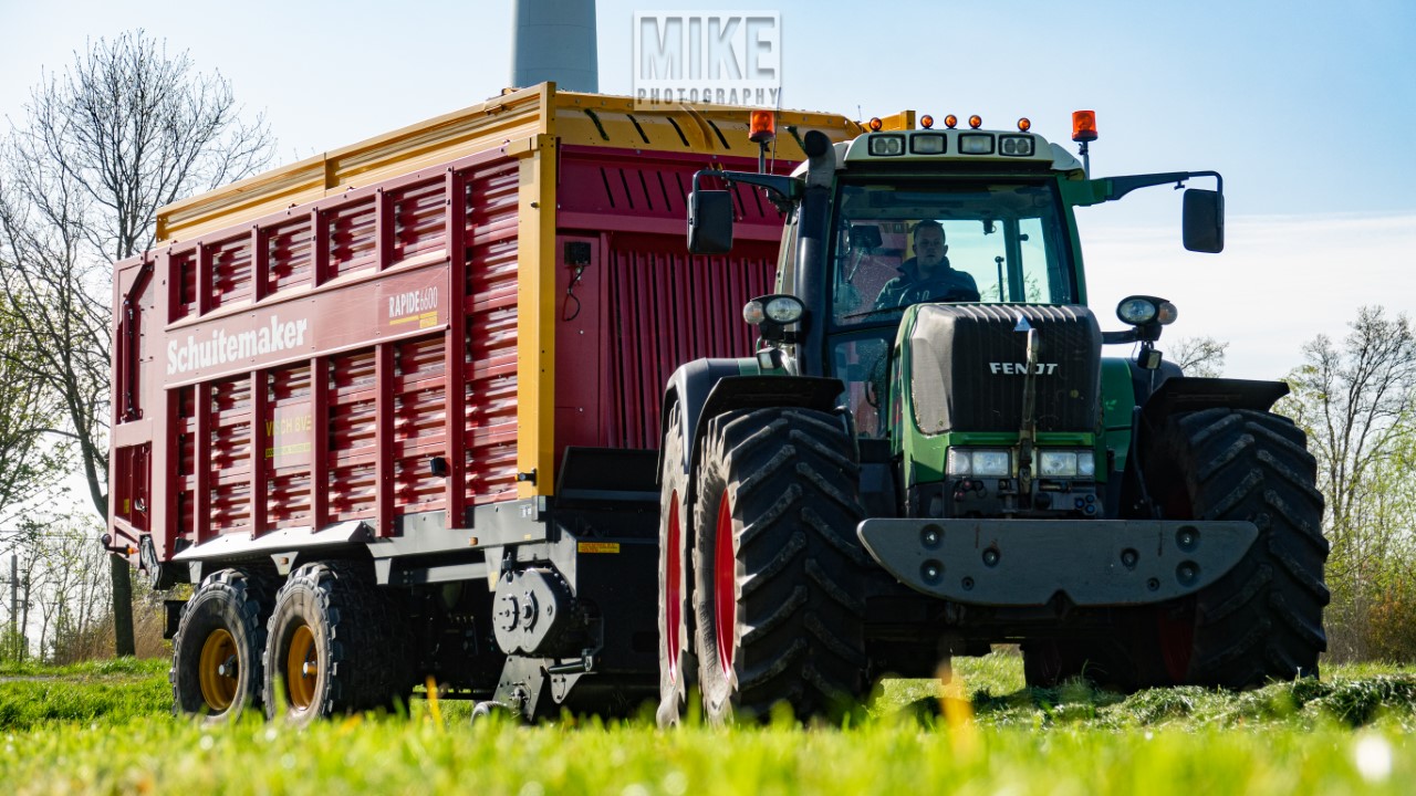 Fendt 920 Vario met Schuitemaker-opraapwagen al weer volop in het voorjaarsgras.