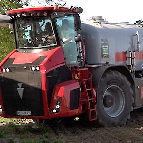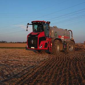 Firma Agrarservice Kühnen aan het bouwland bemesten met de Holmer Terra Variant 435 met een Horsch-schijveneg.