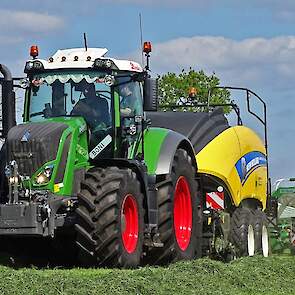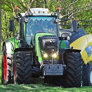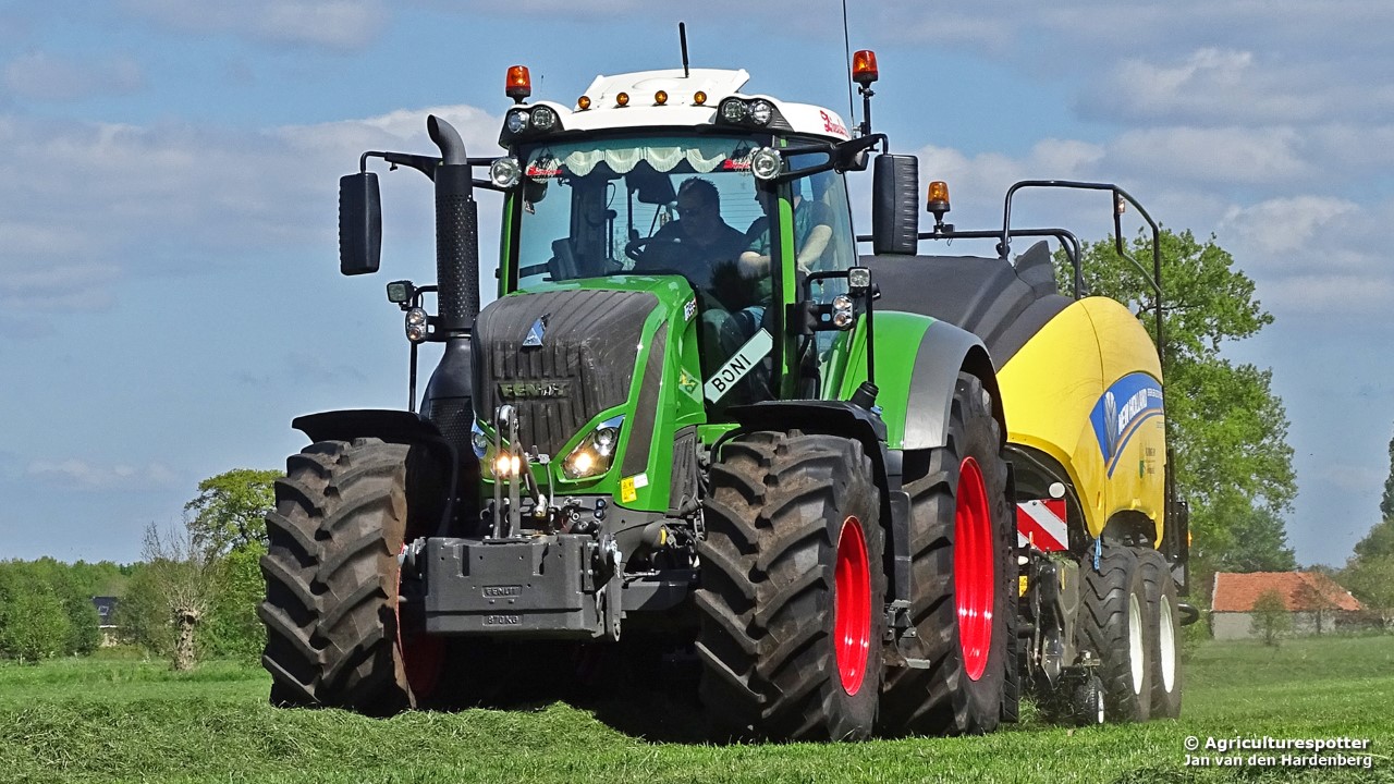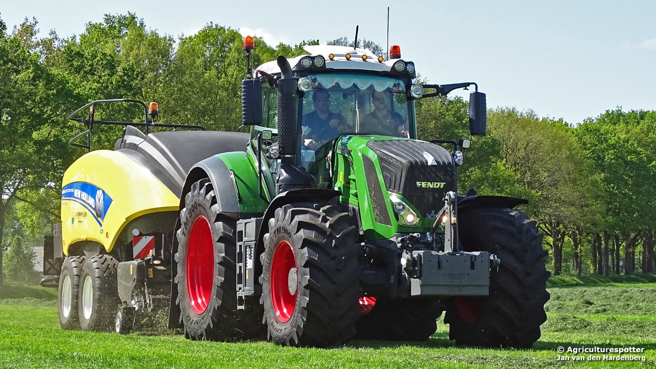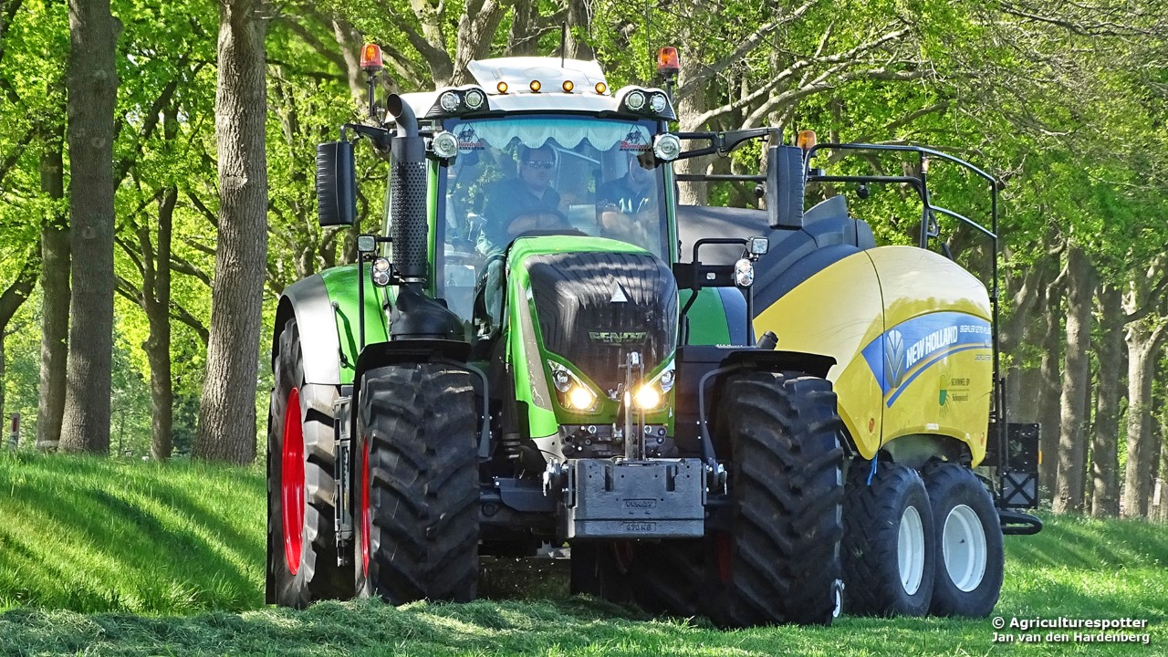 Fendt 828 Vario Nature Green en New Holland Bigbaler 1270 Plus-balenpers