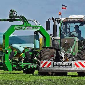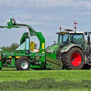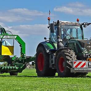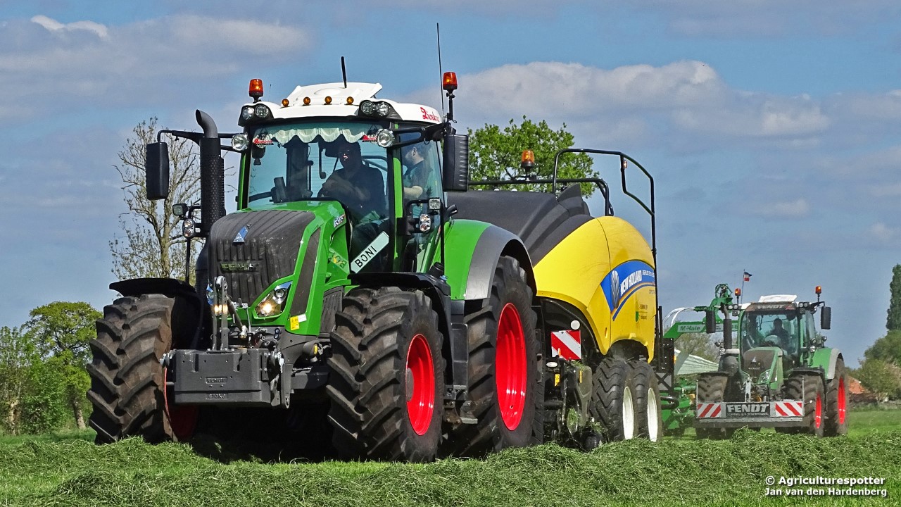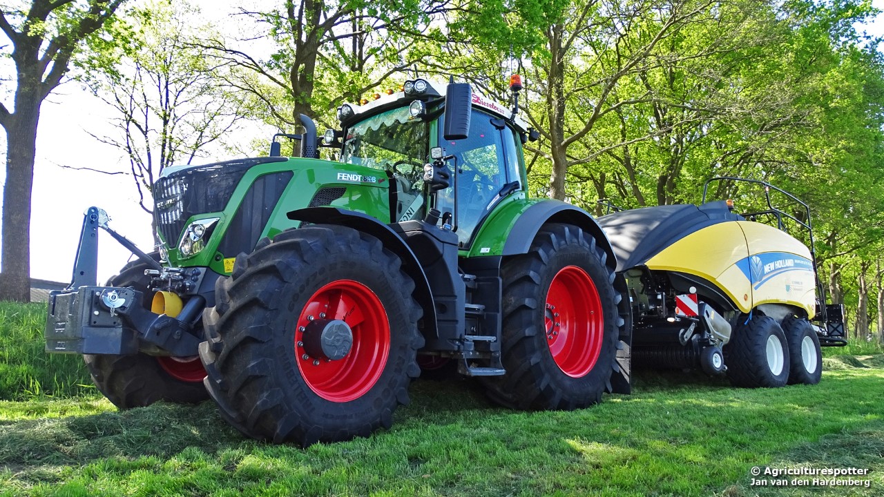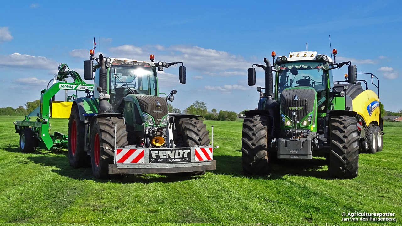 Balen persen en wikkelen in Ederveen (GD) met de nieuwe Fendt 828 Vario Nature Green en een New Holland Bigbaler 1270 Plus-balenpers en een Fendt 724 Vario met een McHale 998 High Speed-wikkelaar van loon&grondverzetbedrijf Schimmel BV.