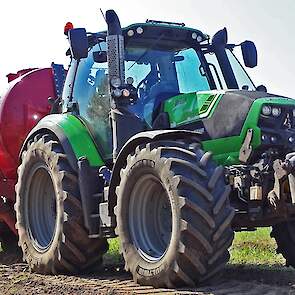 Bouwland bemesten met een Deutz-Fahr Agrotron 6190 TTV Warrior en een Schuitemaker Robusta van loon- en verhuurbedrijf van den Brink.