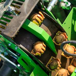 Dit biedt de mogelijkheid tot rijonafhankelijke pootafstand. Dus dichter poten in de spuitpaden, maar ook de aansluitende rijen.