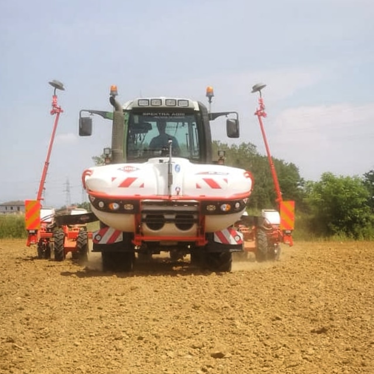 Ondanks alle beperkingen en maatregelen omtrent corona staat de natuur niet stil. De voedselvoorziening voor mens en dier kent geen stop. De landbouw gaat altijd door. Voorjaarswerkzaamheden staan op stapel, het veld ligt klaar om bieten in te zaaien, mais en andere gewassen komen er snel achter aan. Bij veel (pneumatische) machines om in te zaaien worden fronttanks gebruikt die via een slang naar de injector achterop lopen. Ongeacht het merk of soort poot-, zaai- en/ of spitmachine hangt er veel gewicht op de achteras, zeker als ze een 6 meter brede werkgang hebben. De volle fronttank voorop compenseert dit gewicht, maar naar mate de tank leger raakt ontstaat er een andere gewichtsverdeling, zeker bij aardappels poten. Keren op de kopakker wordt al lastiger, op straat rijden is eigenlijk taboe. Maar ook tijdens het zaaien of spitten is de voorasdruk van groot belang om op gps te werken. Er treedt meer slip op, de diepteregeling maakt overuren, onregelmatige rijsnelheid kan het gevolg zijn en het zaaibeeld vertoont oneffenheden. Allemaal nadelen die bij verschillende trekkermerken en types met zaaicombinatie optreden. Water in de voorbanden, zeggen veel loonwerkers en akkerbouwers, of zelf even wat gewichten met sjorbanden voor aan de tank knopen. Twijfelachtige noodmaatregelen die leiden tot onvoorziene risicos en kosten.