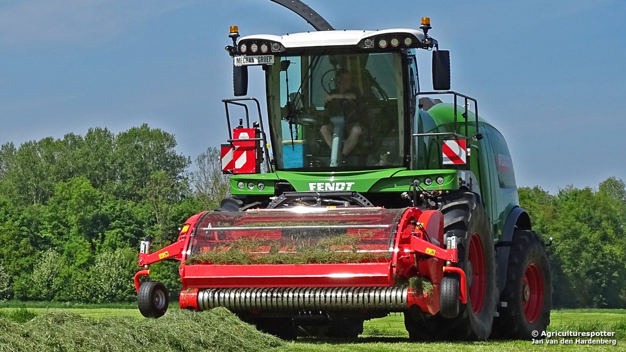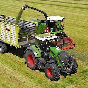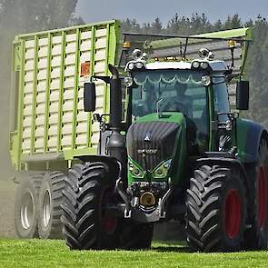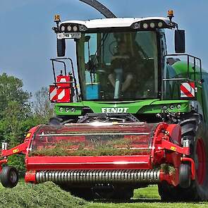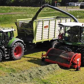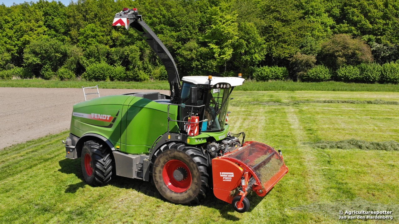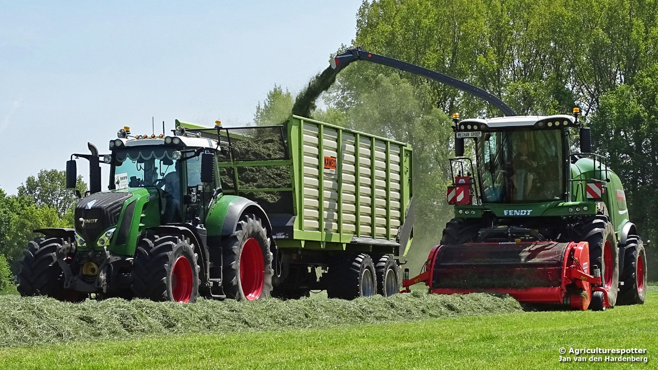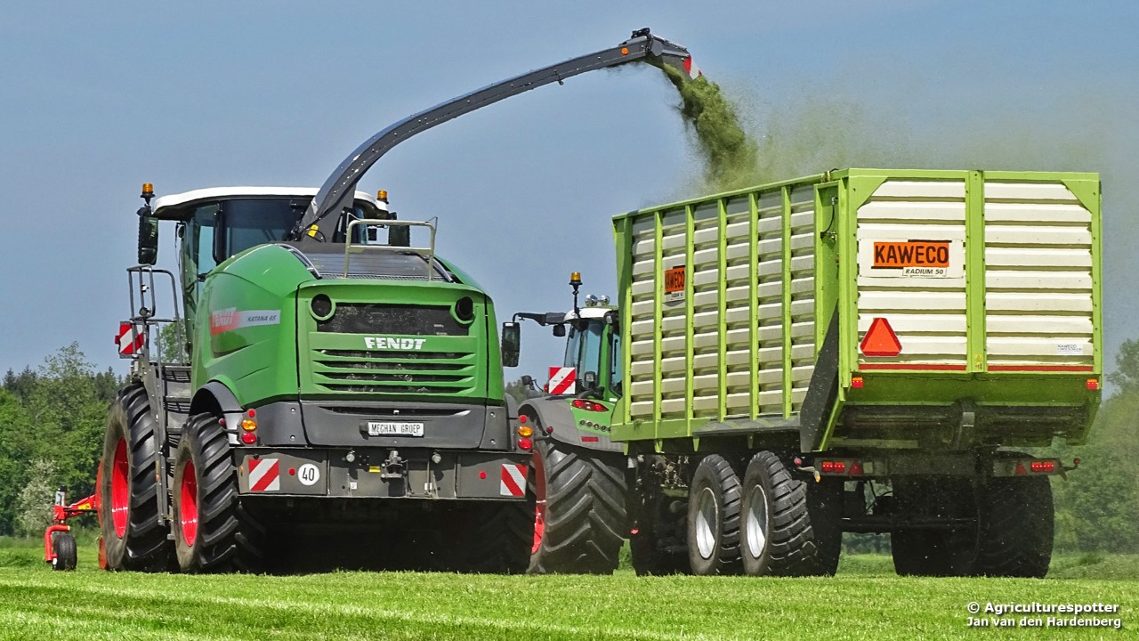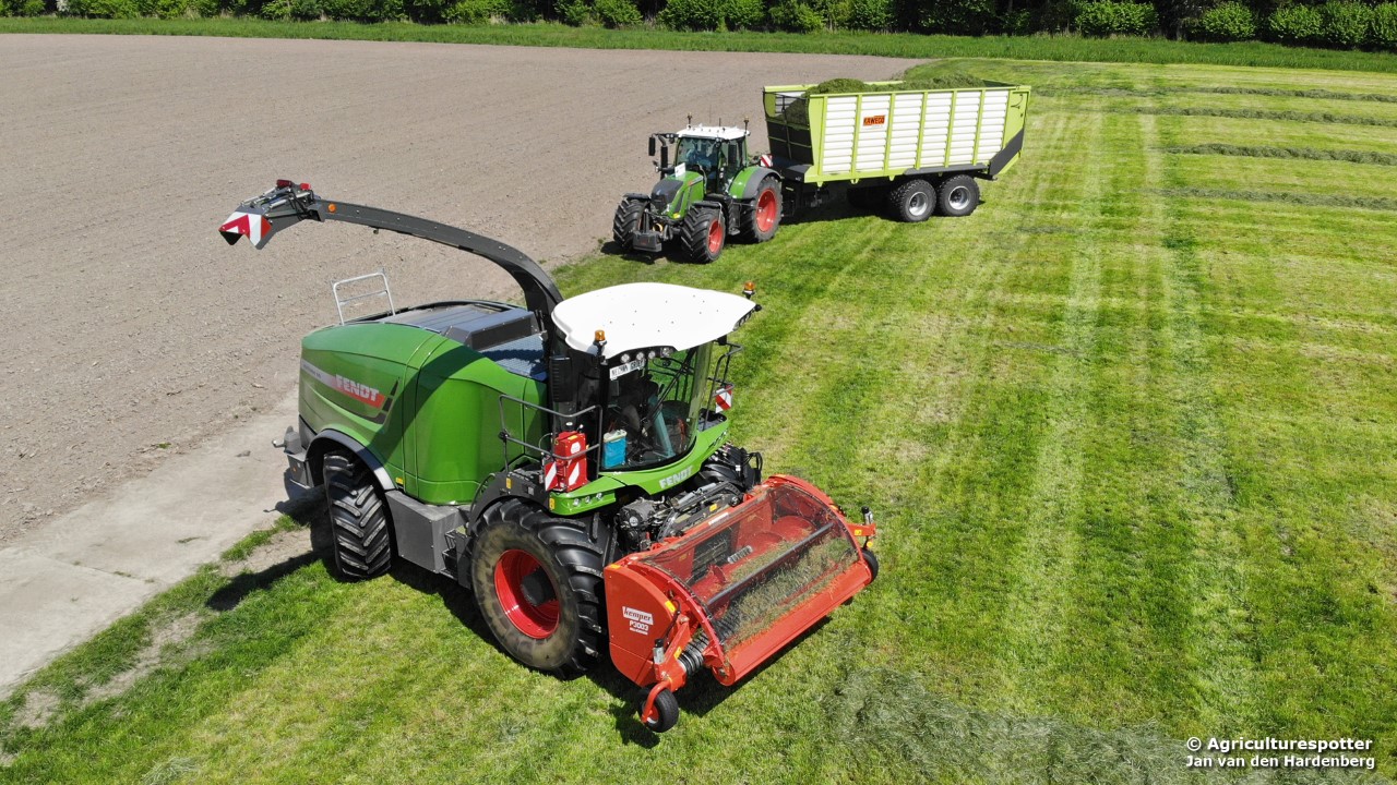 Gras hakselen door BMWW Agriservice uit Nijkerkerveen met een Fendt Katana 65, een Fendt 828 en een 720 Vario met Kaweco Radium-silagewagens.