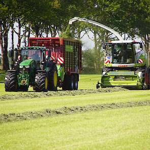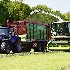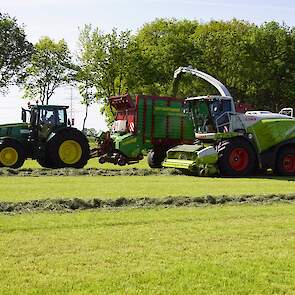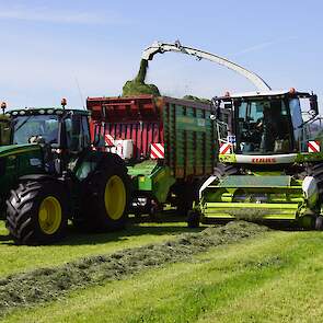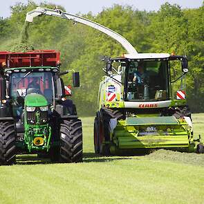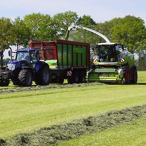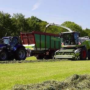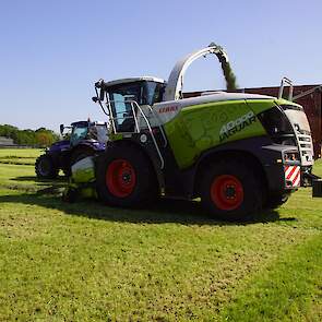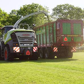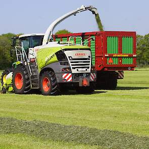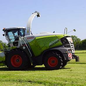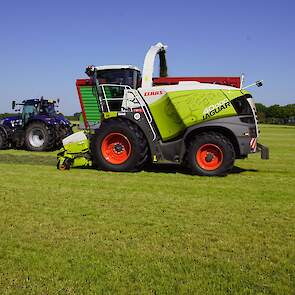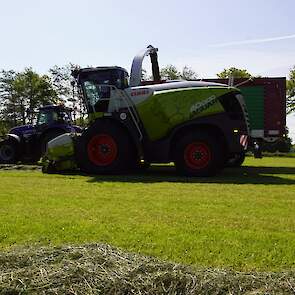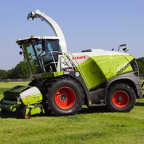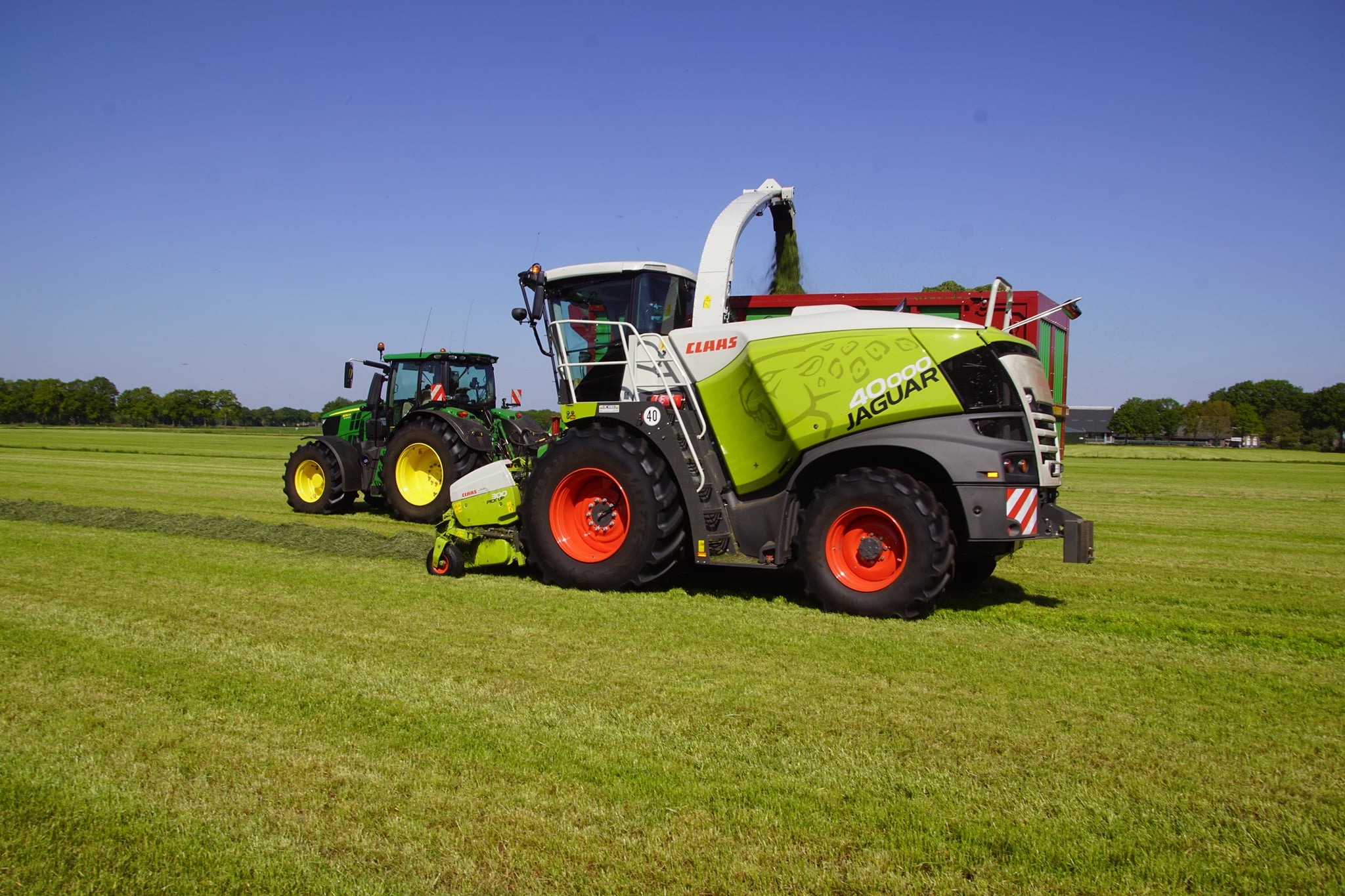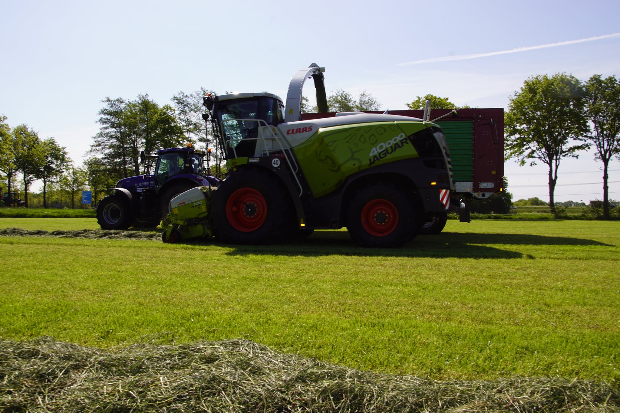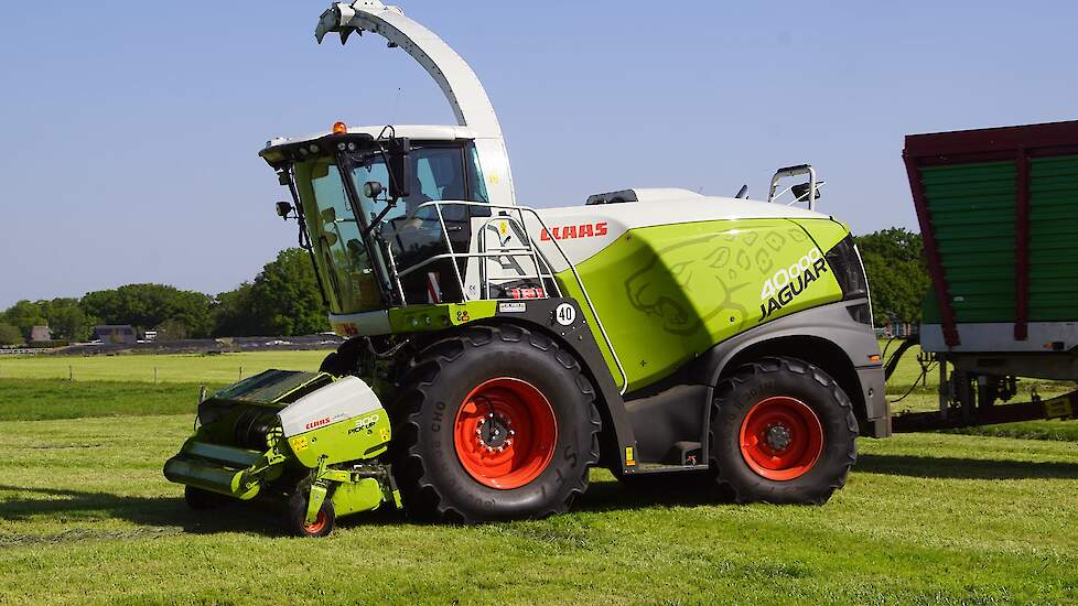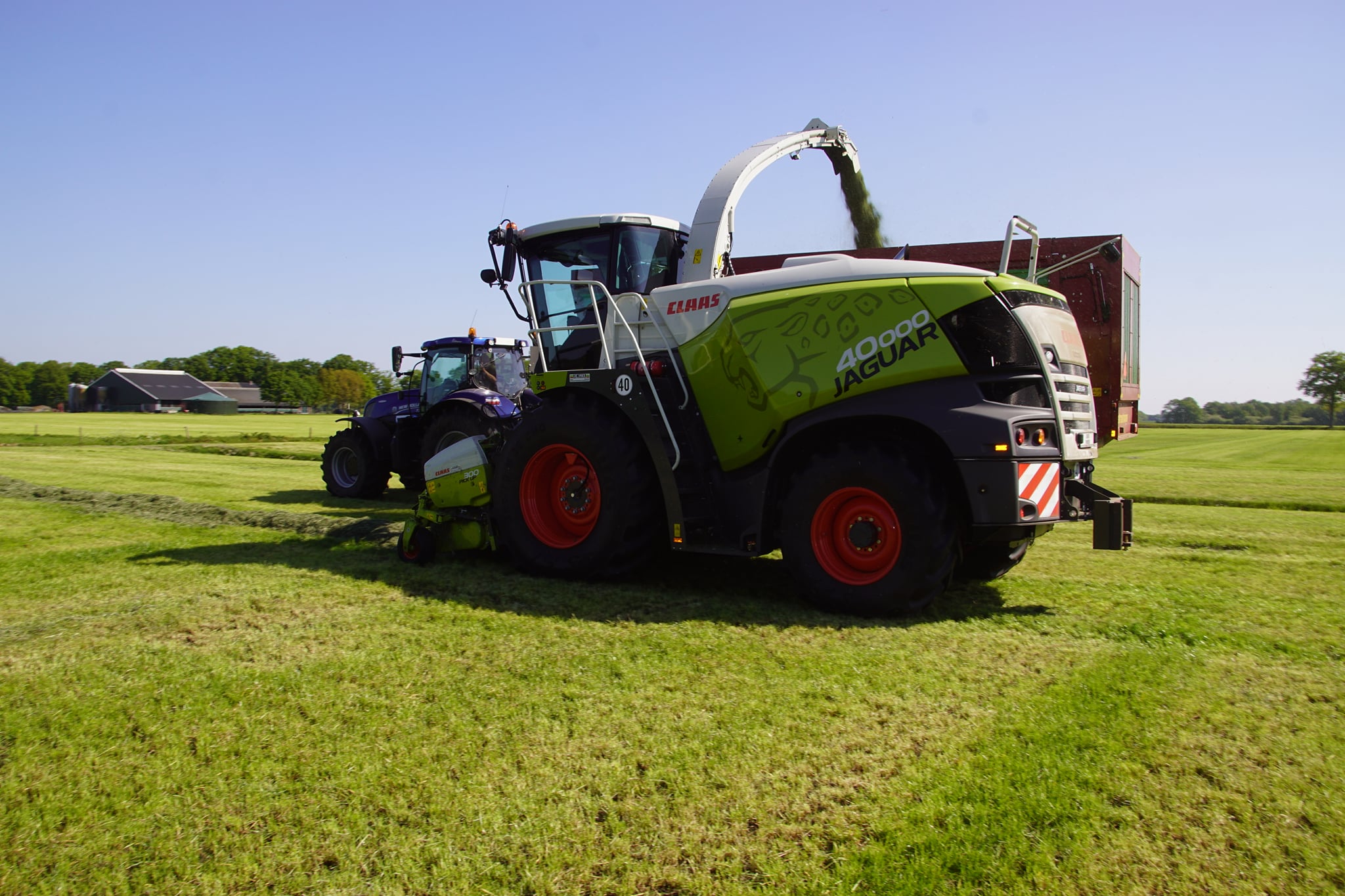 Loonbedrijf Gerrits uit Zwinderen (DR) aan het gras hakselen met de Claas Jaguar 40.000.