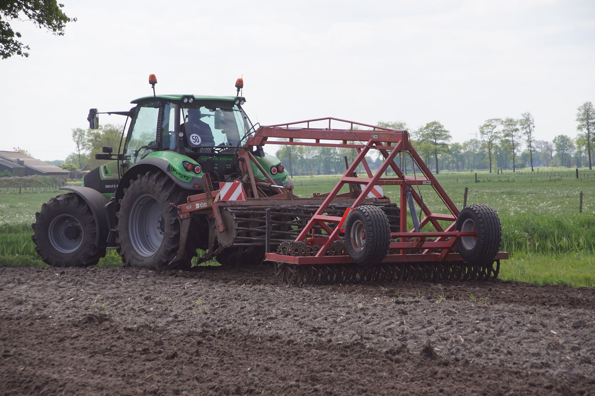 Een Evers-vastetand met daarachter een vorenpakker aan het land klaarmaken voor de mais.