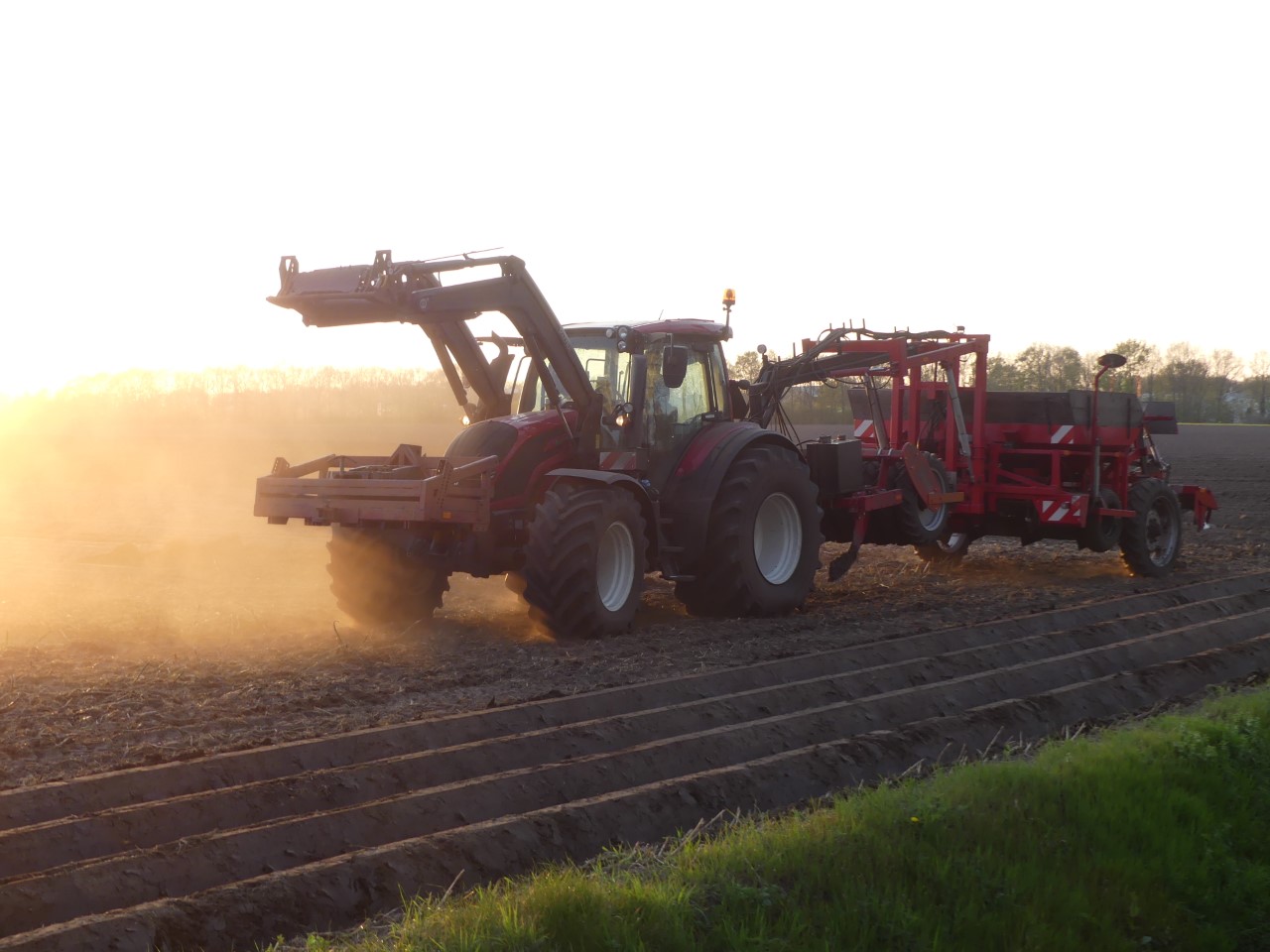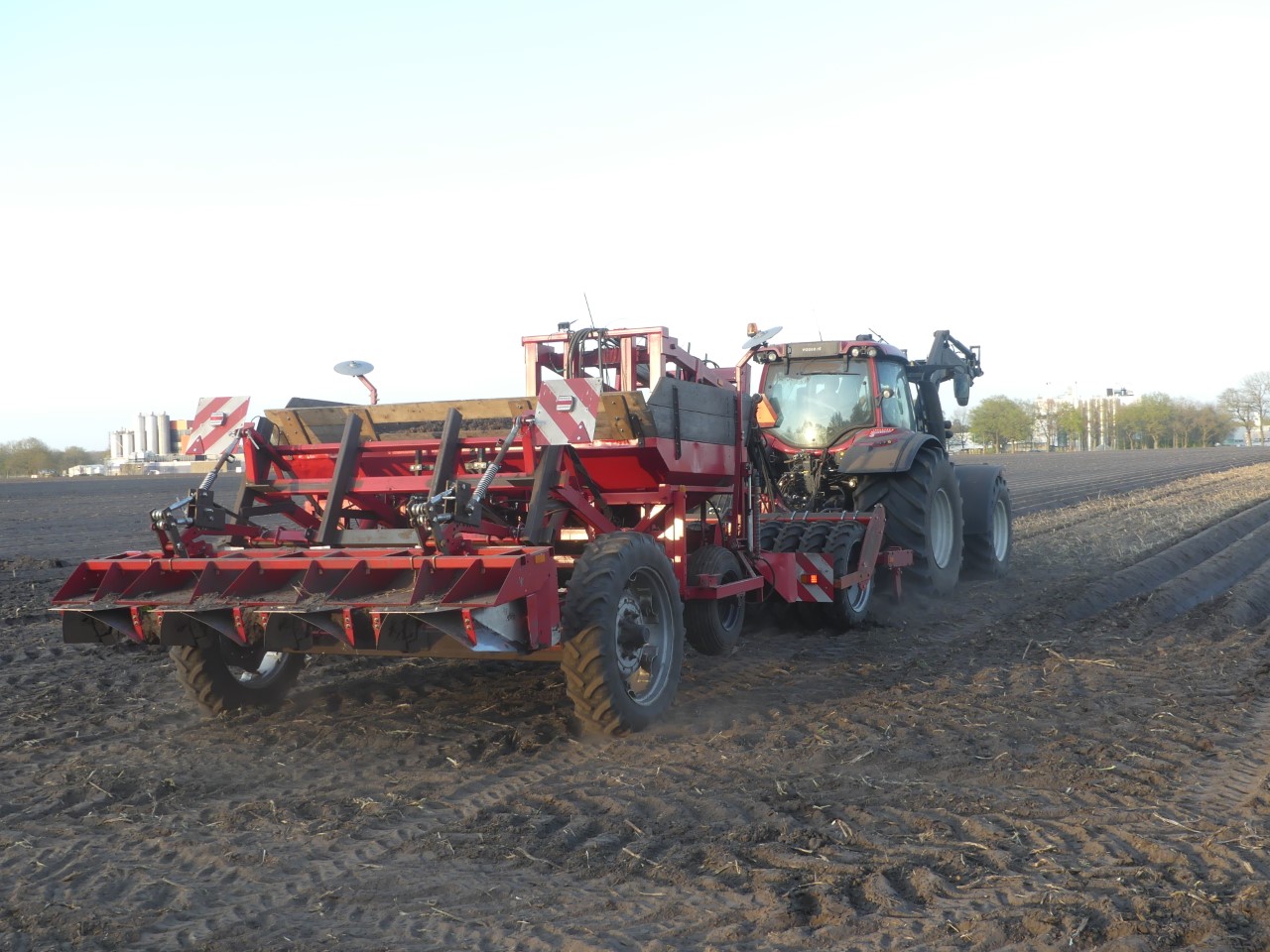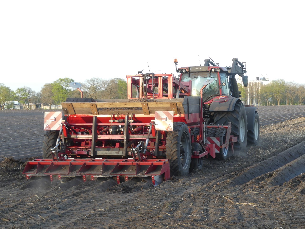 Akkerbouwer W. Drenthen uit Erica (DR) bouwde zijn eigen pootcombinatie. Hij maakte van zijn Structural-pootmachine een getrokken versie en bevestigde daar de aanaardkappen aan. Daarna voorzag hij zijn vaste tand van een bandenpakkerrol die over de gehele breedte de grond aandrukt. De akkerbouwer kan op deze manier met brede banden onder de Valtra N134 Active Redline poten en kan in een werkgang drie werkzaamheden uitvoeren. Ook lukt het hem nog om de rijen er mooi strak en recht op te krijgen zonder gebruik van gps. Al met al een hele prestatie om zo'n combinatie zelf te bouwen.
