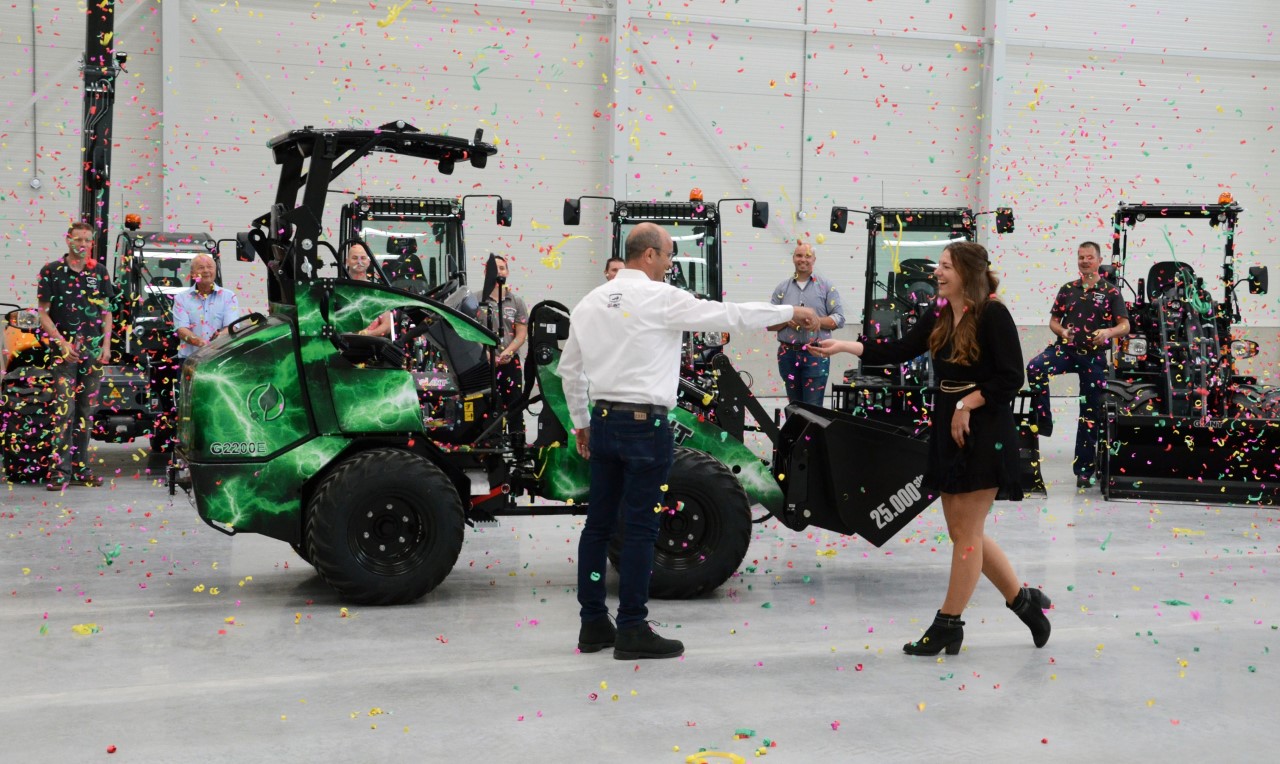De vijfentwintigduizendste machine is een elektrische G2200E X-TRA en werd afgelopen week geproduceerd in Oisterwijk. Dat het een elektrische machine betrof is niet vreemd aangezien de vraag naar elektrische wielladers alleen maar toeneemt. De G2200E X-TRA is een speciale editie met een unieke kleurstelling en werd overhandigd aan E-Den Hartog. Een nieuwe onderneming van Giant-dealer Den Hartog Bouwmateriaal, welke speciaal gericht is op de verkoop en het onderhoud van elektrische machines.