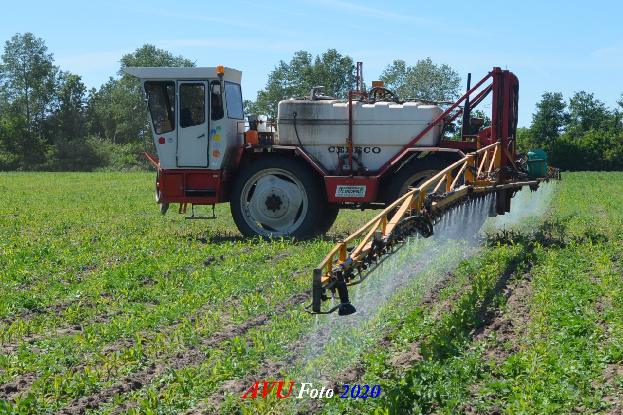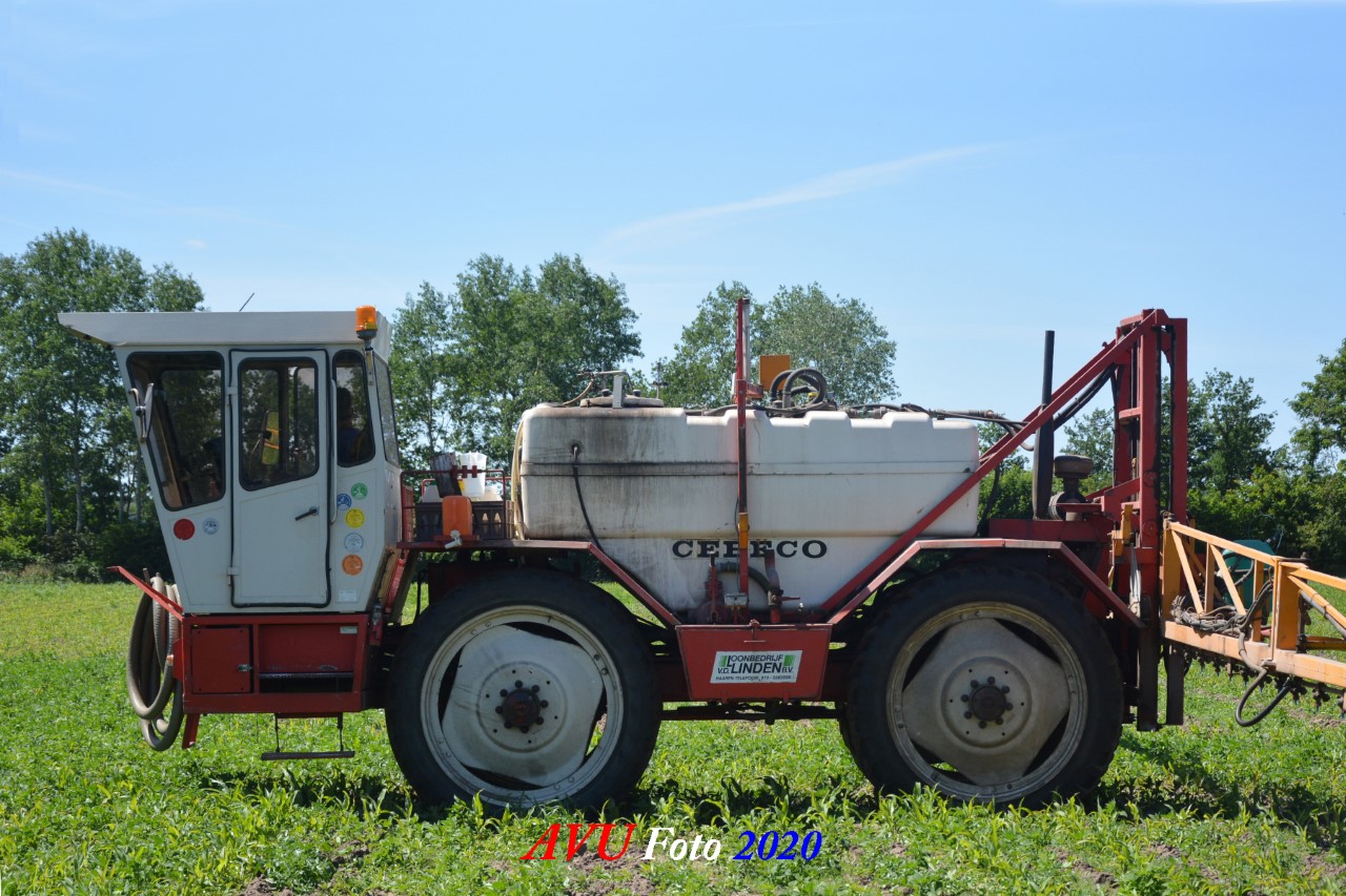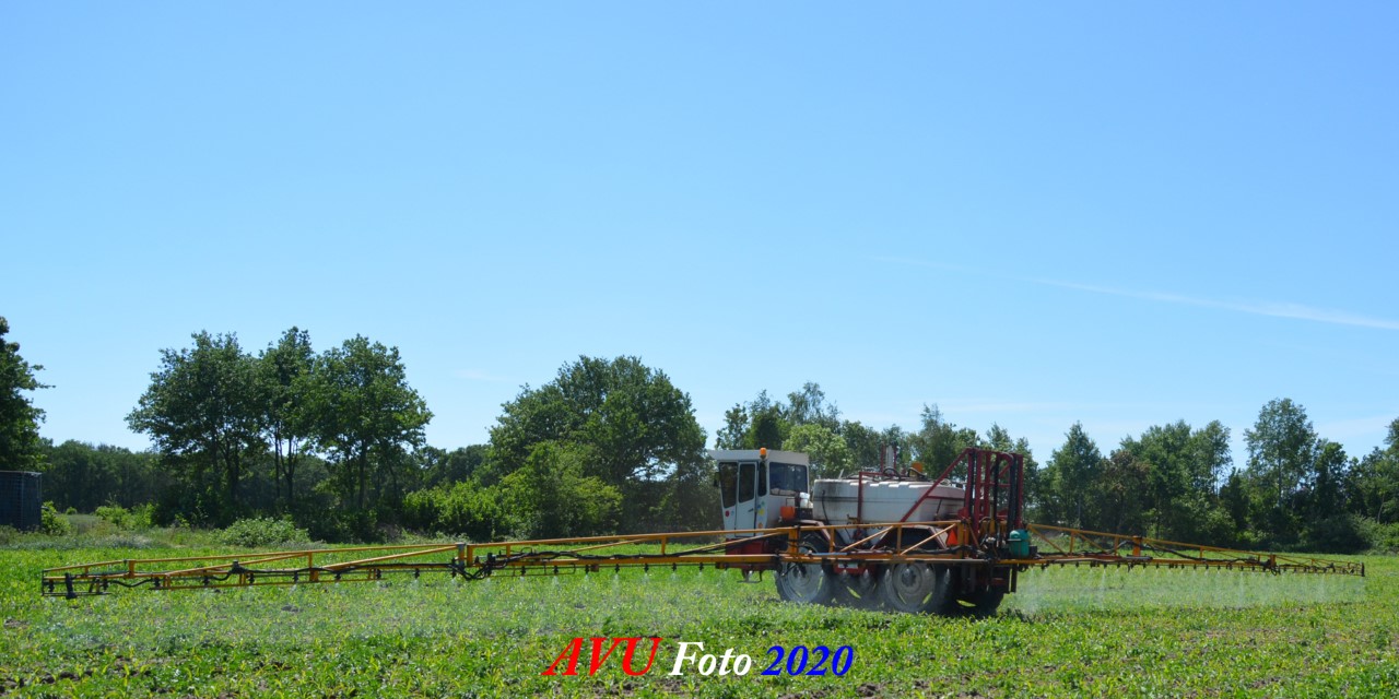 Ik zag hem voorbijkomen en heb hem gevolgd. Maisland spuiten, wat volgens mij wel nodig was. Tien hectare is een mooi perceel voor deze meer dan 20 jaar oude Cebeco zelfrijdende spuit, welke aan alle eisen voldeed. Het was een fluitje van een cent, zo snel als dit gepiept was.