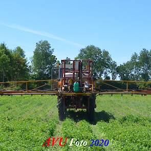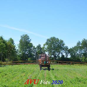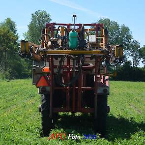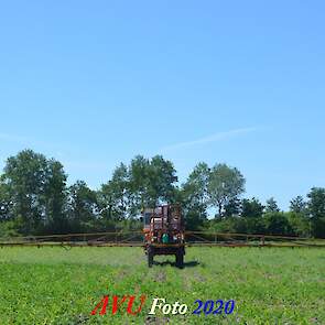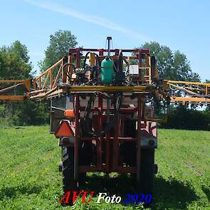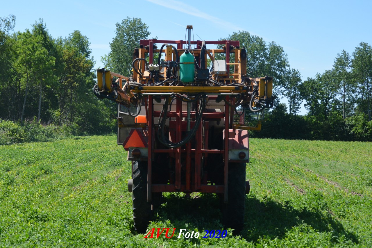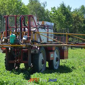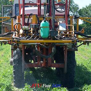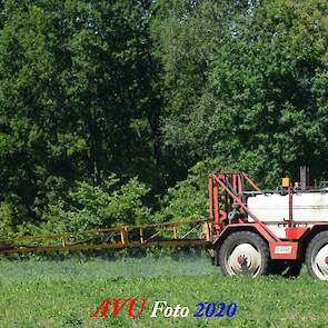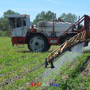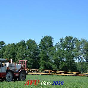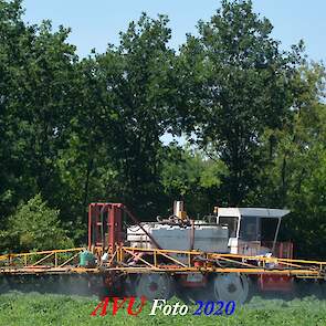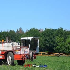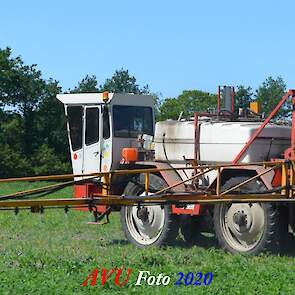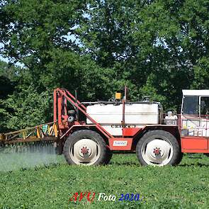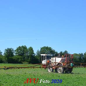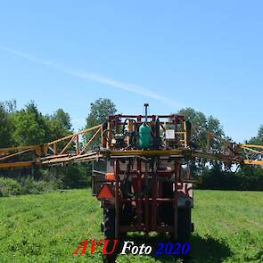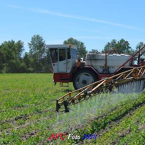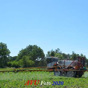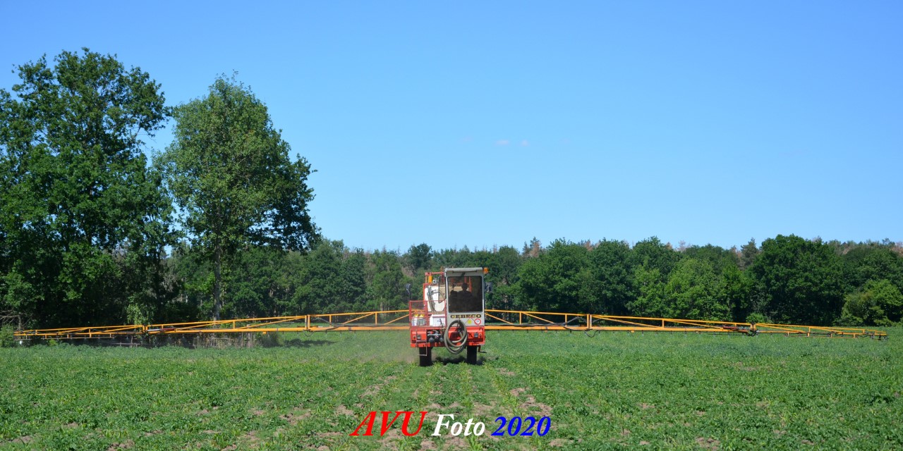 Ik zag hem voorbijkomen en heb hem gevolgd. Maisland spuiten, wat volgens mij wel nodig was. Tien hectare is een mooi perceel voor deze meer dan 20 jaar oude Cebeco zelfrijdende spuit, welke aan alle eisen voldeed. Het was een fluitje van een cent, zo snel als dit gepiept was.