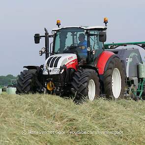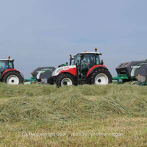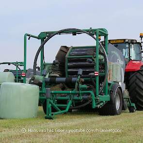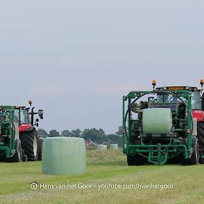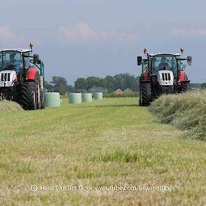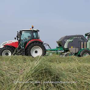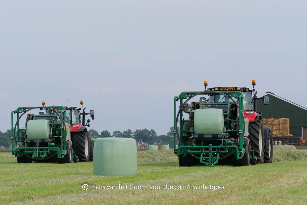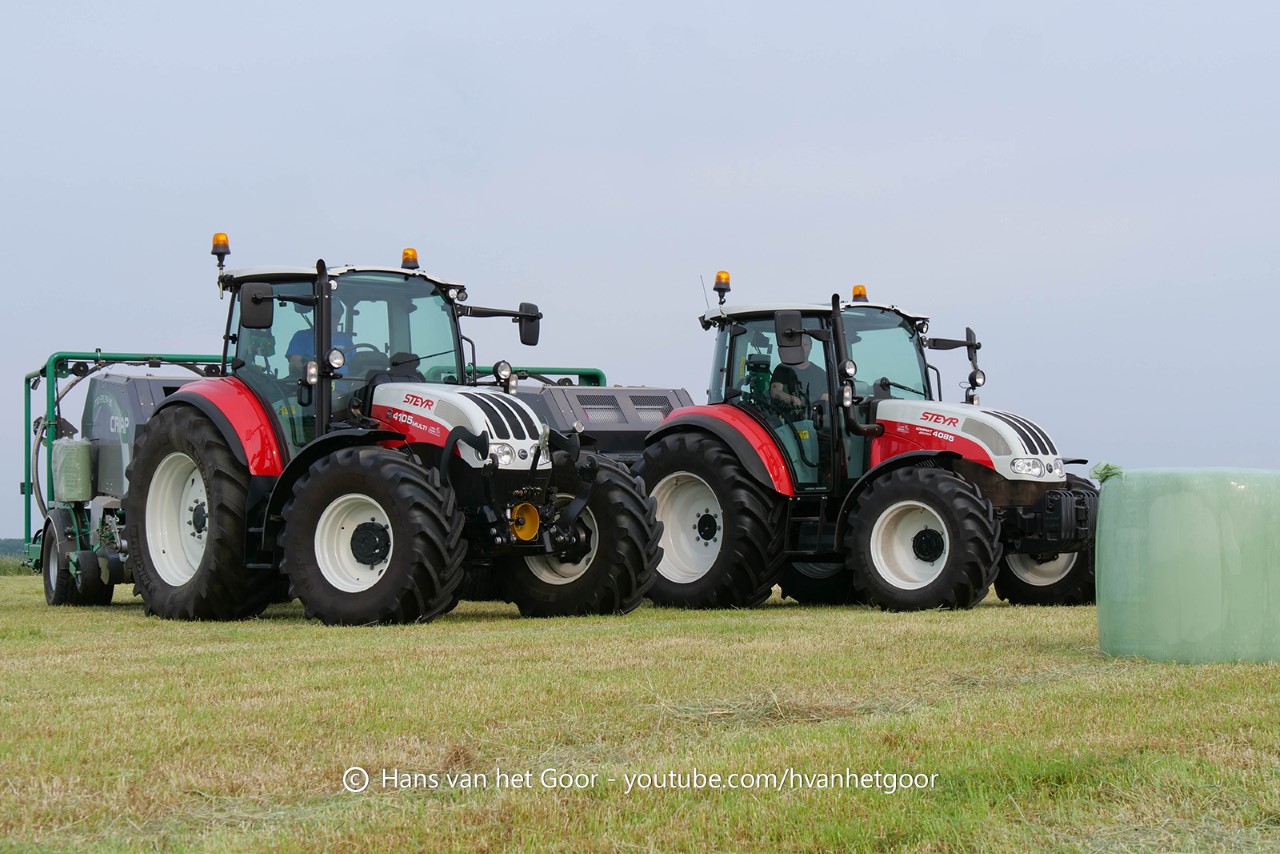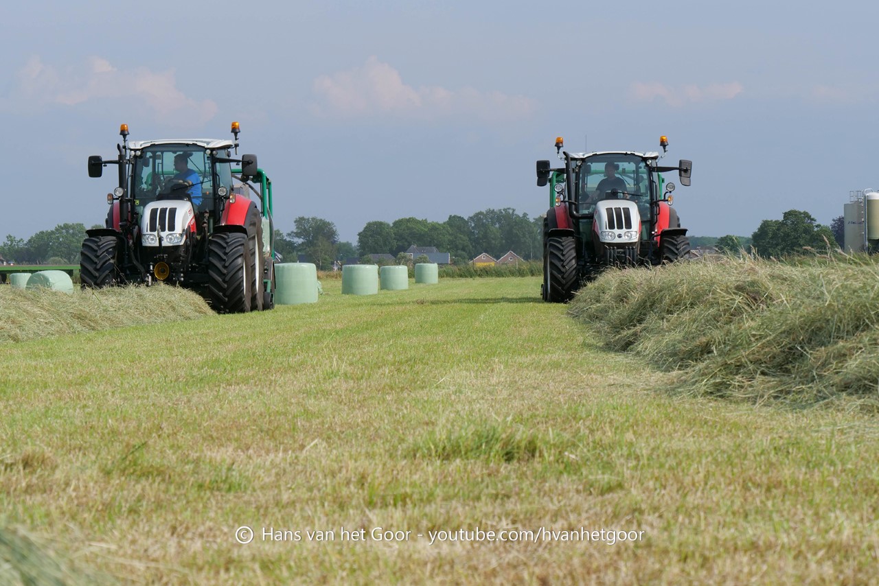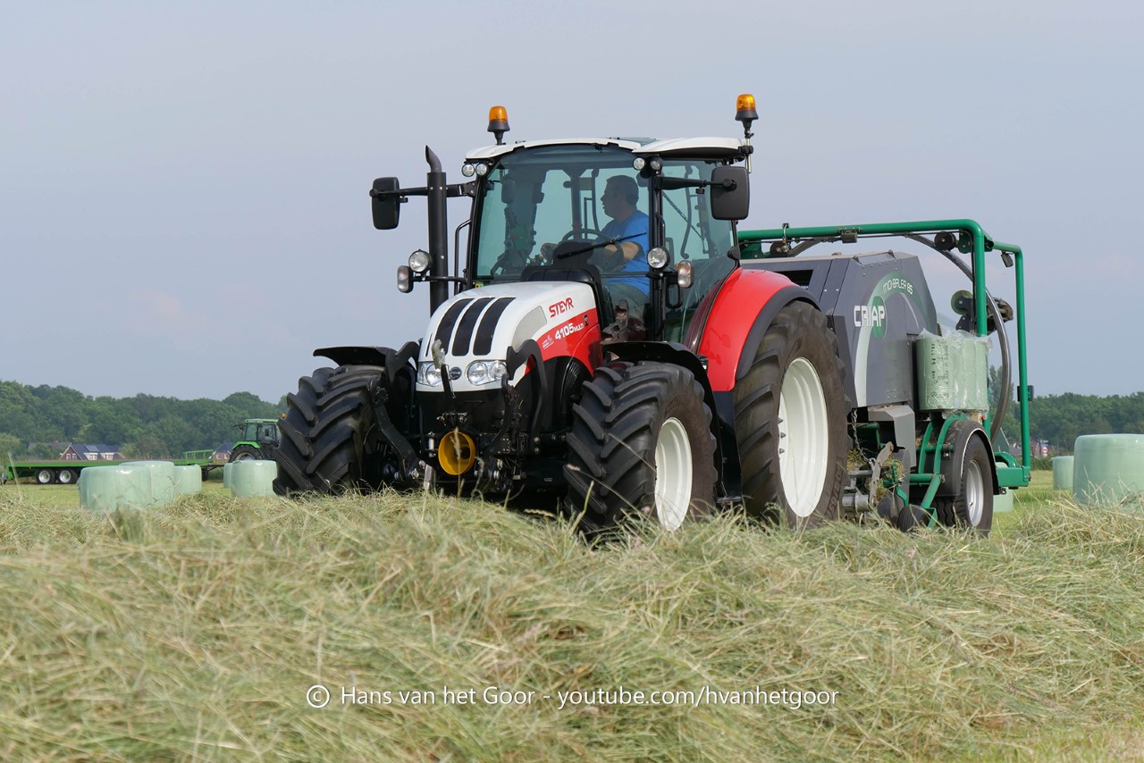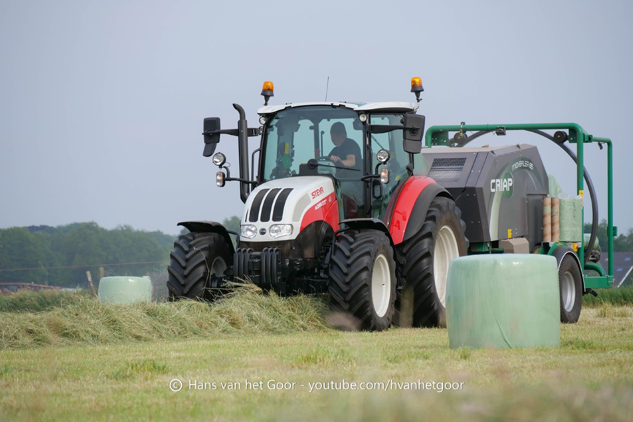 Balen persen, wikkelen en verzamelen door Gebr. Van der Wolde met twee maal Steyr en Criap