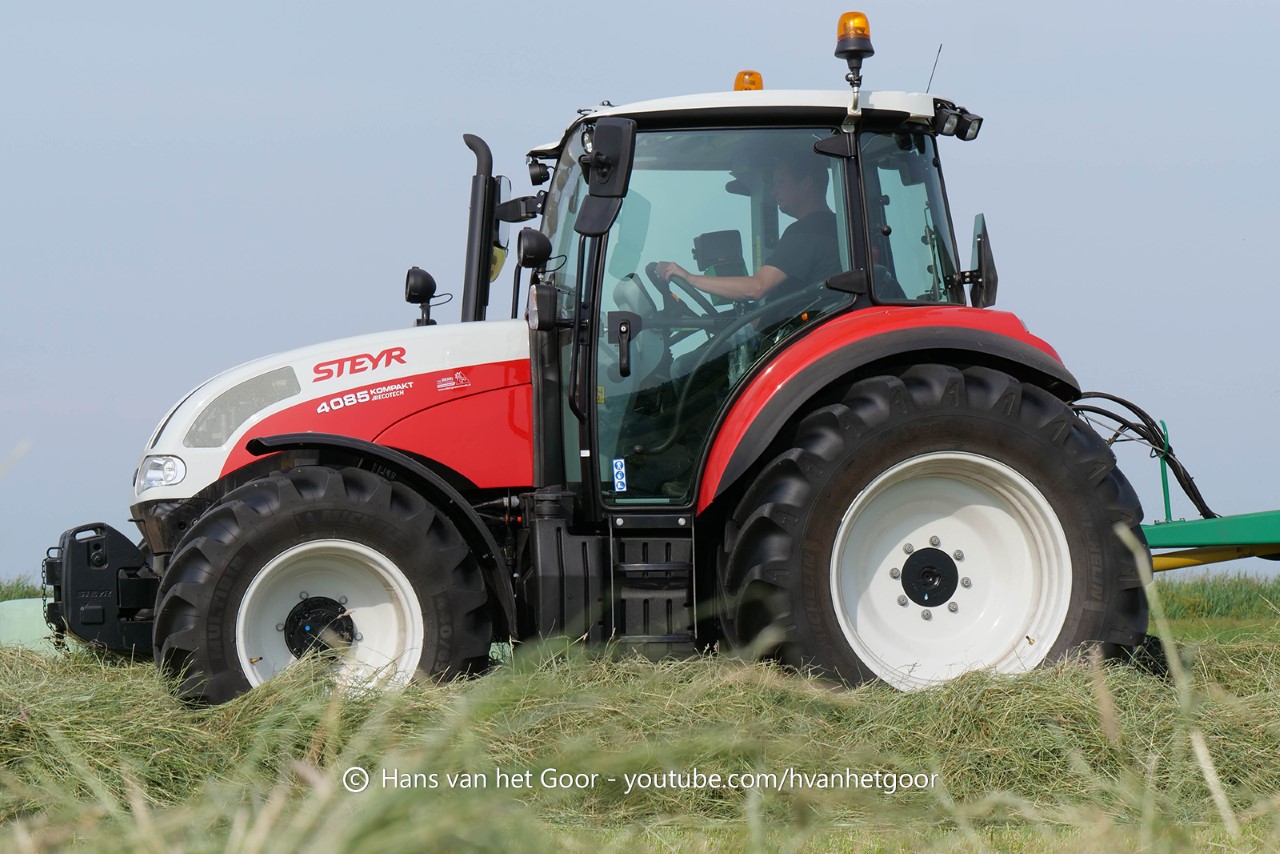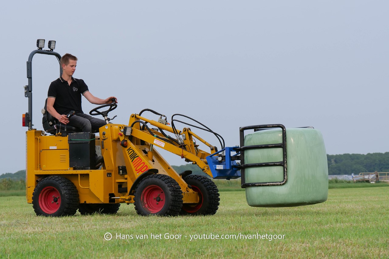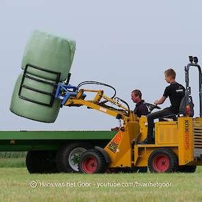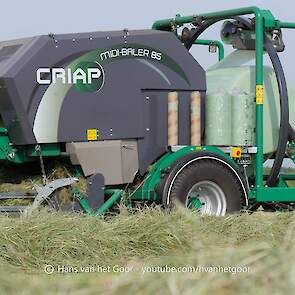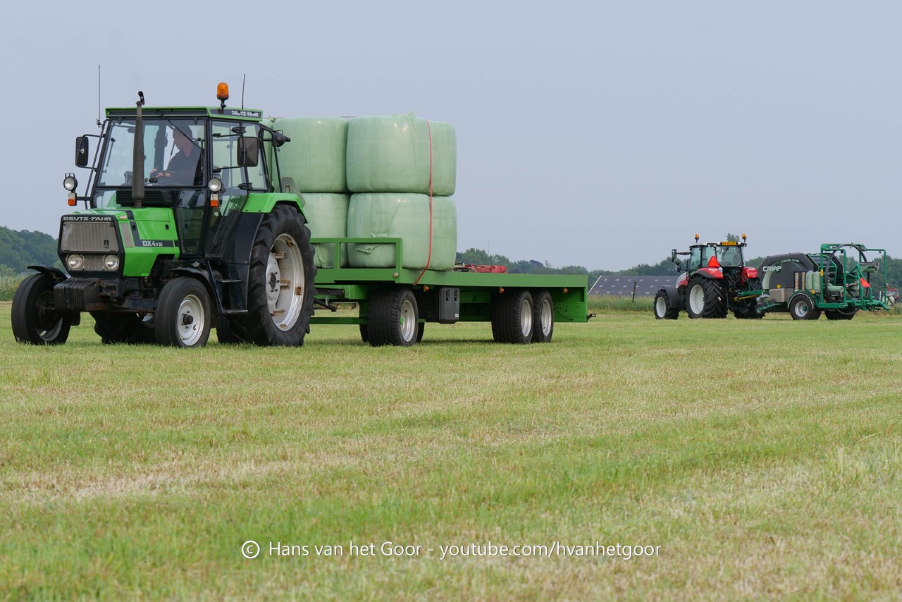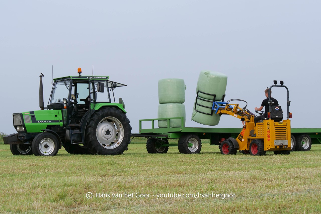 Hooibalen persen, wikkelen en verzamelen met twee Steyr-trekkers met een Criap midi-baler 85-rondebalenpers en een Knikmops-minishovel. We zien hier de gebroeders Van der Wolde uit Oldebroek in actie. Het transport wordt gedaan met een Deutz-Fahr DX 4.11 SE.