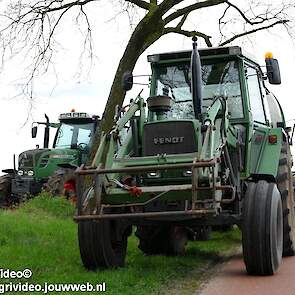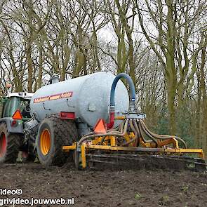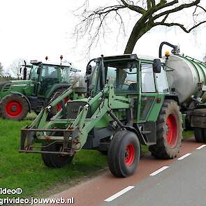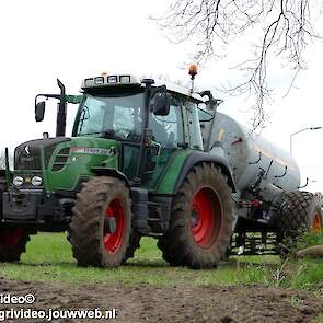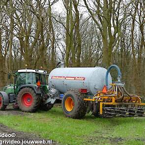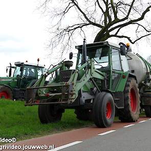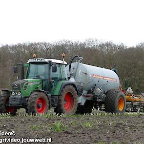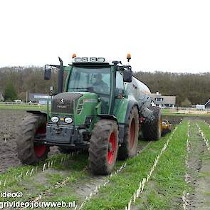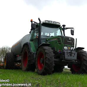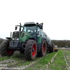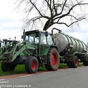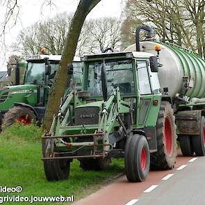 Kalverhouderij van den Hardenberg uit Elspeet aan het bouwland bemesten met een Fendt 310 Vario TMS met Schuitemaker Perfecta-mesttank en een Fendt Farmer 306LS Turbomatik met mesttransporttank.