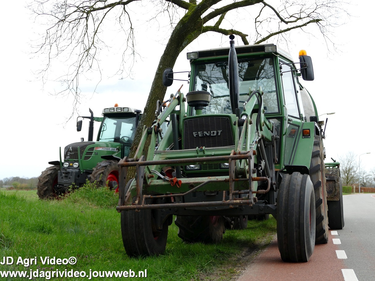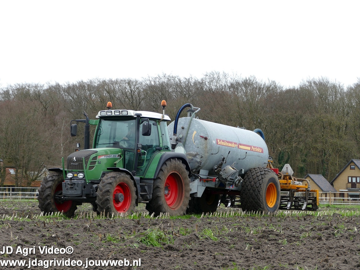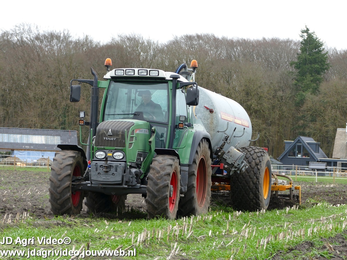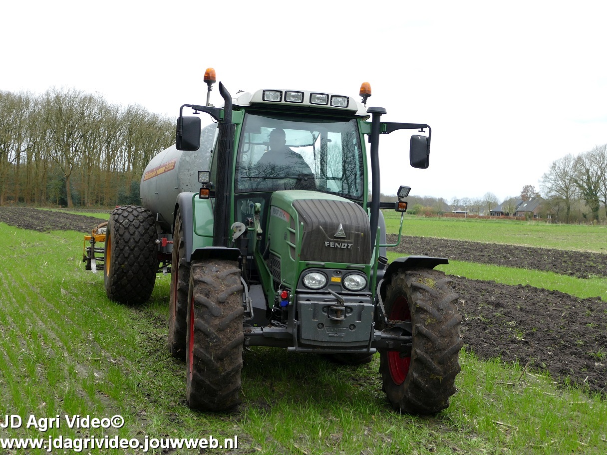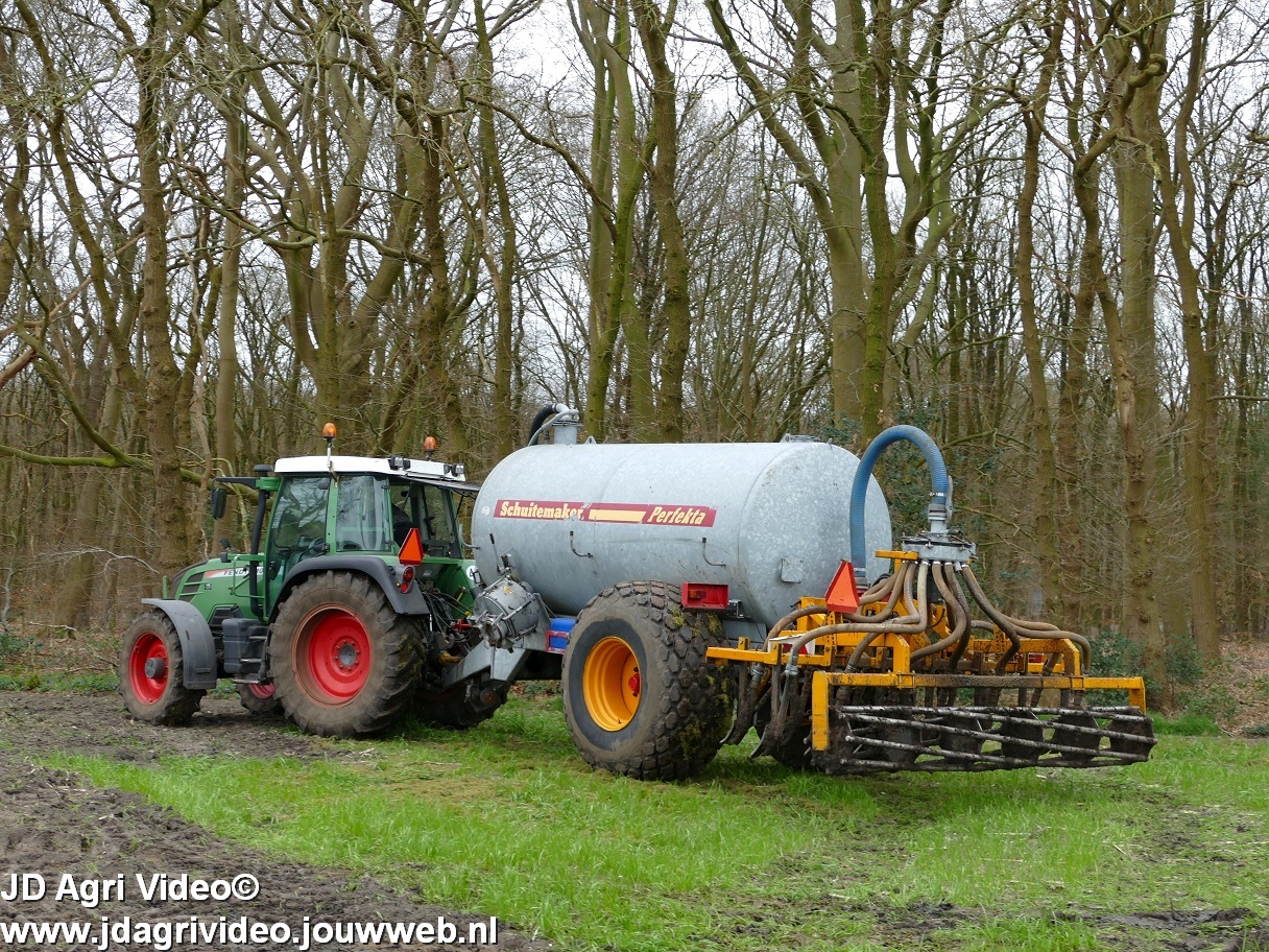 Kalverhouderij van den Hardenberg uit Elspeet aan het bouwland bemesten met een Fendt 310 Vario TMS met Schuitemaker Perfecta-mesttank en een Fendt Farmer 306LS Turbomatik met mesttransporttank.