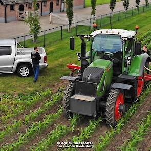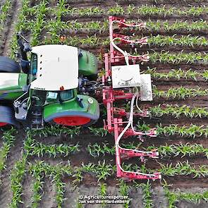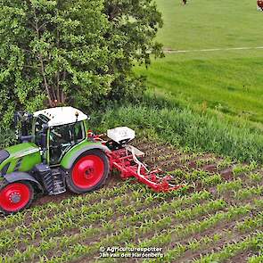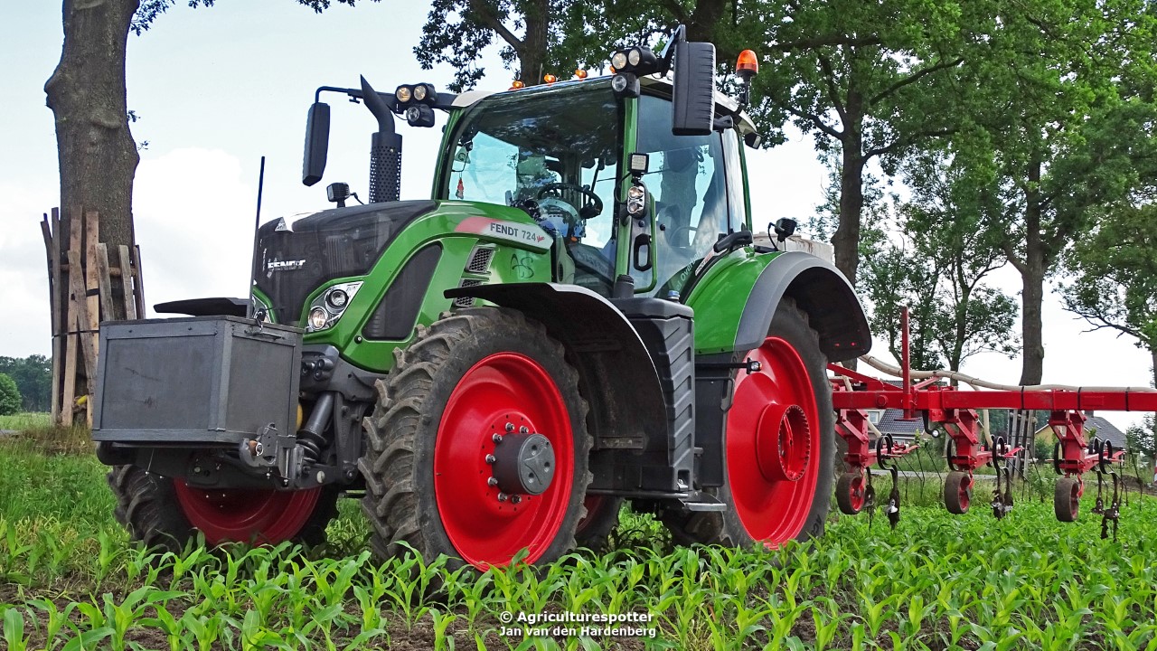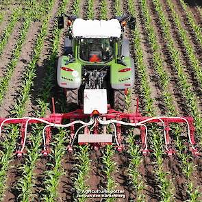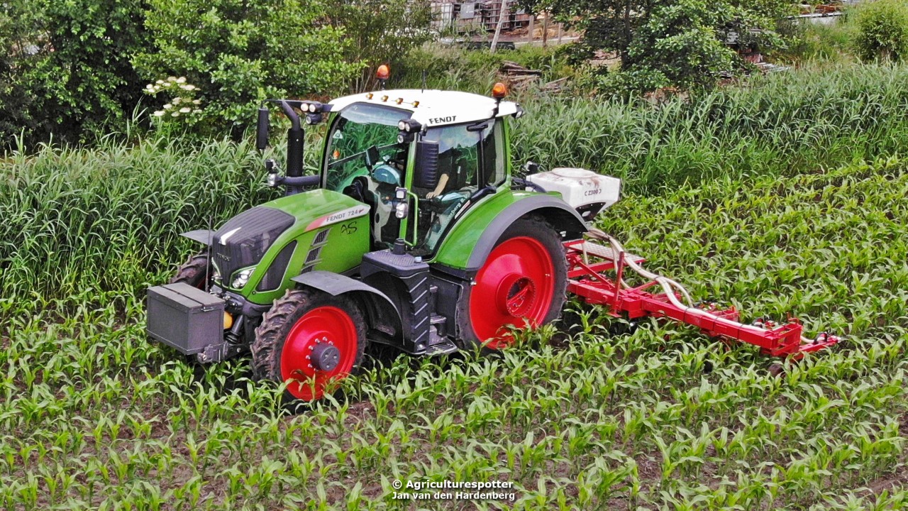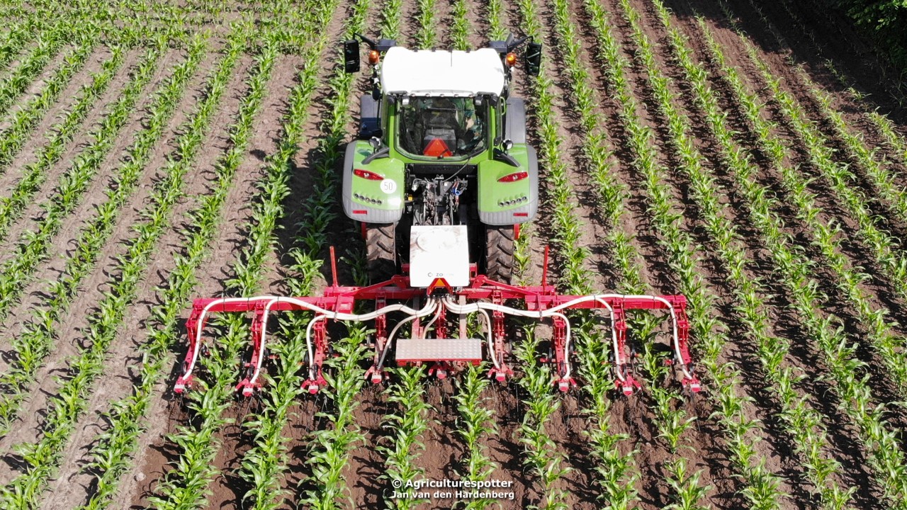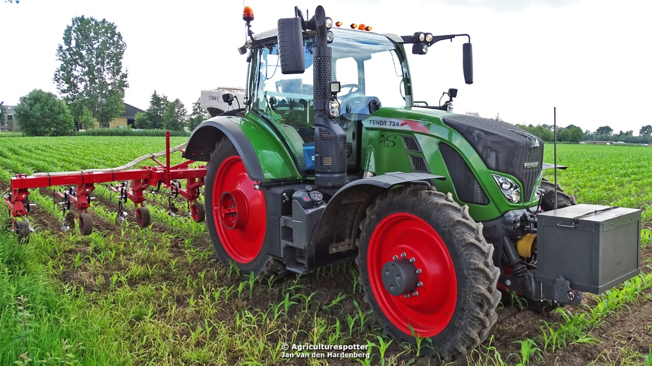 Loonbedrijf Schimmel Overberg BV is hier met een Fendt 724 Vario aan het mais schoffelen en vanggewas onderzaaien.