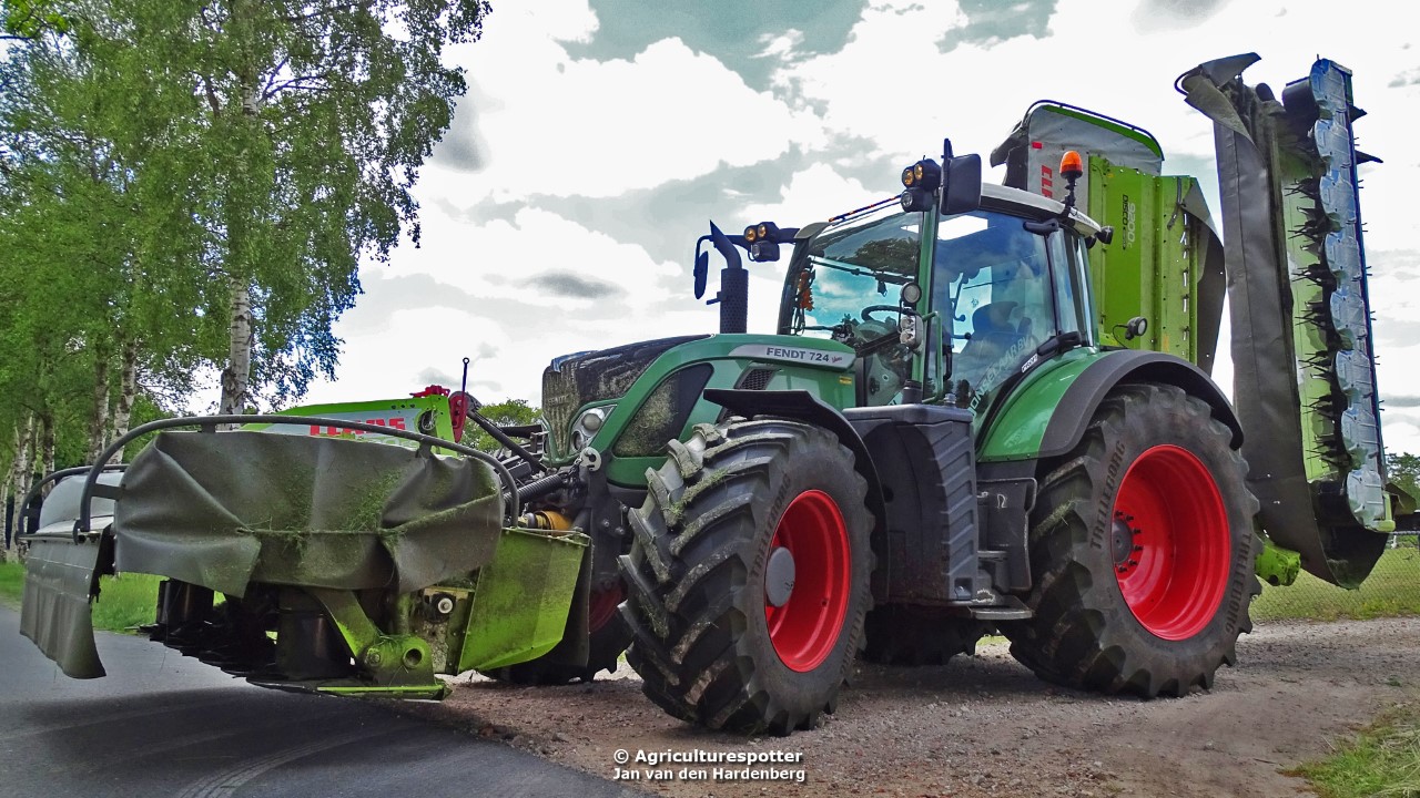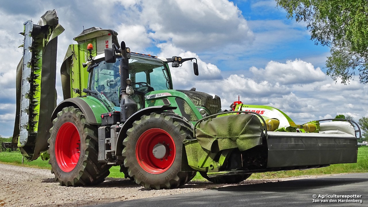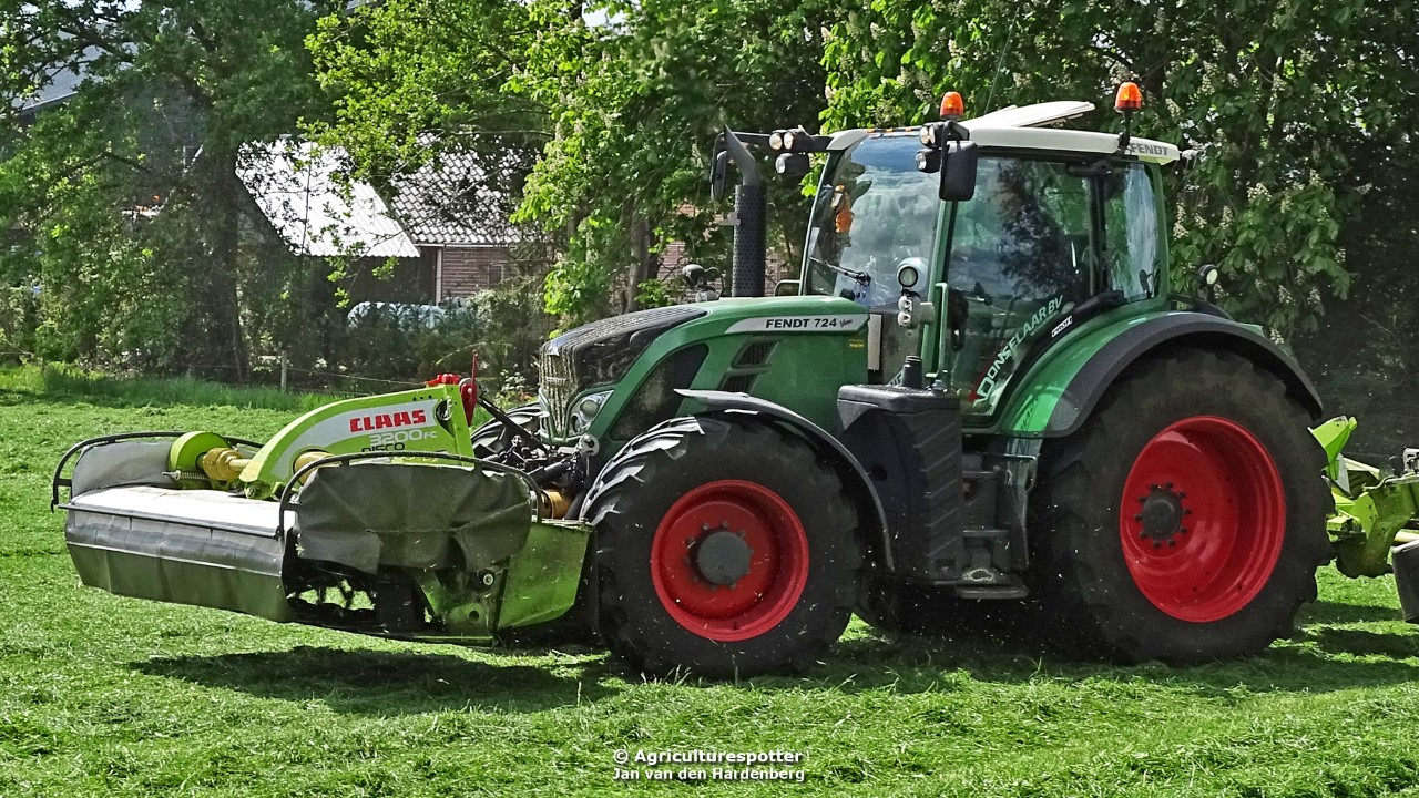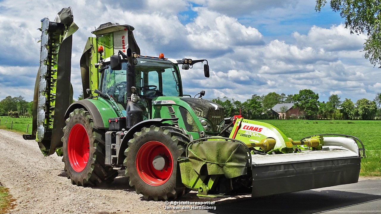 Gras maaien met een Fendt 724 Vario en Claas Disco-maaiers