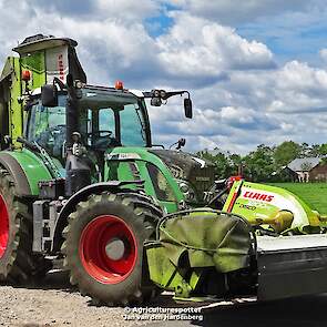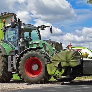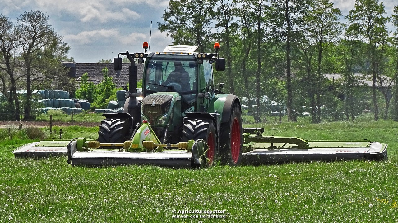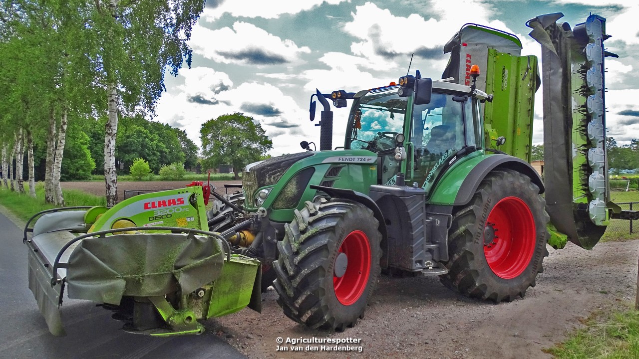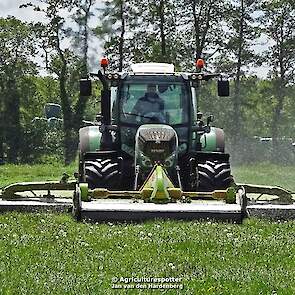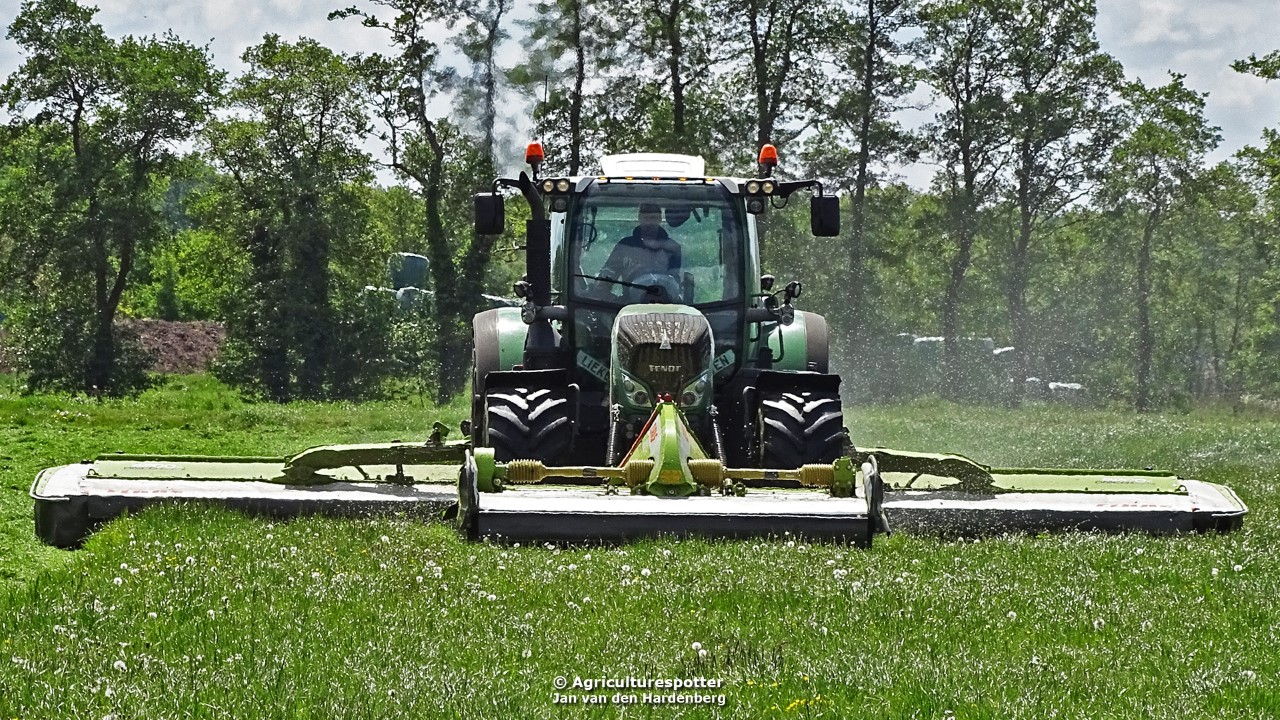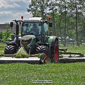 Gras maaien met een Fendt 724 Vario en Claas Disco-maaiers