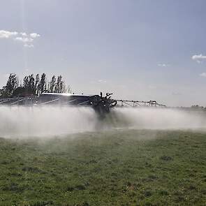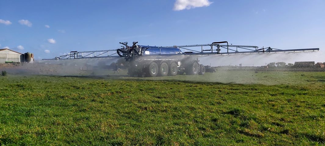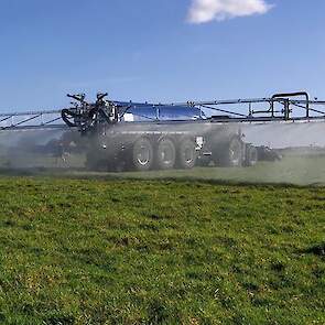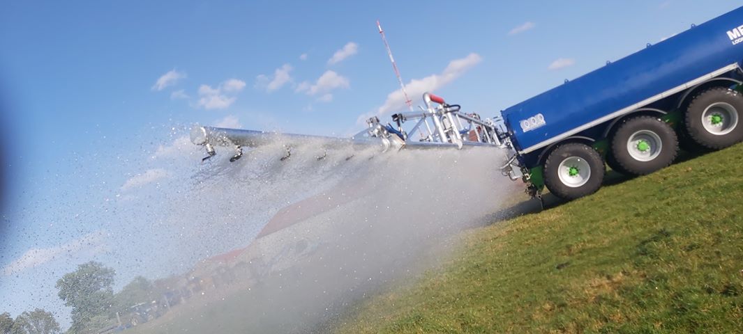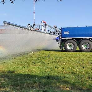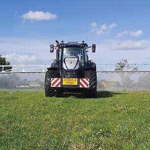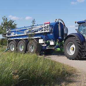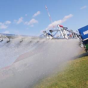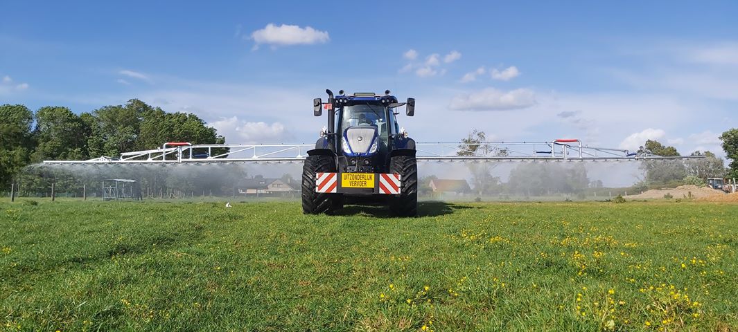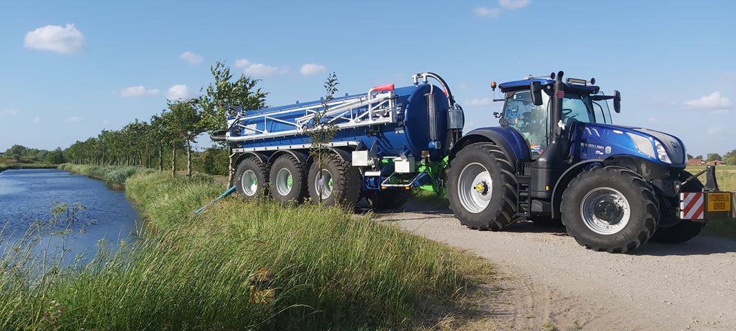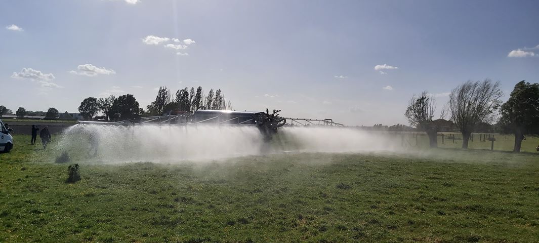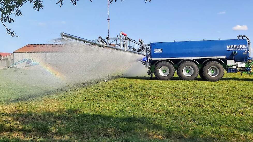 Loonwerken Mesure aan het testen met een BVC-tank met spuitboom om water te geven.