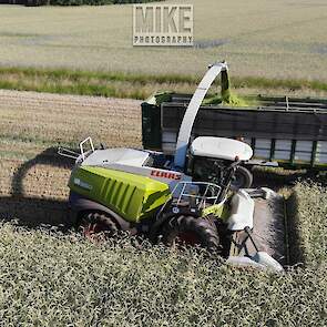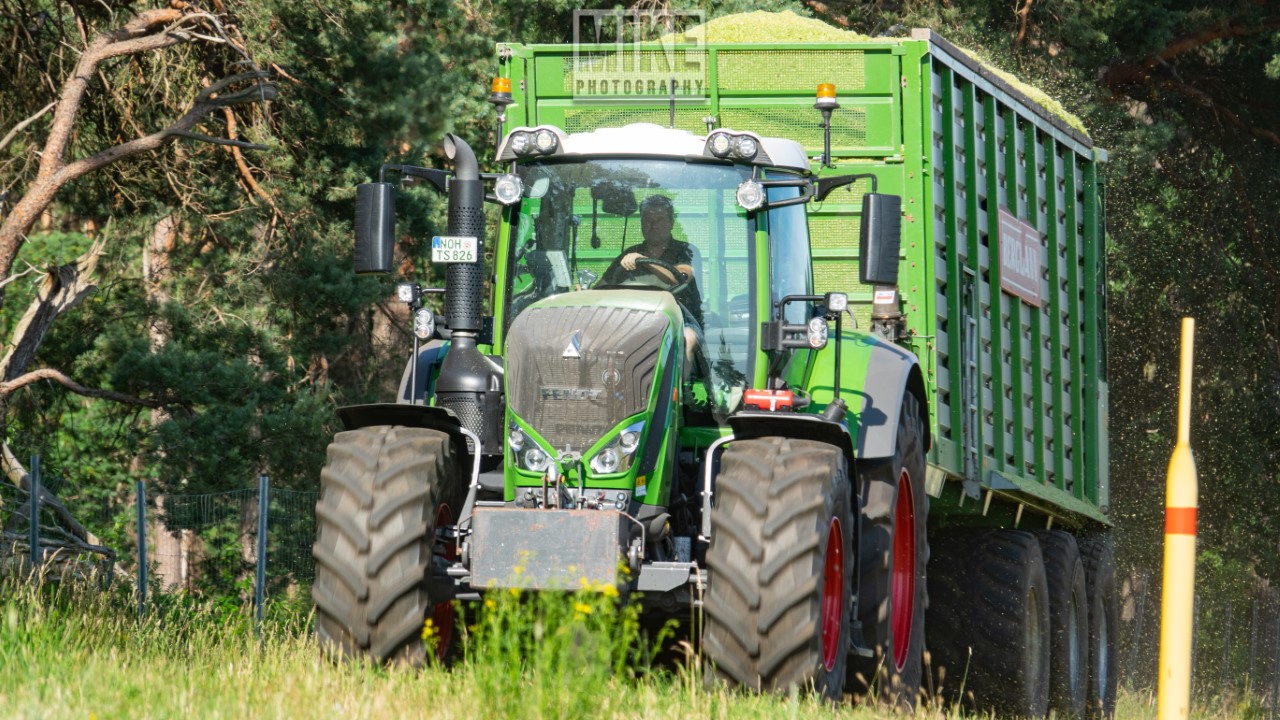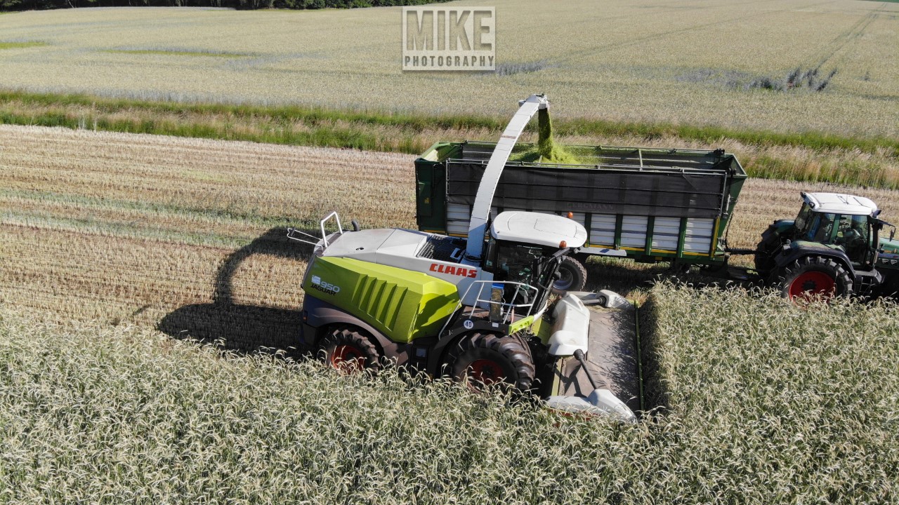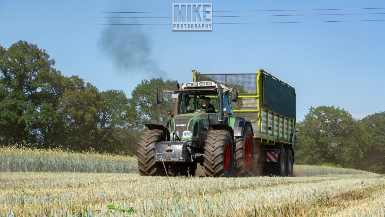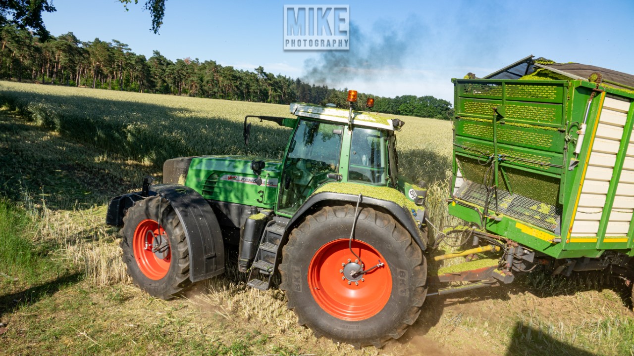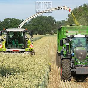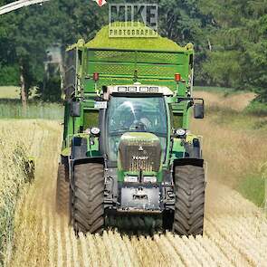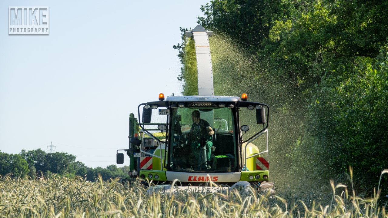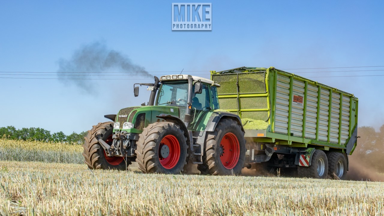 Lohnunternehmen Steenweg uit Bad Bentheim aan het hakselen. Dit gebeurde met een Claas Jaguar 950-hakselaar en vijf Fendt-tractoren.