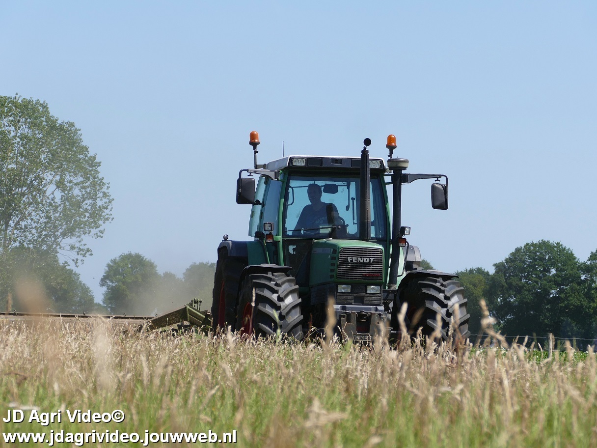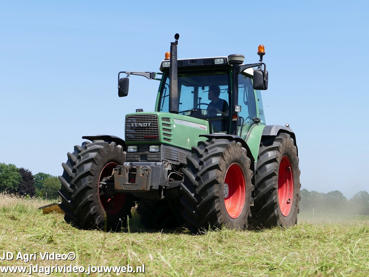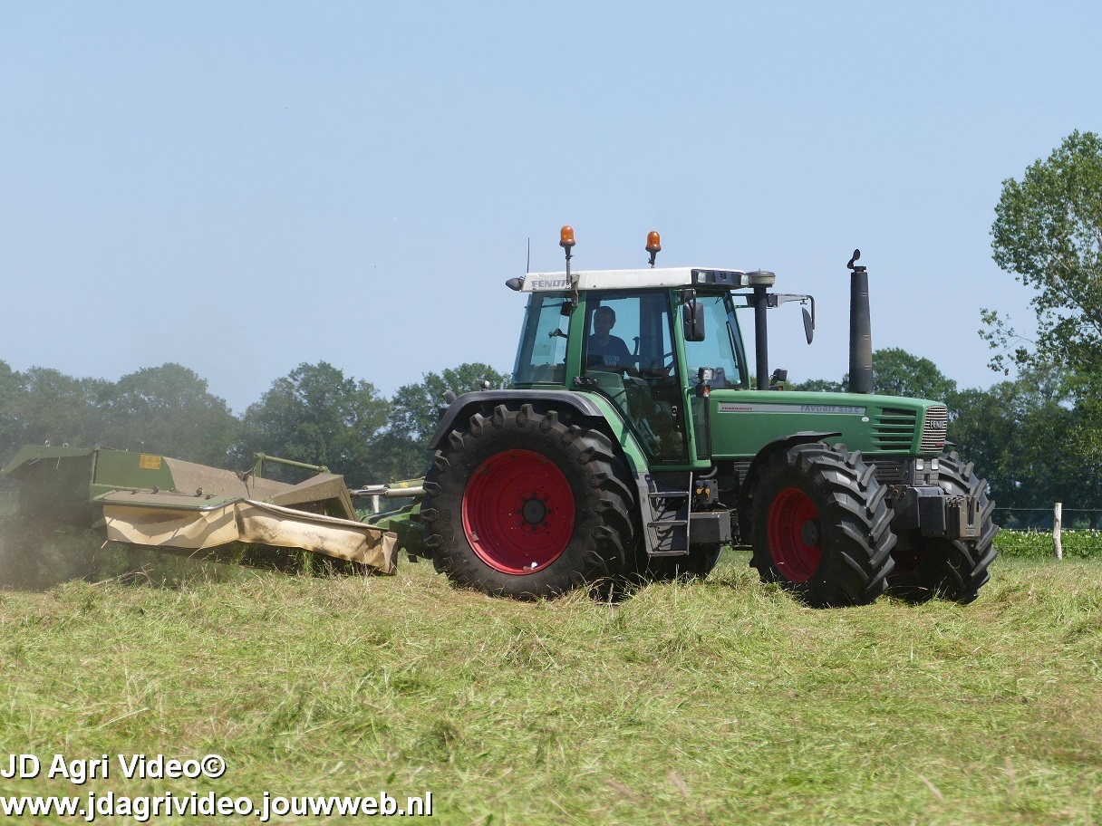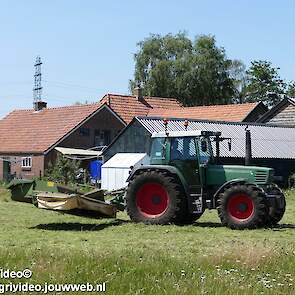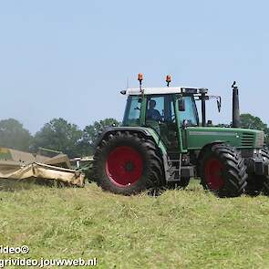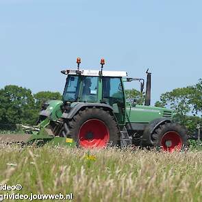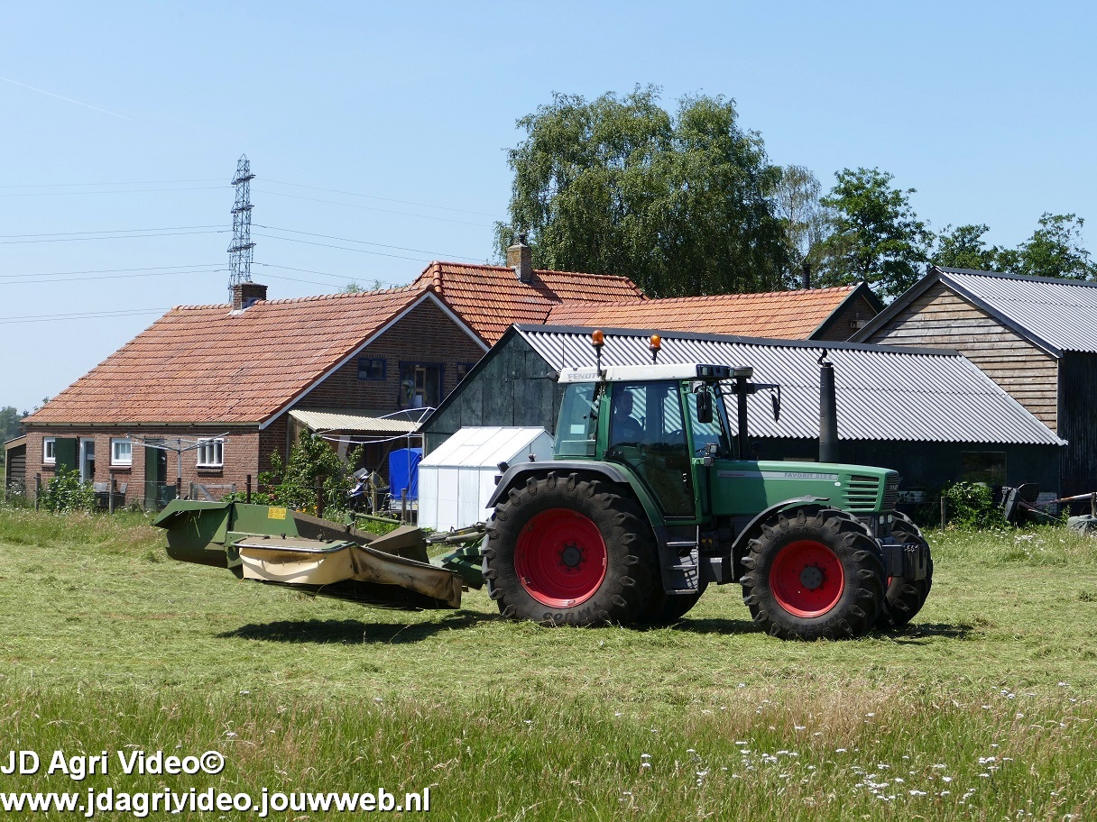 Loonbedrijf Molenaar (Molenaars loonbedrijf) uit Lunteren aan het gras maaien met een Fendt 512C Turboshift met Krone EasyCut-maaier.