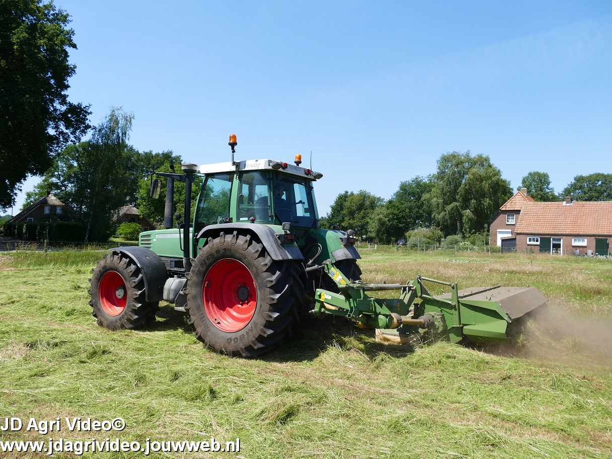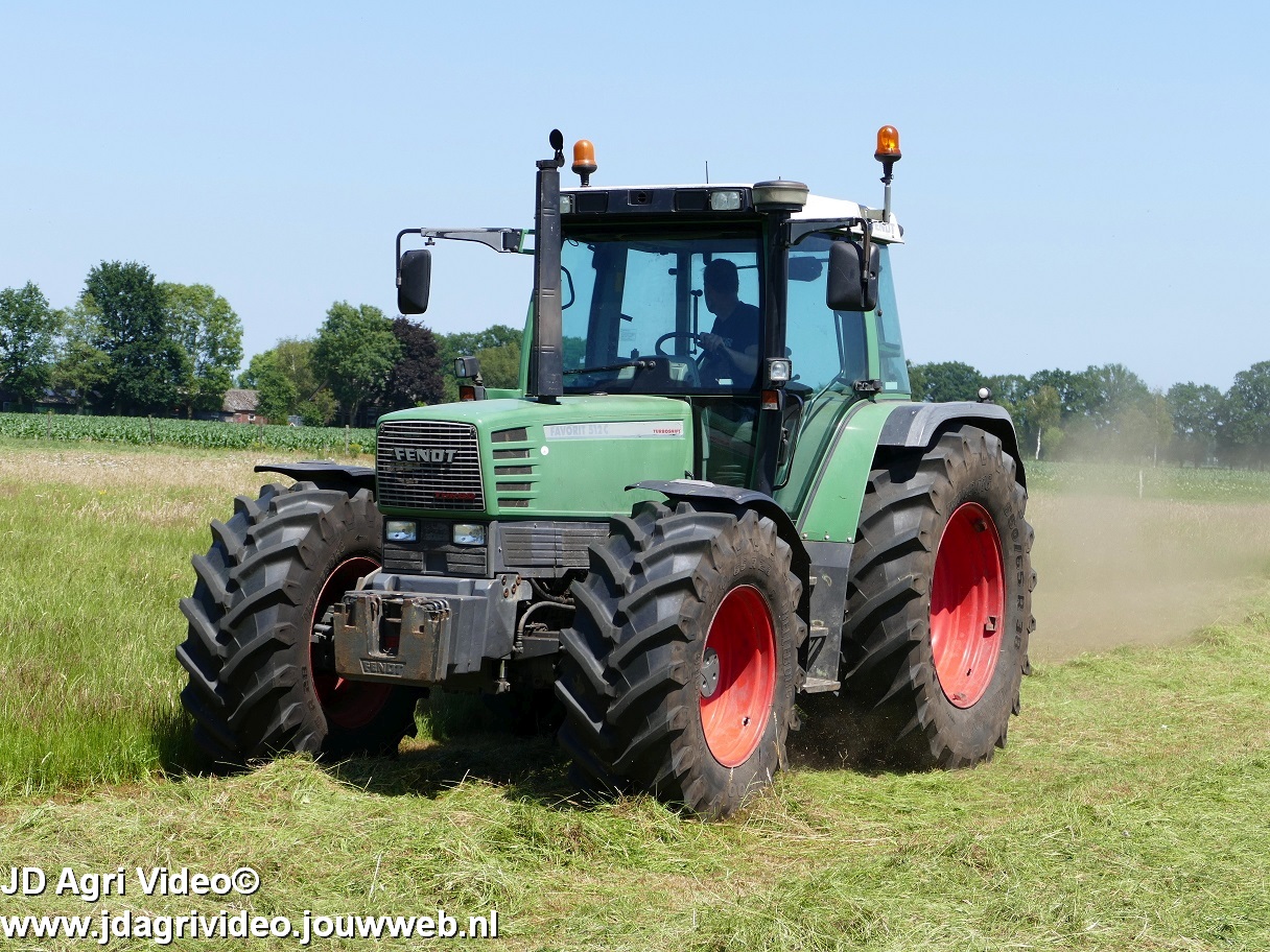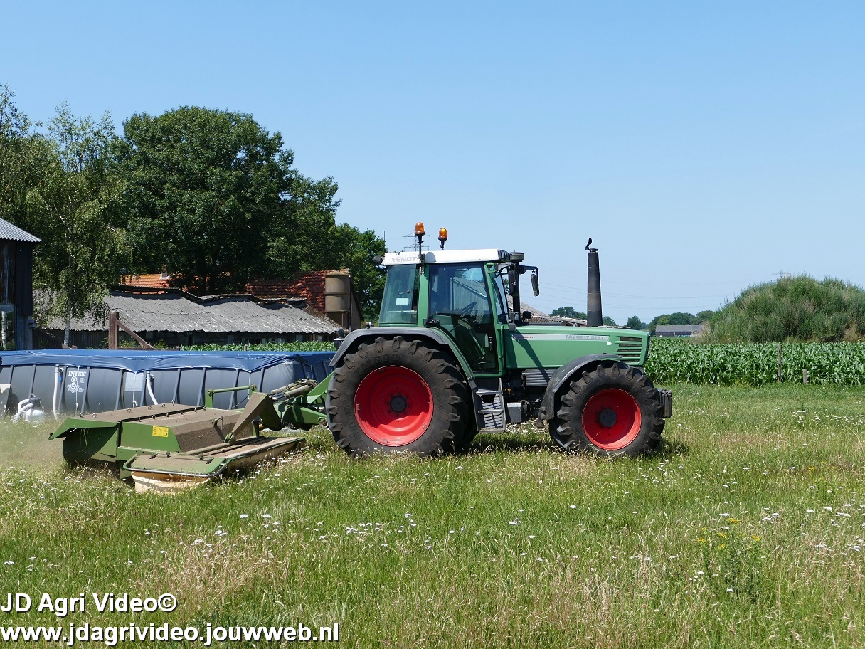Loonbedrijf Molenaar (Molenaars loonbedrijf) uit Lunteren aan het gras maaien met een Fendt 512C Turboshift met Krone EasyCut-maaier.