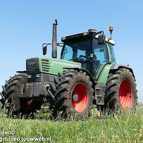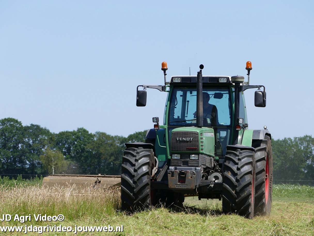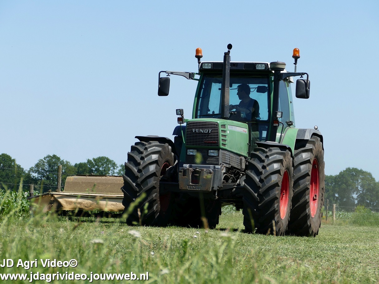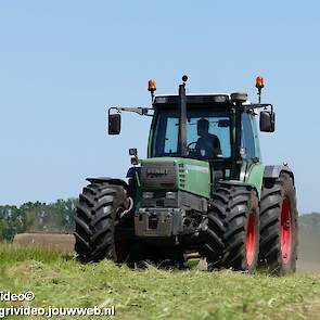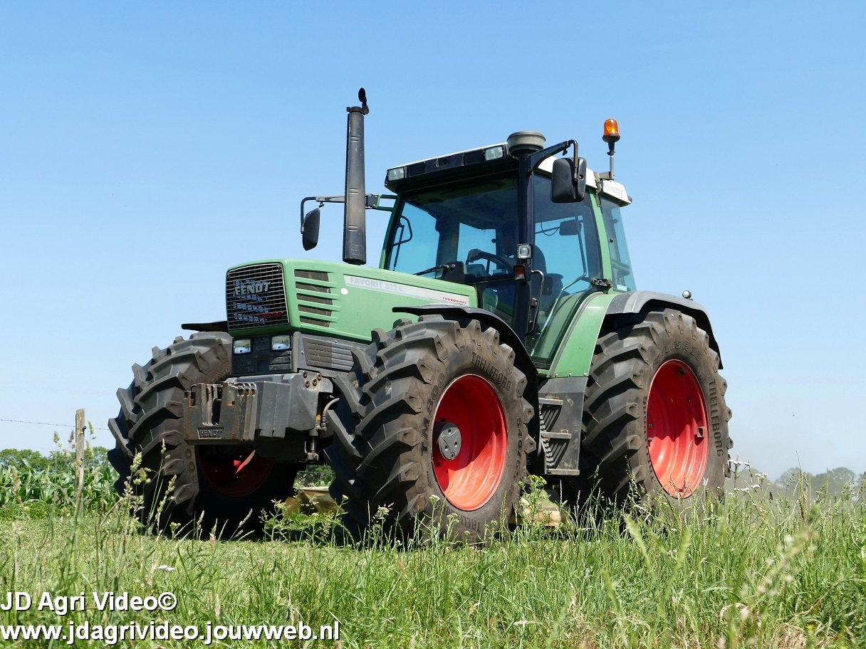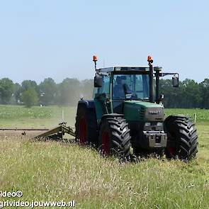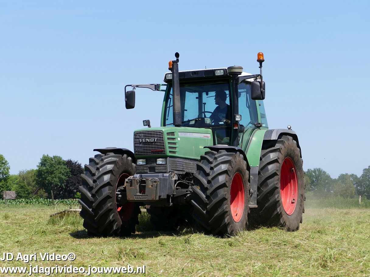 Loonbedrijf Molenaar (Molenaars loonbedrijf) uit Lunteren aan het gras maaien met een Fendt 512C Turboshift met Krone EasyCut-maaier.