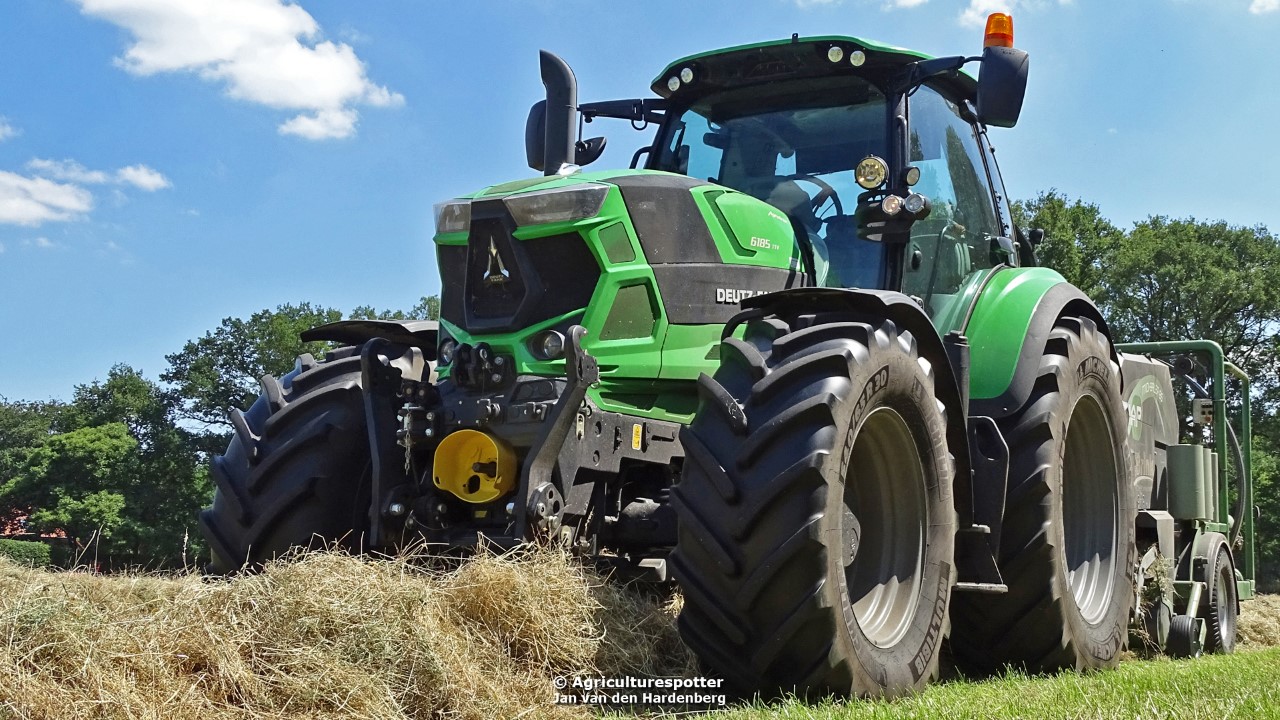 Hooibalen persen met een Deutz-Fahr Agrotron 6185