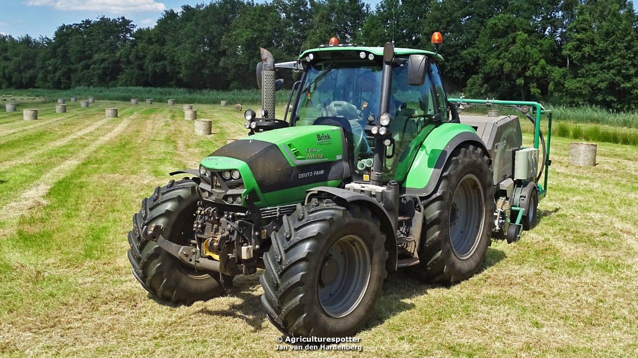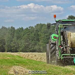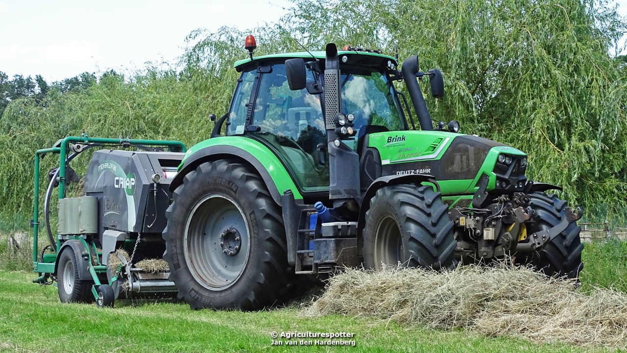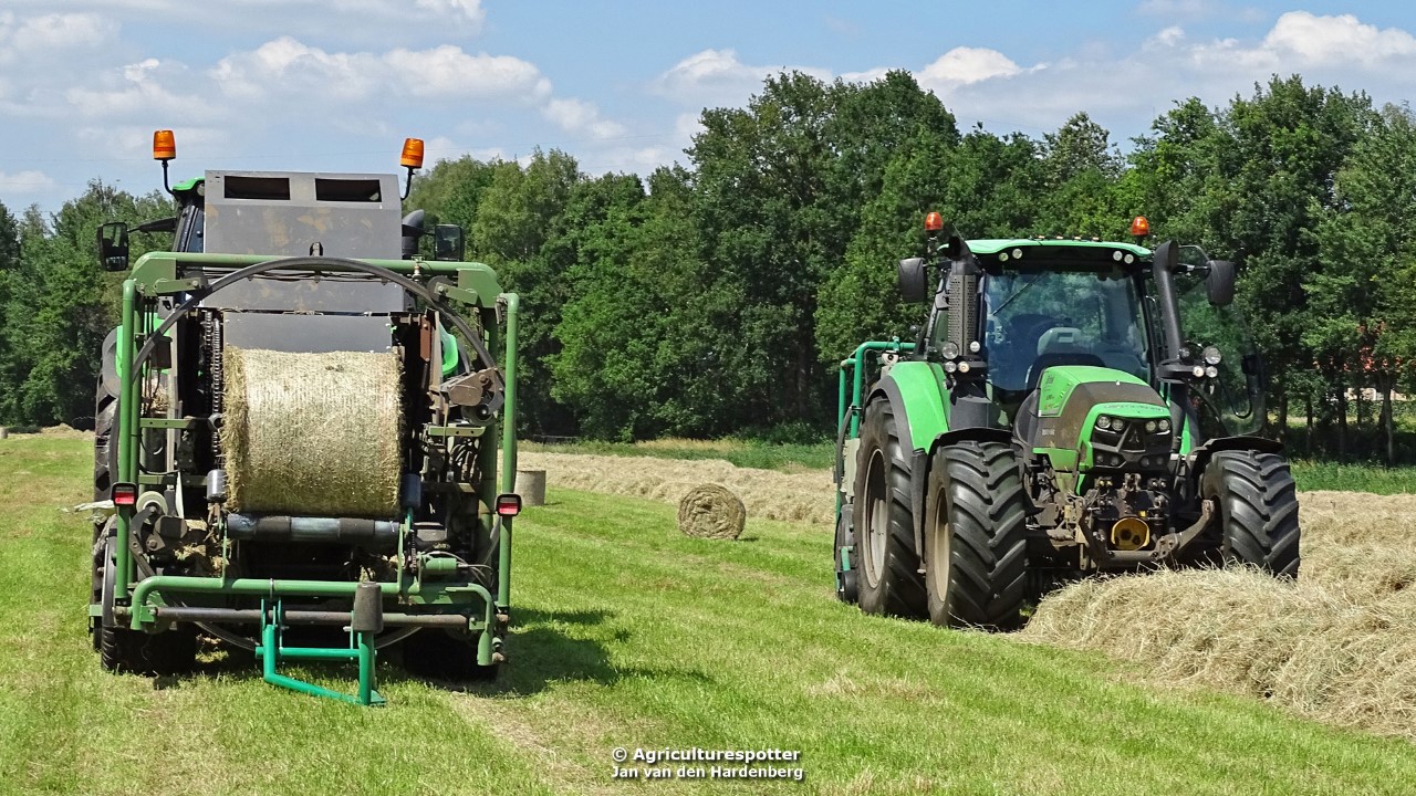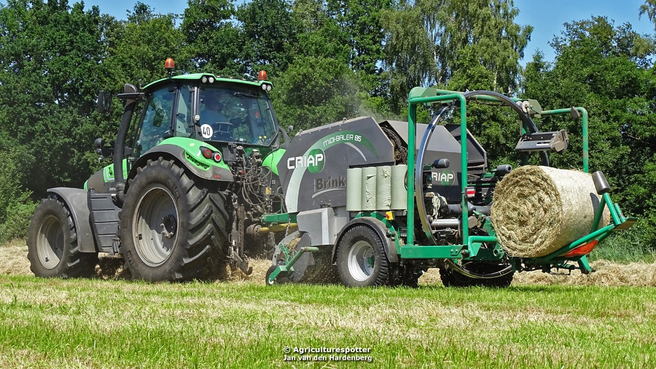 Loon- en verhuurbedrijf van den Brink aan het hooibalen persen met een Deutz-Fahr Agrotron 6185, een 6190 TTV en Criap Midi Baler 85.