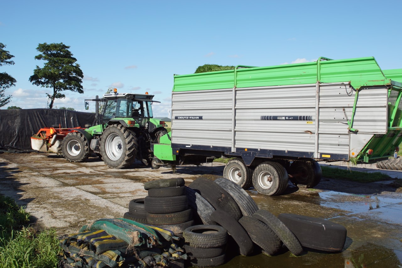 Vers gras halen voor de koeien met de Deutz Fahr K 6.47-opraapwagen en daarvoor de Deutz-Fahr Agrostar 6.08.