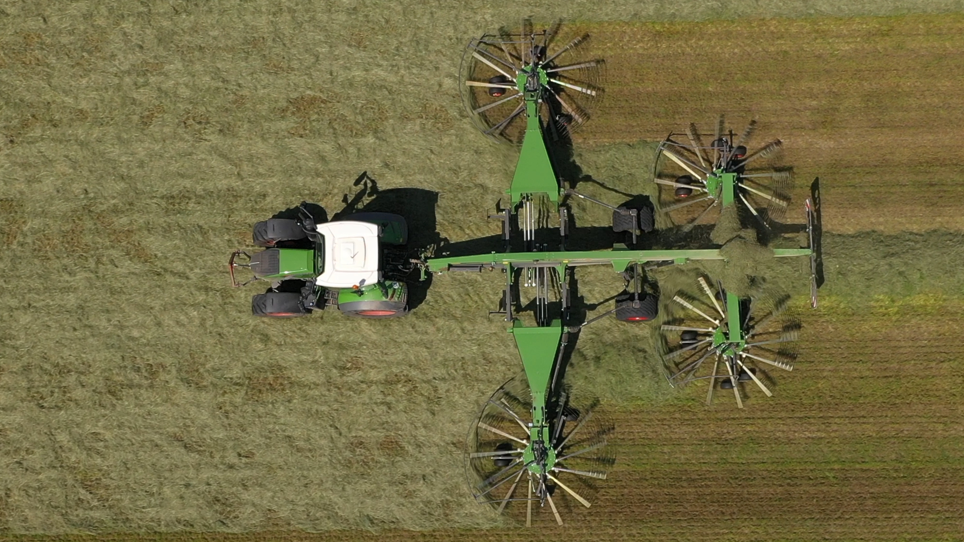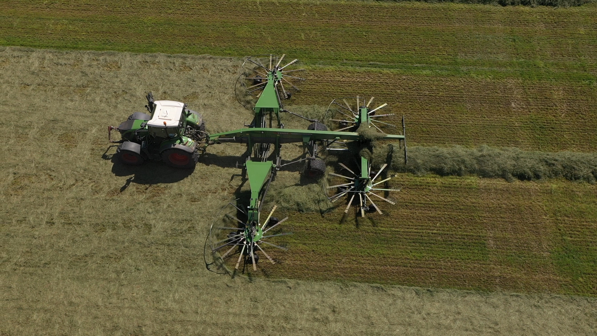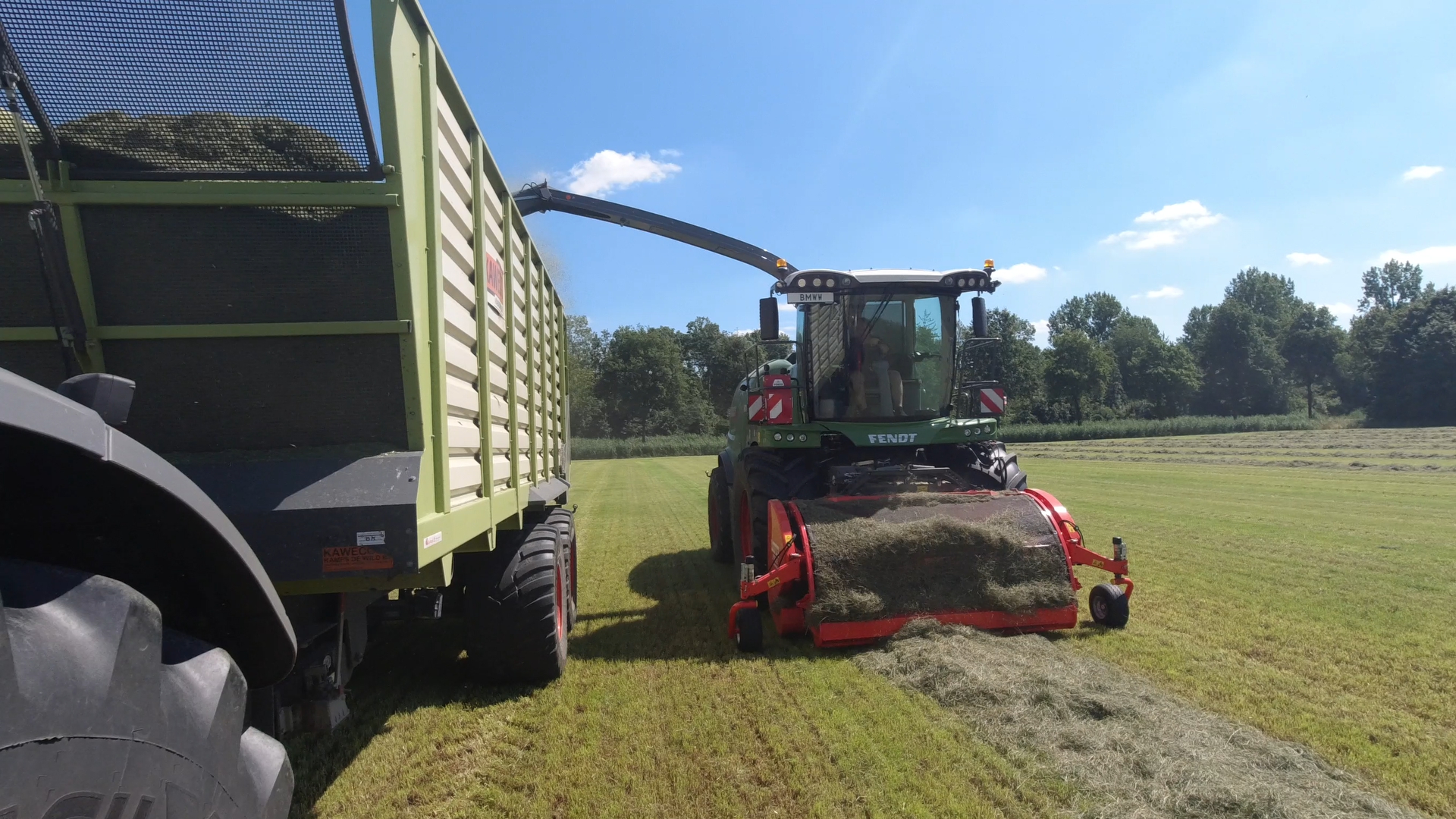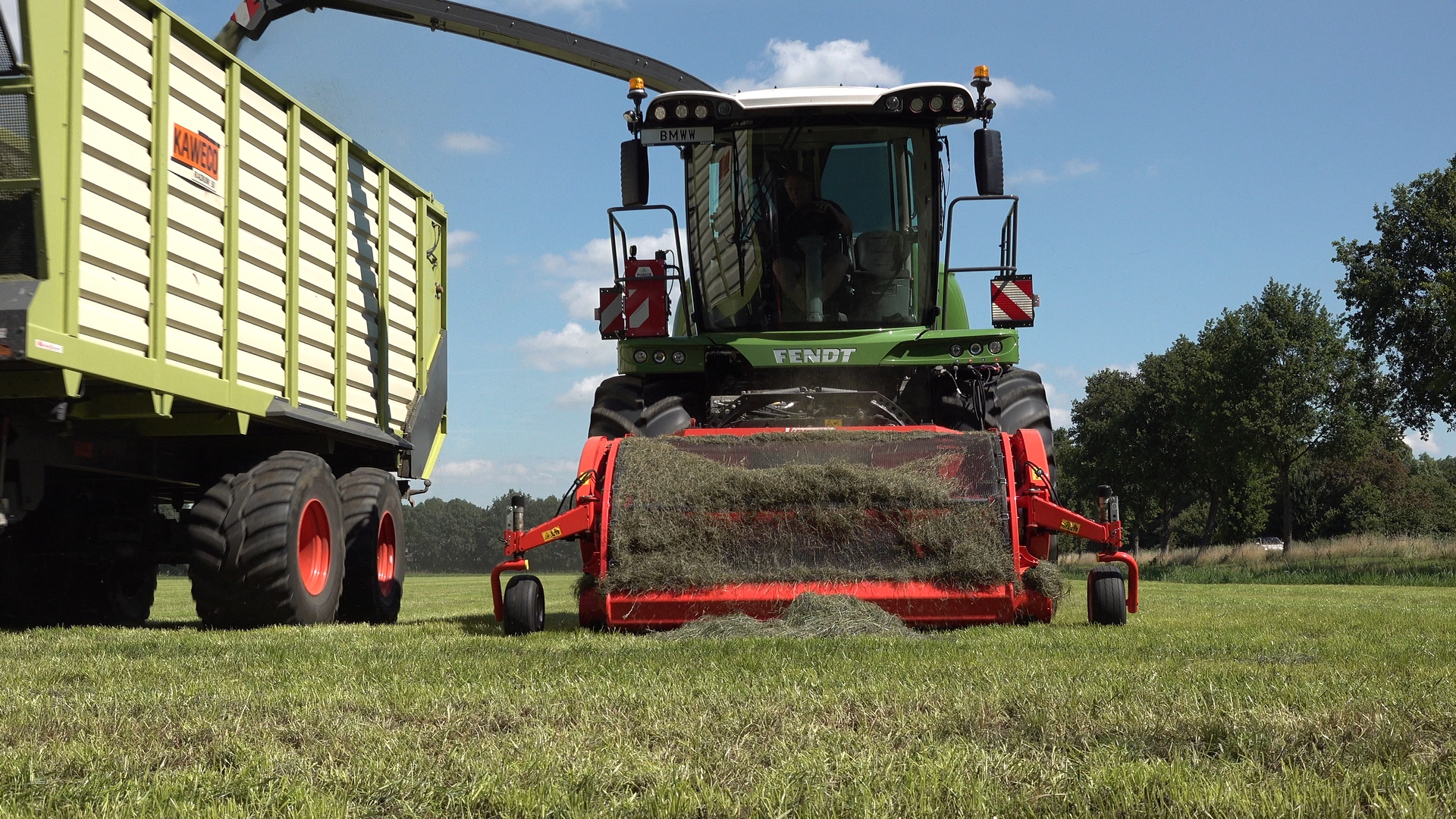 Bmww Agriservice met Fendt-hark, Fendt-trekkers en Fendt Katana 65 in het gras