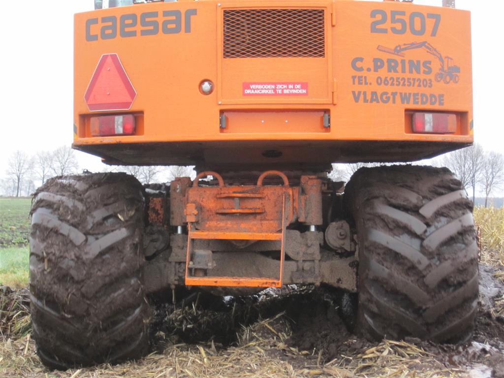 Om snel te kunnen werken zonder beschadiging aan de bodem, is gekozen voor een minimale bodemdruk en een maximaal rollend vermogen. De uiteindelijke keuze is gevallen op een combinatie van Trelleborg en Alliance. De gigantische bodemvrijheid van de Caesar maakt het mogelijk om dit formaat banden aan de standaard machine rechtstreeks te monteren. De combinatie van hydraulisch en mechanisch rijden zorgt daarbij voor een hoge rijsnelheid en trekkracht bij een minimaal brandstofverbruik.