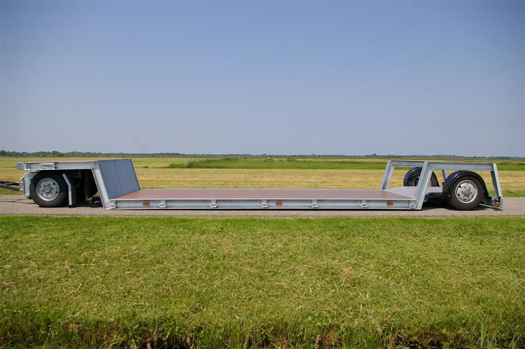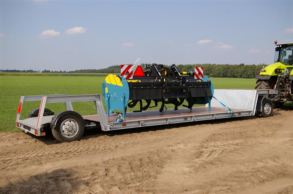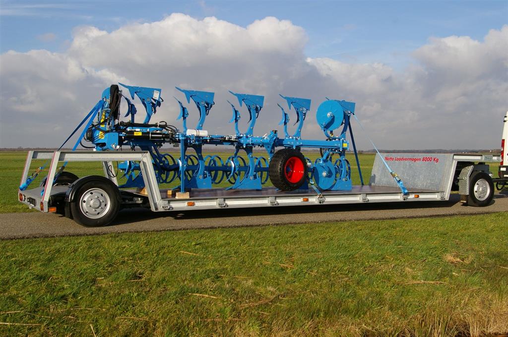 Deze werktuigdrager heeft een afmeting van 6,00x2,55 mtr. en een laadvloerhoogte van 53 cm. Tijdens het laden zakt de laadvloer naar 18 cm. Hierdoor kunnen werktuigen tot 6 mtr. In de lengte getransporteerd worden.Door deze lange laadvloer wordt de wielbasis van 8,60 groter dan toegestaan voor ongestuurde achterassen. Daarom is de achteras op een draaikrans gemonteerd. Deze draaikrans wordt gedwongen gestuurd via hoekversterker op de vooras.Zo ontstaat bij een stuuruitslag van 45° op de vooras een stuuruitslag van 15° op de achteras.En bij een stuuruitslag van 90° op de vooras loopt de achteras terug naar rechtuit stand . Zo blijft de werktuigdrager ook stabiel als de vooras haaks onder de zwanenhals staat.