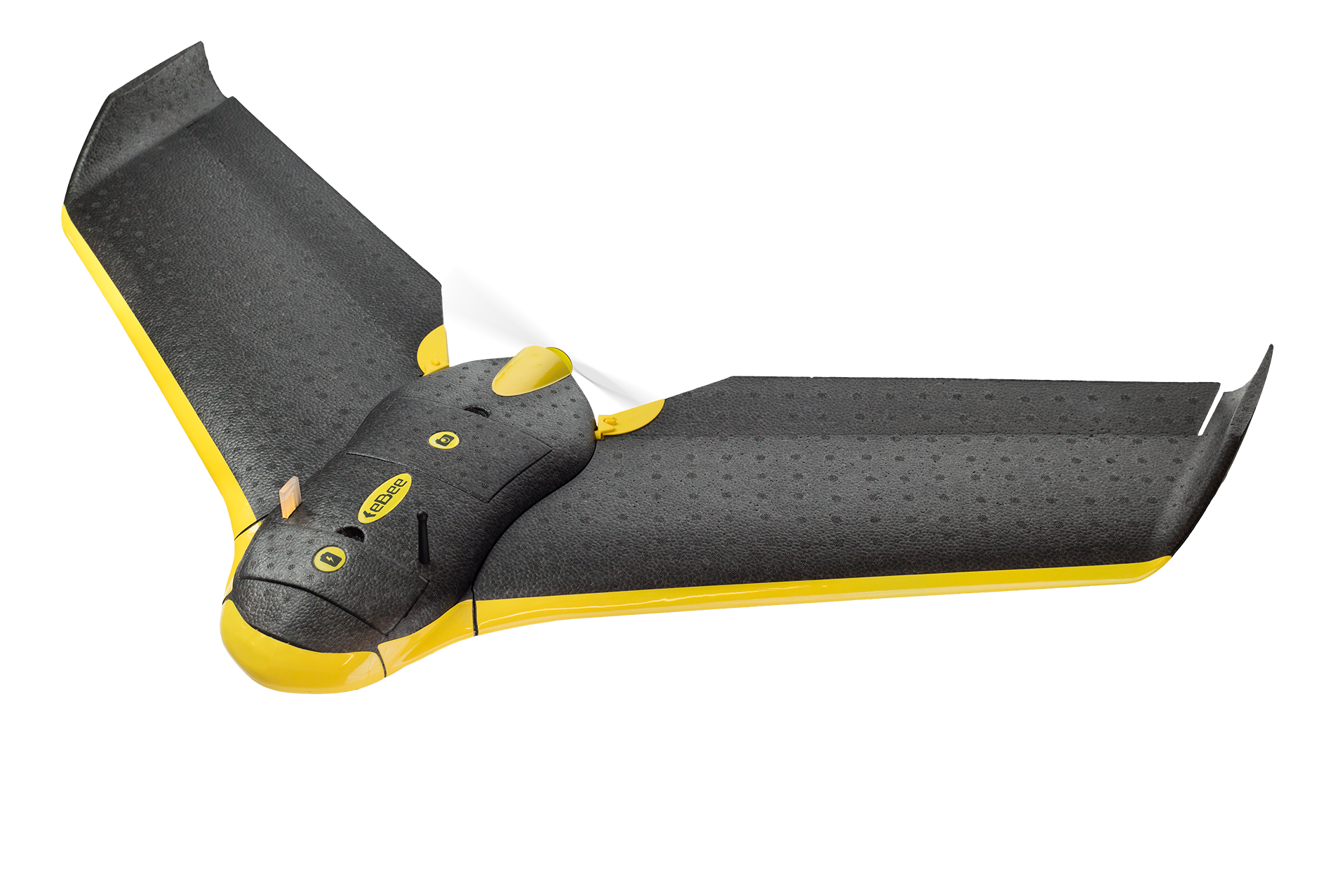 De eBee is een drone van het merk senseFly en is ontworpen voor professionele toepassingen. De eBee is inmiddels zon 2 jaar op de markt en sinds deze zomer is er ook een speciale uitvoering voor de landbouw, genaamd eBee Ag. eBee wordt in de Benelux door Geometius vertegenwoordigd en de eBee Ag vanzelfsprekend door Agrometius. De eBee is een automatische drone. Men hoeft alleen maar het gebied en de gewenste resolutie te selecteren in de eMotion software. Vervolgens berekend het systeem zelf de vlieghoogte en het te vliegen traject. Enkel nog even de gewenste landingsplaats aangeven en de drone is klaar om vanuit de hand te worden gelanceerd.