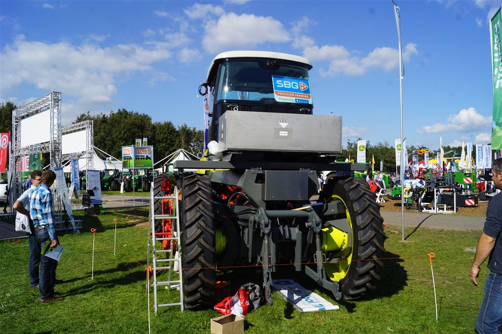 Dankzij de gps besturing rijdt de tractor altijd over dezelfde sporen. Zo blijft de rest van het land in de goede conditie voor optimale plantengroei. De MultiToolTrac staat tijdens de Bio-beurs op het Energieplein.